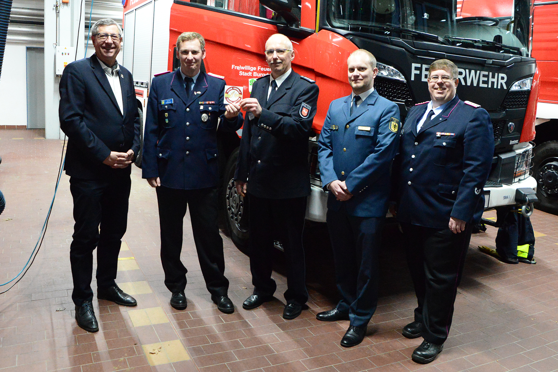 Unterstützt wird diese Aktion durch die Polizei Burgdorf sowie auch vom Bürgermeister, Armin Pollehn, der es sich nicht hat nehmen lassen, den Einsatzleitwagen der Stadtfeuerwehr Burgdorf als 1. Fahrzeug mit einem Aufkleber zu versehen. "Wir stehen hinter unseren ehrenamtlichen Kräften und wollen selbstverständlich, dass diese jederzeit unversehrt von den Einsätzen zurückkehren", so die Worte des Bürgermeisters.