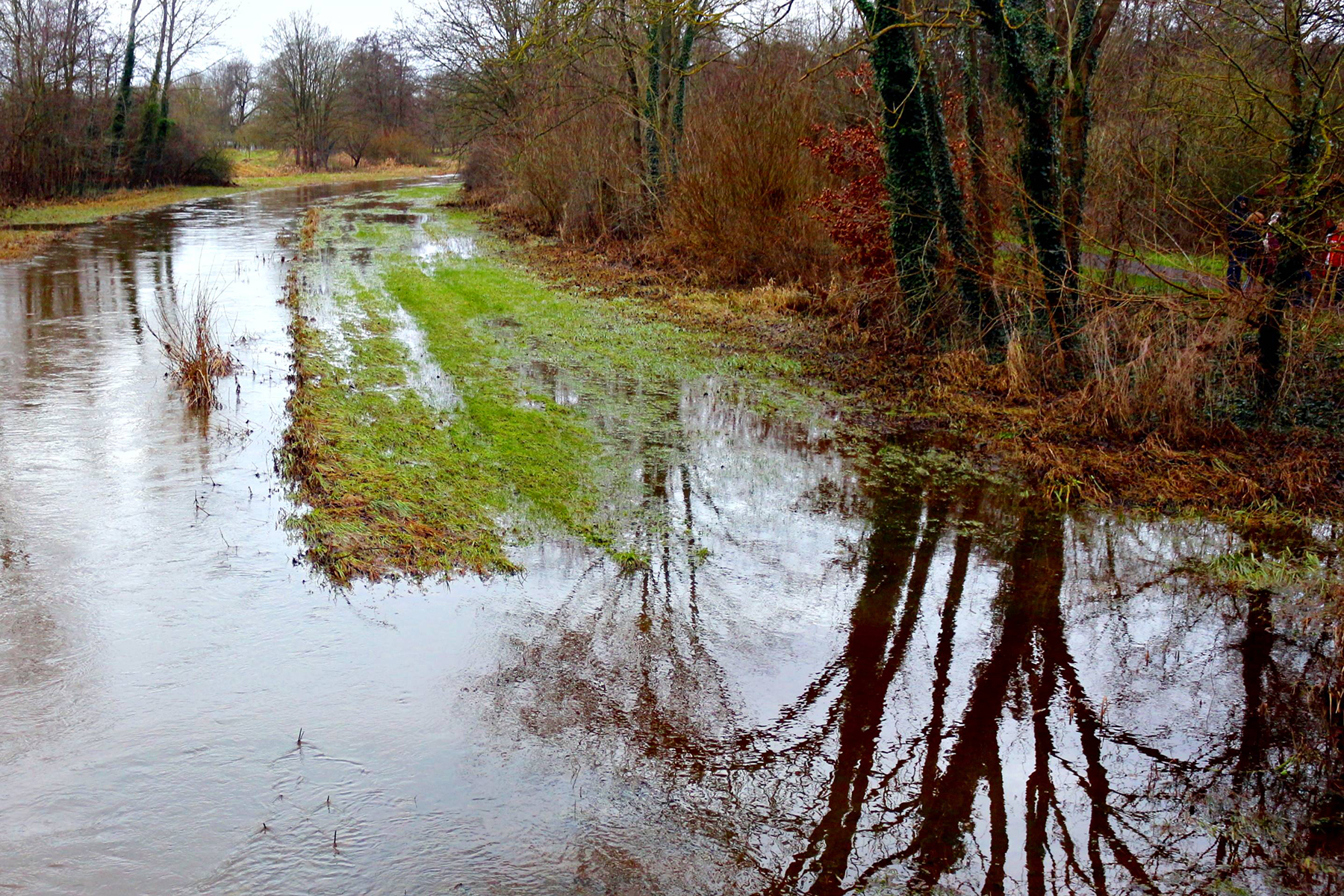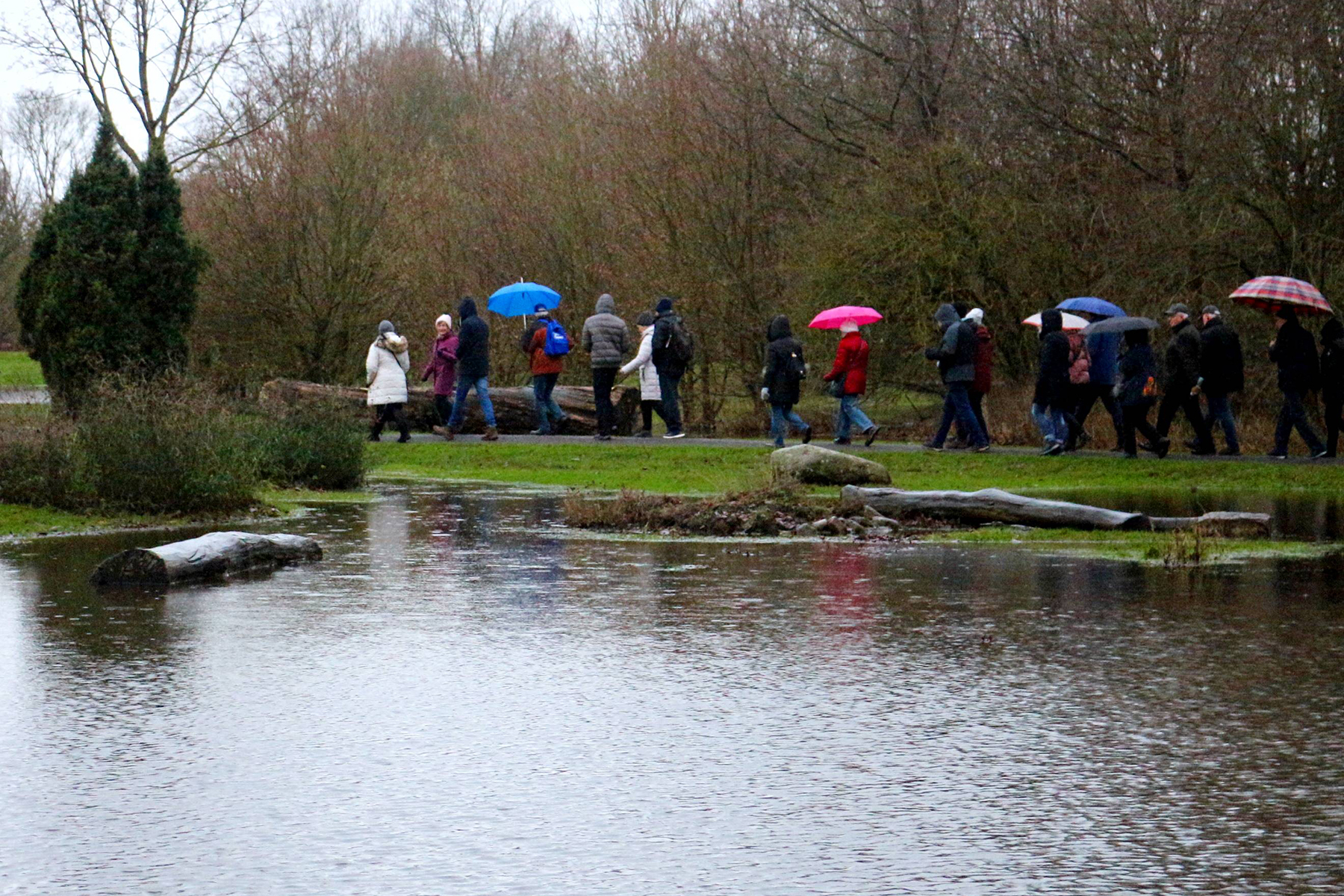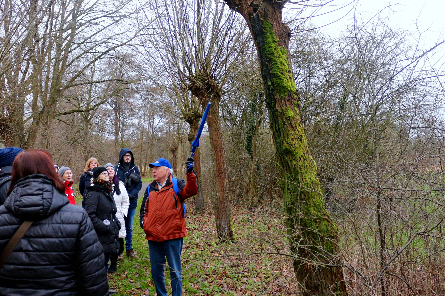 Bei windig-nieseligem Wetter führte der Weg der Gruppe in den Stadtpark, der an einigen Stellen Not hatte, die Wassermengen der vergangenen Tage aufzunehmen. Auf der Strecke zu dem Baum, wo das Nest lokalisiert worden war, aus dem heraus die Hornissen die Sportler attackiert hatten, erfuhren die Neujahrsspaziergänger, dass Hornissenstiche beinahe ausschließlich bei unvorsichtiger Annäherung an das Nest auftreten. Bei der Laufveranstaltung hatten wohl die nahen starken Bodenerschütterungen zu dem Angriff der Fluginsekten geführt und Personen mit längeren Haaren besonders getroffen. Ganz im Gegensatz zu Wespen, die Menschen oft gezielt anfliegen und unprovoziert stechen.