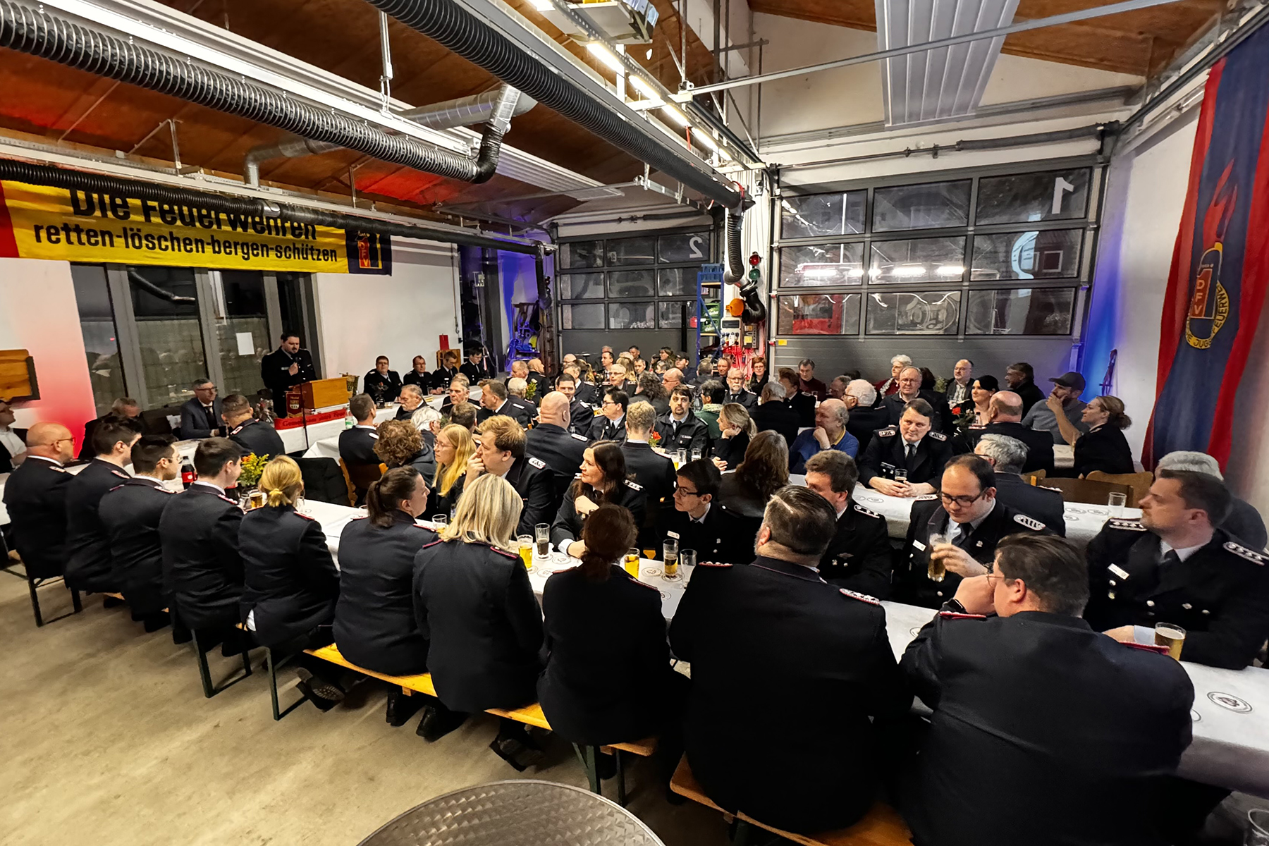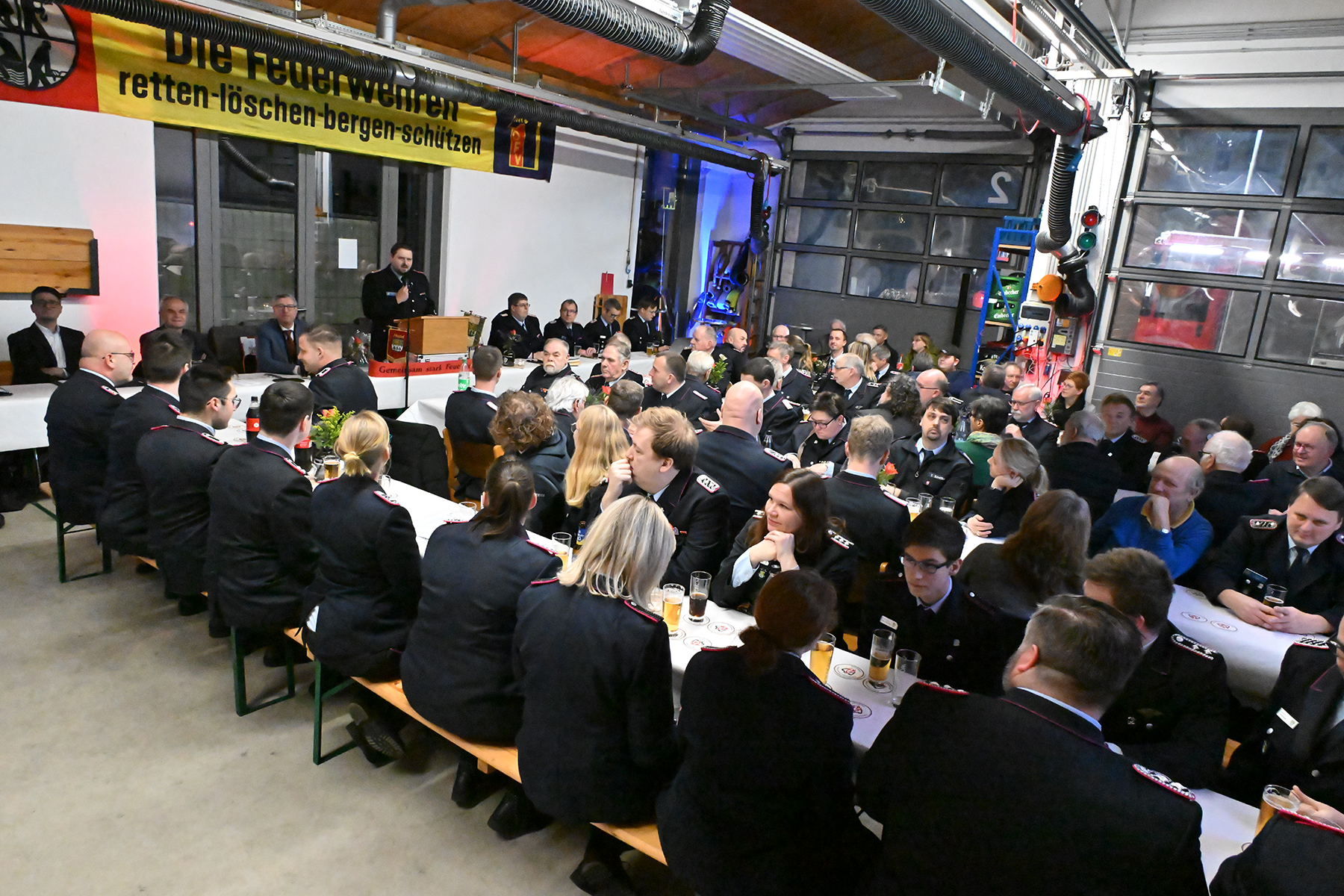 Rund 100 Gäste konnten Reinhard Nicks und sein Stellvertreter Marc-Robert Krey in der Fahrzeughalle der Ortsfeuerwehr an der Dorfstraße begrüßen. Darunter Burgdorfs Bürgermeister Armin Pollehn, den Ersten Stadtrat Michael Kugel, den Ordnungsamtsleiter Christian Enderle, die Feuerwehrausschuss-Vorsitzende Beate Neitzel, die Ortsvorsteher aus Heeßel und Beinhorn, Heiko Reißer und Klaus Köneke, den Stadtbrandmeister Dennis-Frederik Heuer, den Brandschutzabschnittsleiter Tobias Jacob, die Ehrenortsbrandmeister Karsten Lübbe und Friedrich Plass, Ehrenstadtbrandmeister Alfred Brönnemann sowie die Ortsbrandmeister und die Stellvertreter aus Burgdorf, Dachtmissen, Otze, Ramlingen-Ehlershausen, Schillerslage und Weferlingsen. Zudem waren Pastorin Friederike Grote sowie eine Abordnung der befreundeten Feuerwehr aus Colbitz gekommen, zu der eine mehr als 30 Jahre währende kameradschaftliche Verbundenheit besteht. Für die Versorgung mit Getränken sorgten Mitglieder der Ortswehr Hülptingsen und für das Essen war die Besatzung des Küchenwagens der Feuerwehrbereitschaft, die von Heeßeler Einsatzkräften besetzt wird, verantwortlich.