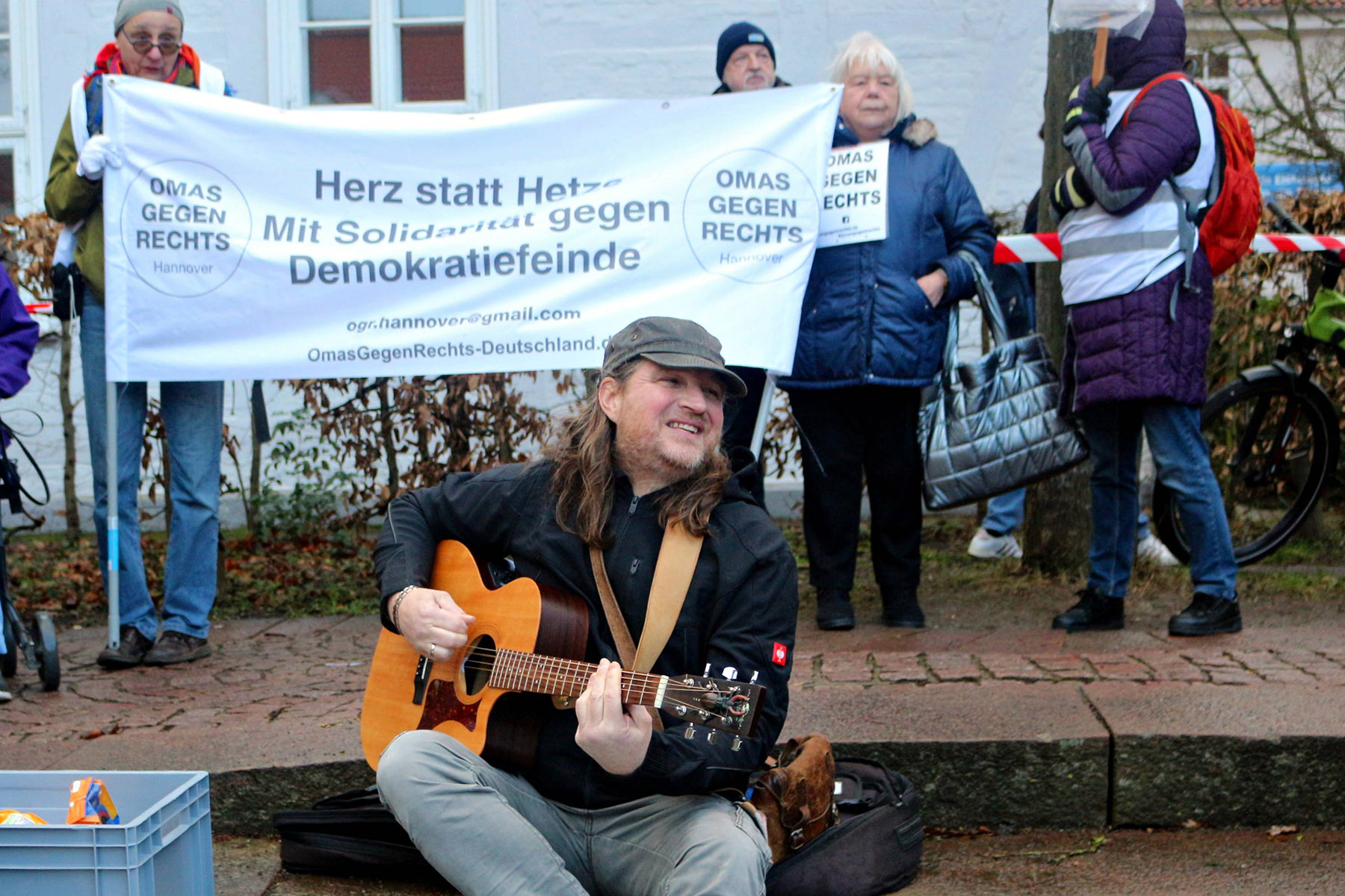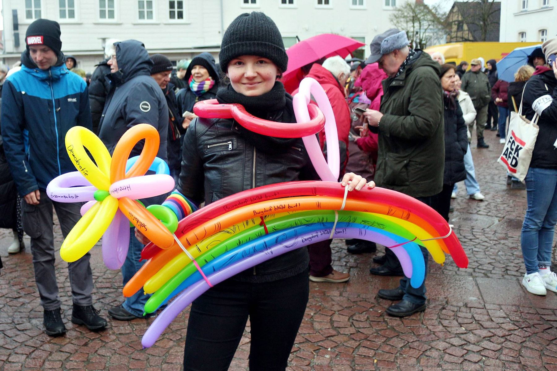 "Die Demokratie muss zu jeder Zeit und bei jedem Wetter verteidigt werden", sagte ein 91-jähriger Burgdorfer bei seiner allerersten Demonstrationsteilnahme und spannte einen kunterbunten Schirm auf.