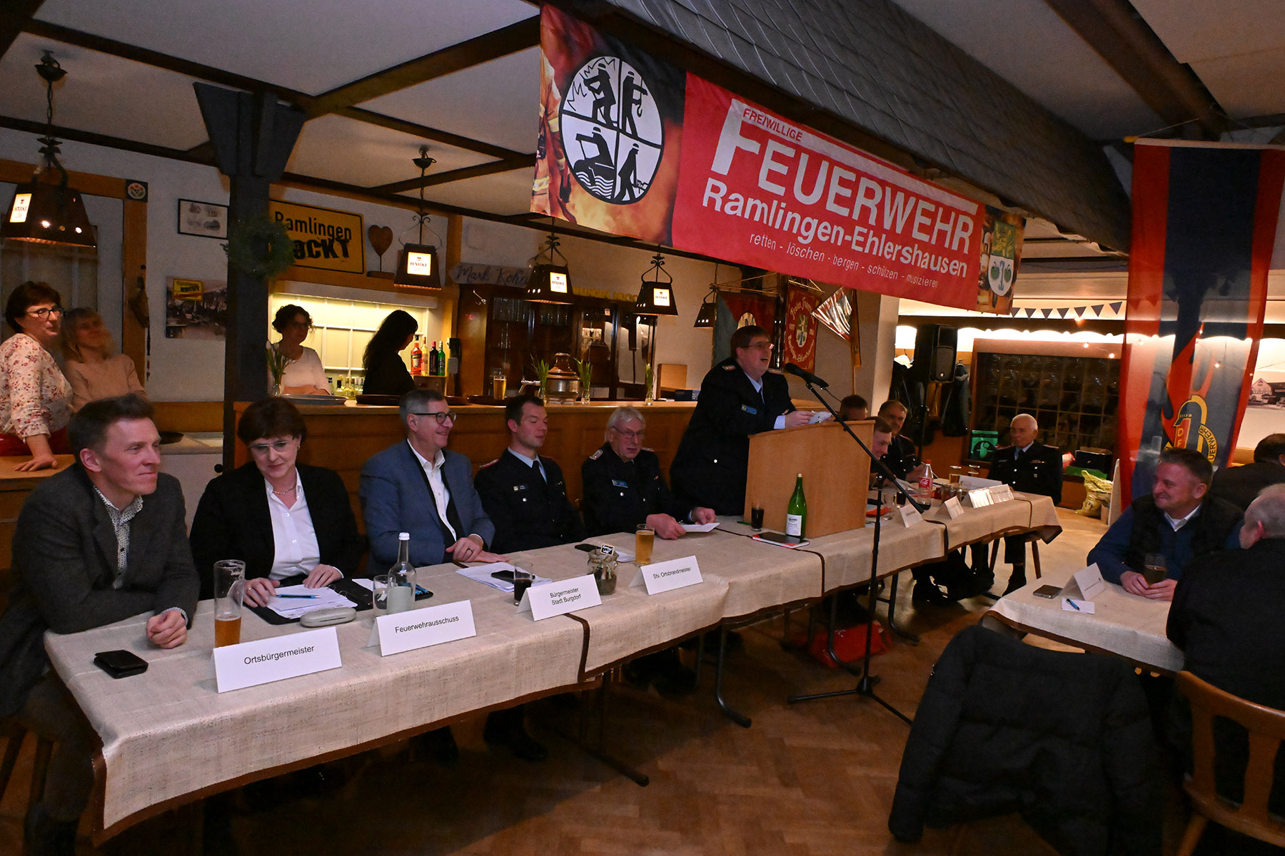 Seinen Dank für die geleistete Arbeit und den Einsatz sprachen Burgdorfs Bürgermeister Armin Pollehn wie auch Ortsbürgermeister Wolfram Nolte aus. Pollehn wies in seinen Grußworten auch darauf hin, dass fast 300.000 Euro in Unterhaltungsmaßnahmen der Feuerwehrhäuser geflossen sein. Von den 177 durchgeführten Maßnahmen sein 13 im Feuerwehrhaus in Ramlingen und 15 in Ehlershausen erfolgt. Die Arbeit in der Jugendfeuerwehr und Kinderfeuerwehr hob er als "harmonisch und vorbildlich" hervor und auch der Feuerwehrmusikzug der Ortsfeuerwehr sei eine Besonderheit. Er dankte den Einsatzkräften auch für ihre Unterstützung beim Hochwasser in Lehrte, wodurch sie auch verhindert haben, dass das Wasser der Aue in Burgdorf nicht zu Problemen in Burgdorf geführt hat.