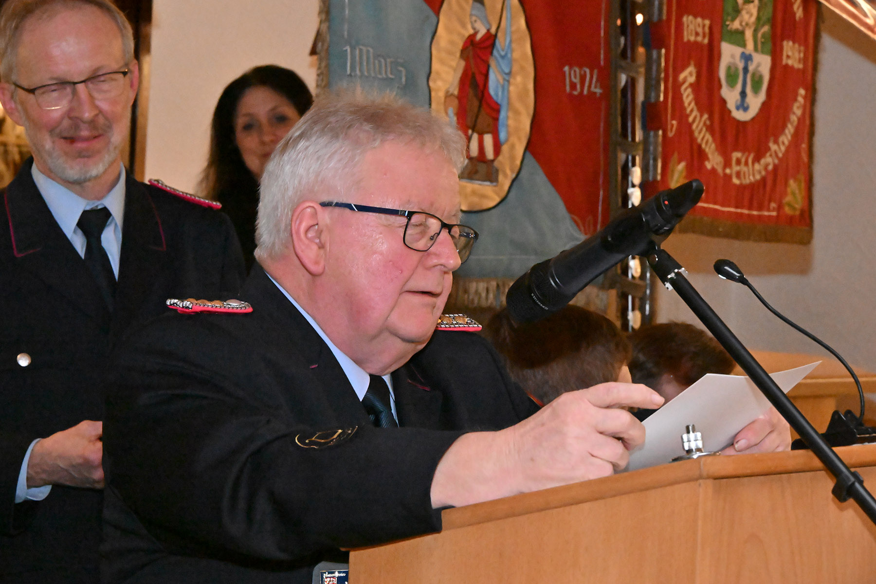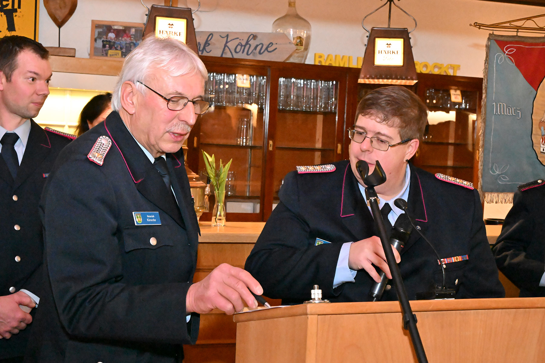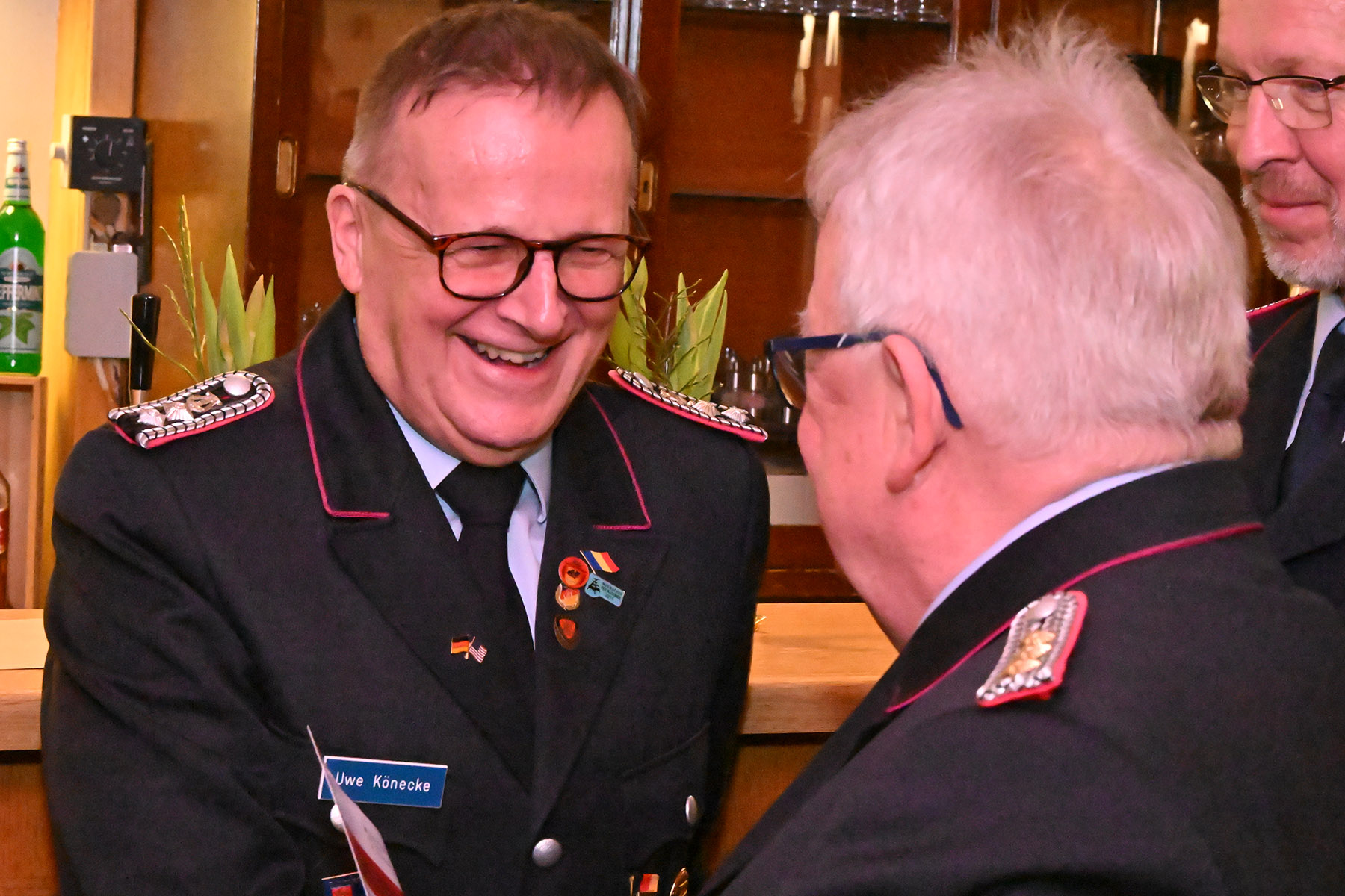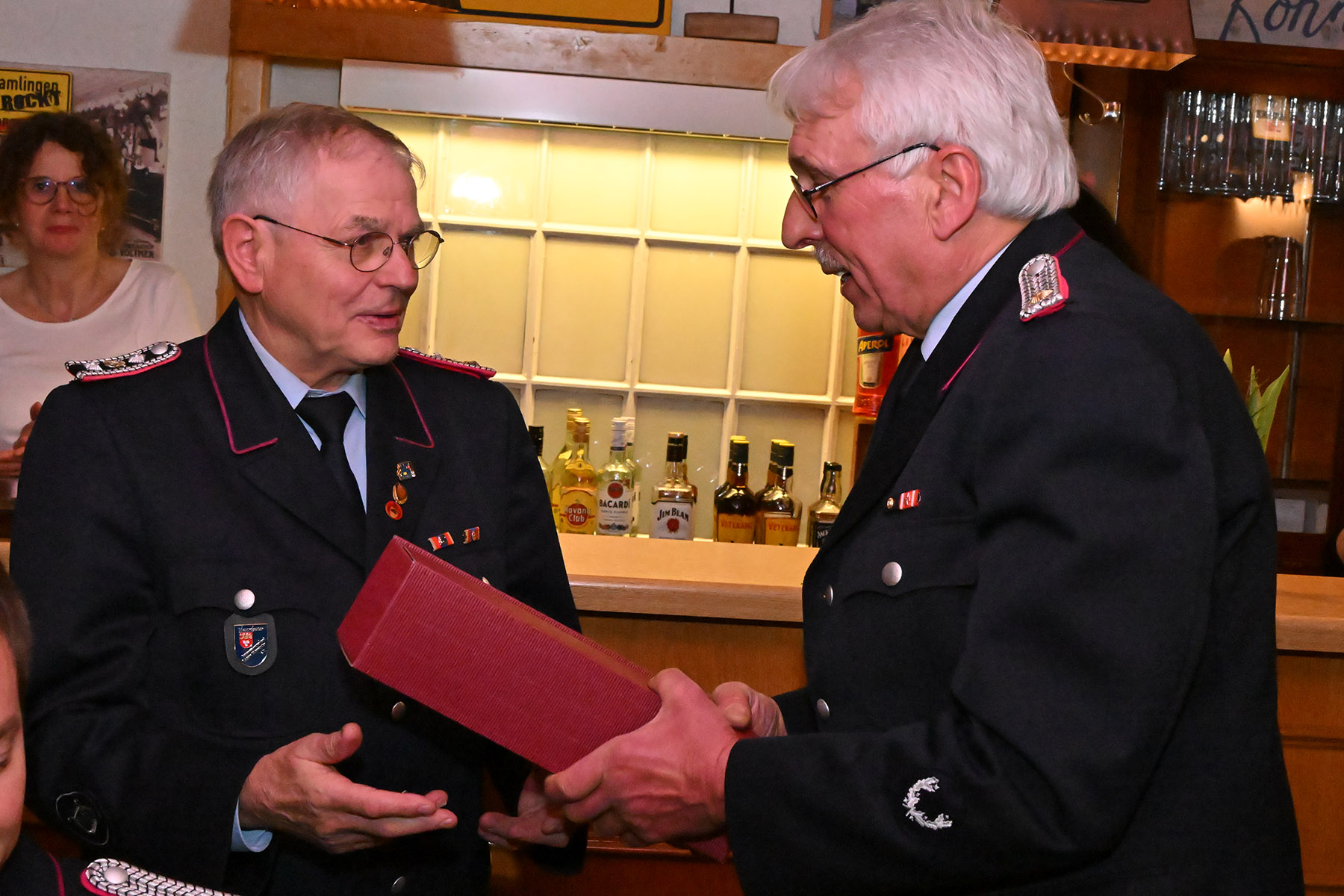 Der ehemalige Musikzugführer Gerhard Hogreve wurde durch Ortsbrandmeister Heinrich Könecke mit einem Geschenk verabschiedet. Neuer Leiter des Musikzuges ist Michael Weber.