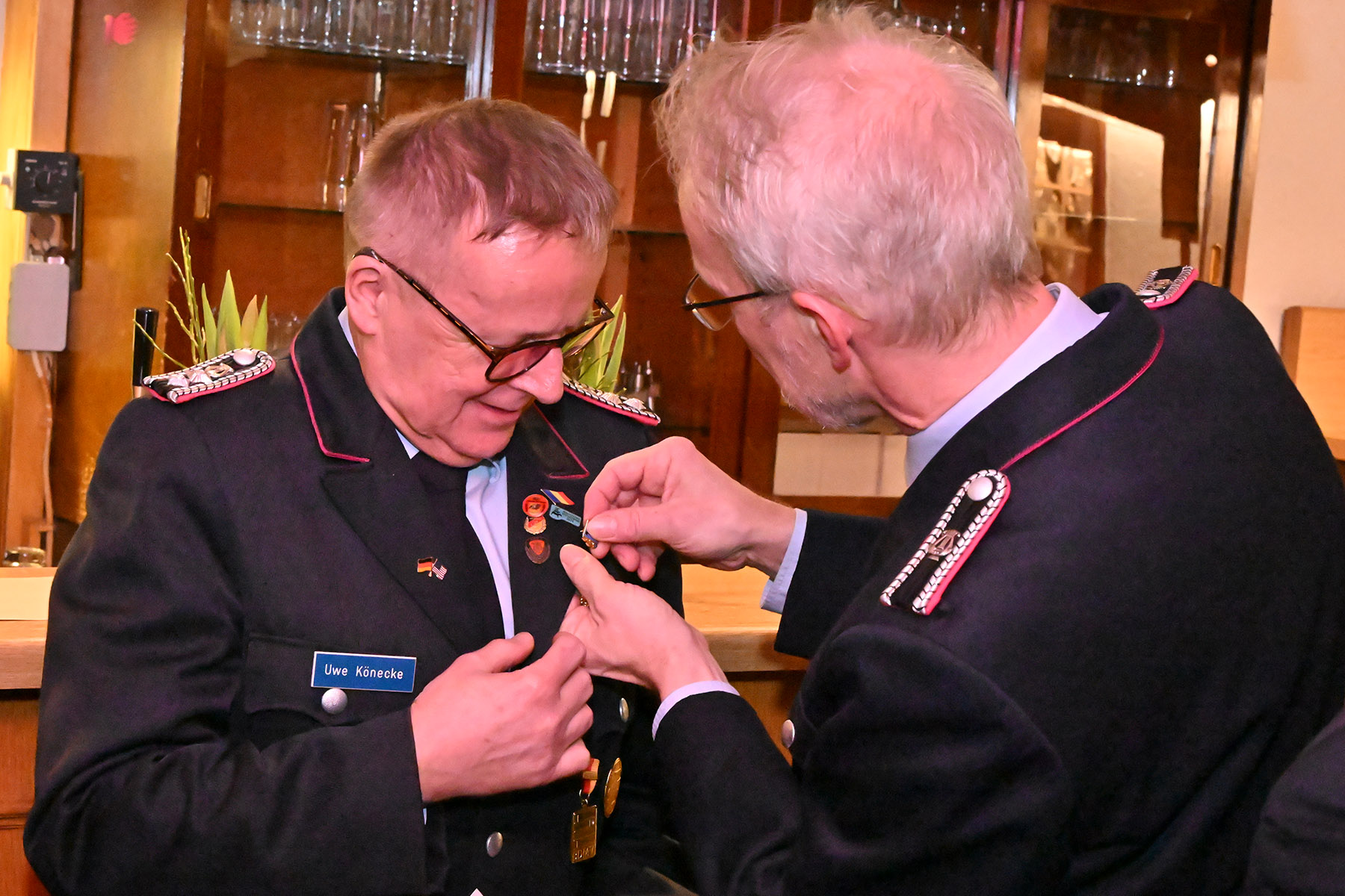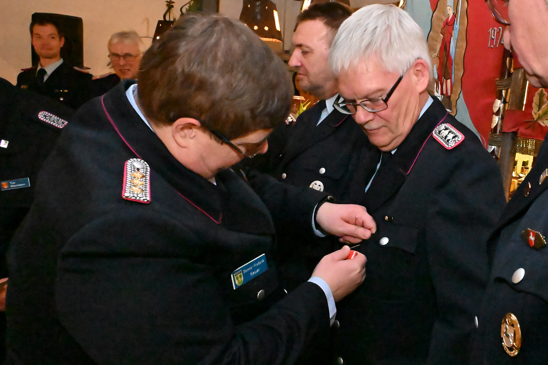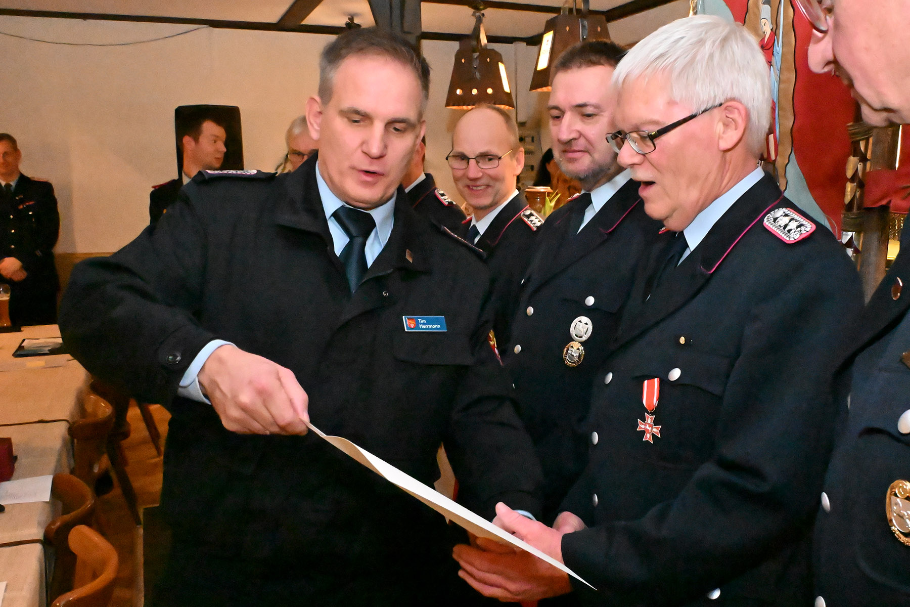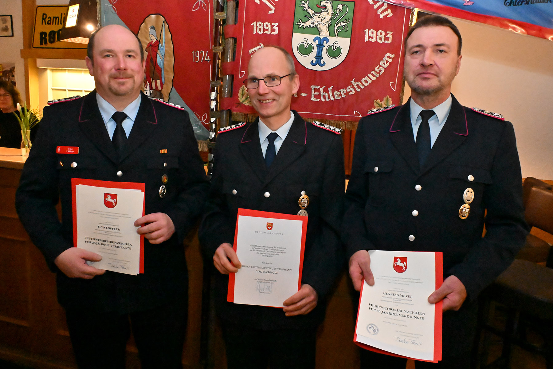 Für 25-jährige aktive Mitgliedschaft wurde Tino Löffler mit dem Feuerwehr-Ehrenzeichen des Landes Niedersachsen ausgezeichnet. Mit dem Feuerwehr-Ehrenzeichen des Landes Niedersachsen für 40-jährige aktive Mitgliedschaft in der Feuerwehr wurden Henning Meyer und Dirk Buchholz geehrt.