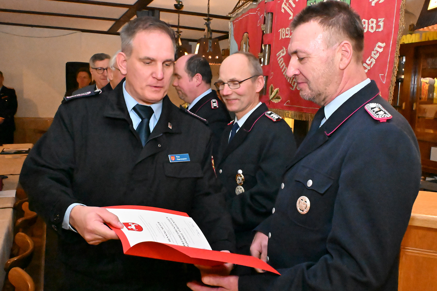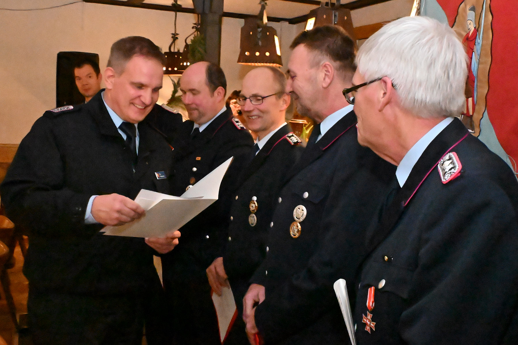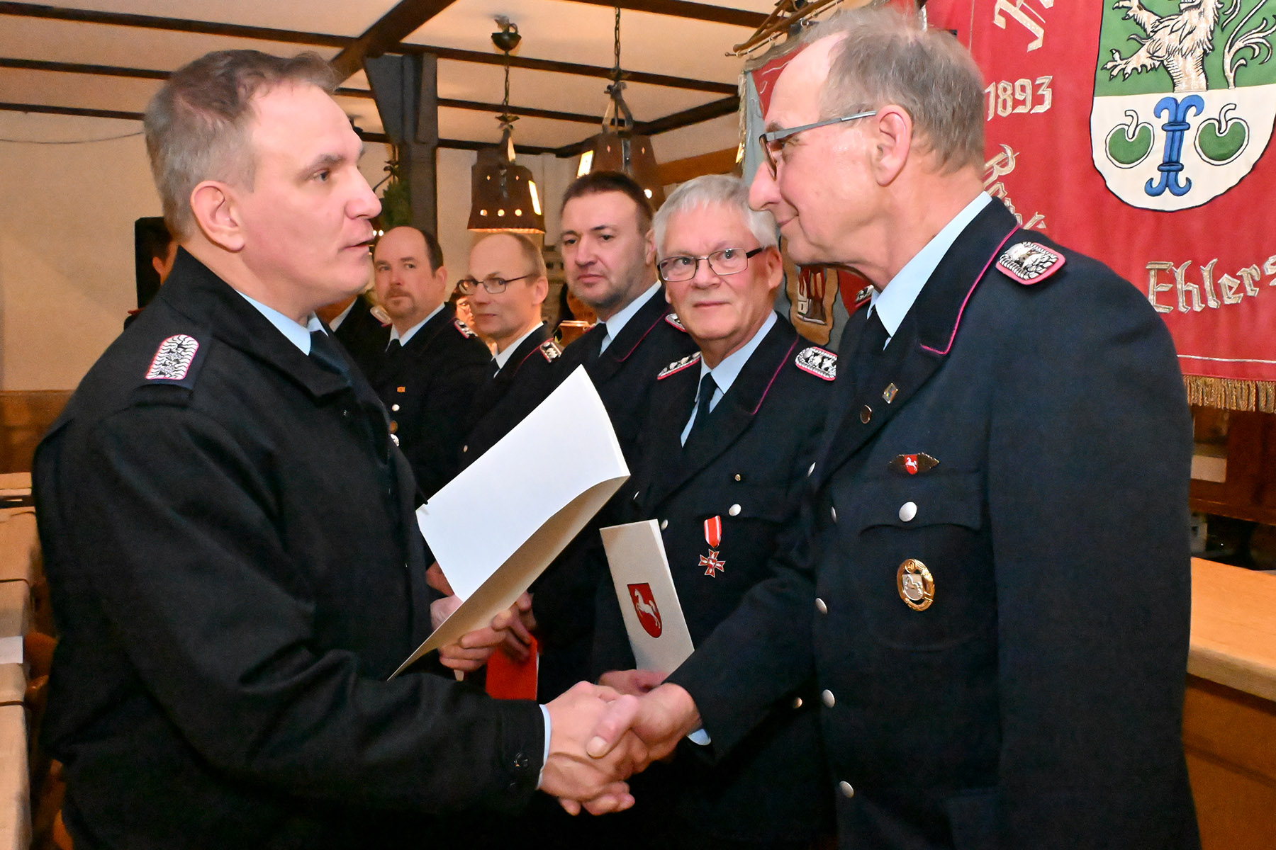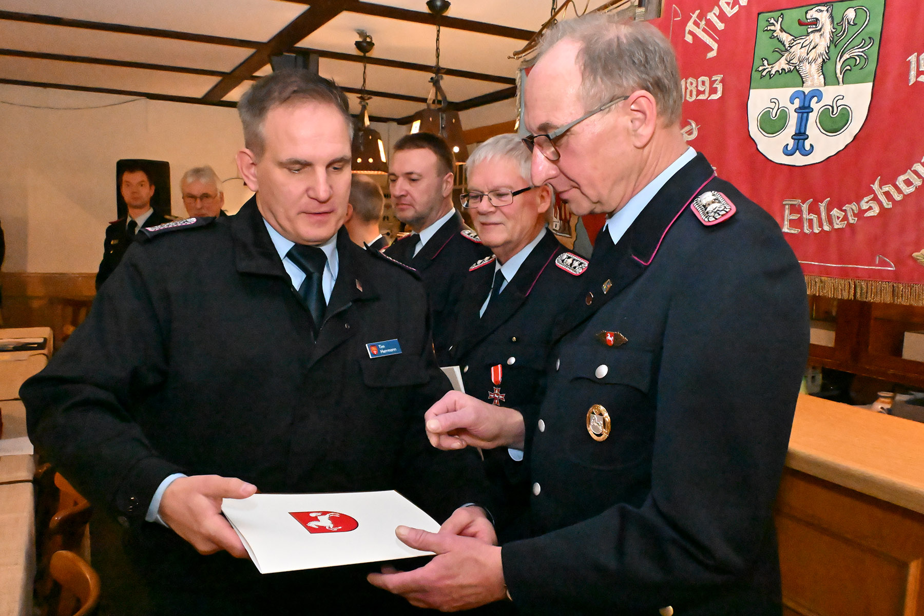 Für 25-jährige aktive Mitgliedschaft wurde Tino Löffler mit dem Feuerwehr-Ehrenzeichen des Landes Niedersachsen ausgezeichnet. Mit dem Feuerwehr-Ehrenzeichen des Landes Niedersachsen für 40-jährige aktive Mitgliedschaft in der Feuerwehr wurden Henning Meyer und Dirk Buchholz geehrt.