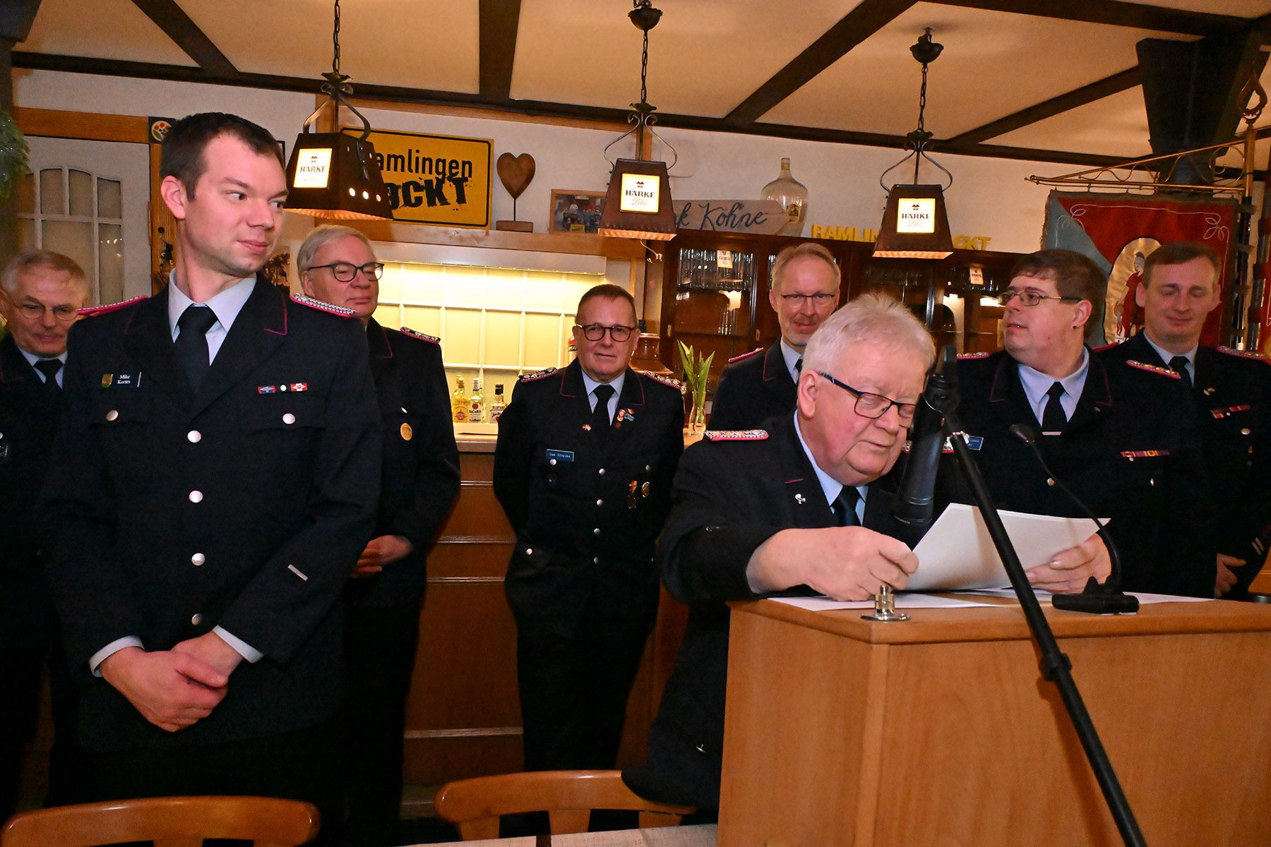 Mehr als 100 Gäste konnte Ortsbrandmeister Heinrich Könecke am gestrigen Freitag im Landgasthaus Voltmer begrüßen. Darunter Burgdorfs Bürgermeister Armin Pollehn, Ortsbürgermeister Wolfram Nolte, den stellvertretenden Brandschutzabschnittsleiter Tim Herrmann, Stadtbrandmeister Dennis-Frederik Heuer und seinen Stellvertreter Florian Bethmann, die Vorsitzende des Feuerwehrausschusses, Beate Neitzel, sowie Ehrenstadtbrandmeister Alfred Brönnemann und die Ehrenortsbrandmeister Karl-Heinz Blume und Hermann Könecke. Von der befreundeten Feuerwehr aus Kleinmühlingen-Zens war eine Abordnung unter der Führung von Ortswehrleiter Hans-Georg Fabian nach Ramlingen gekommen. Für die musikalische Begleitung spielte der Feuerwehrmusikzug Ramlingen-Ehlershausen auf.