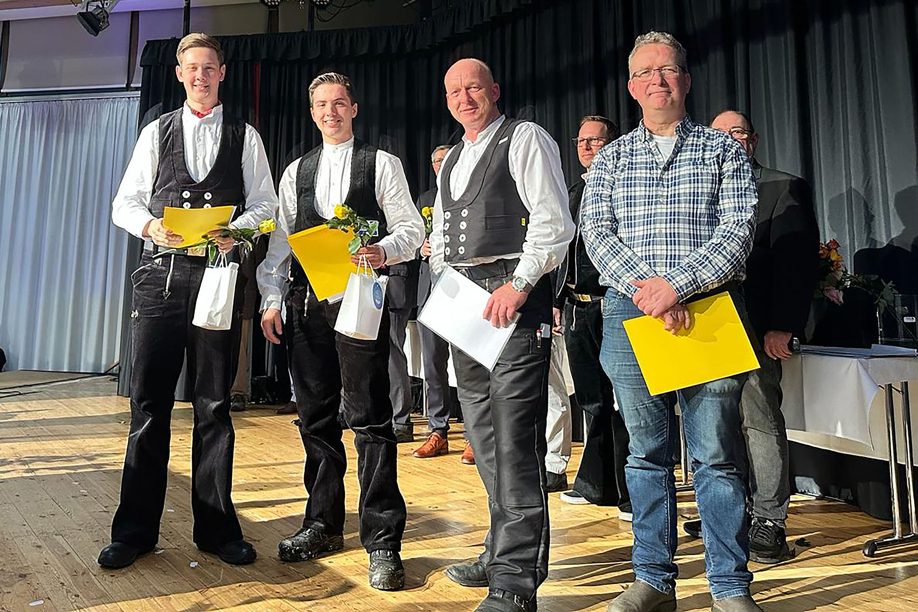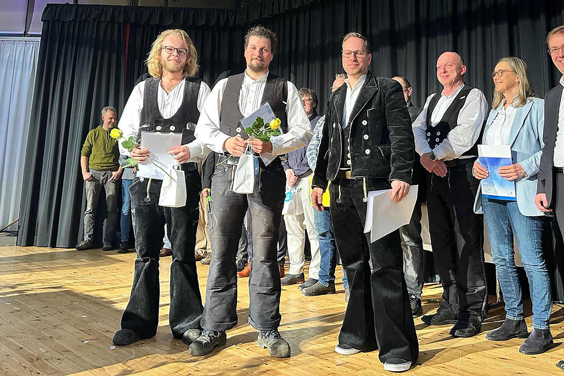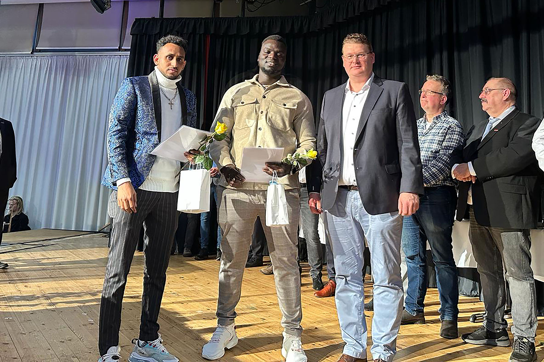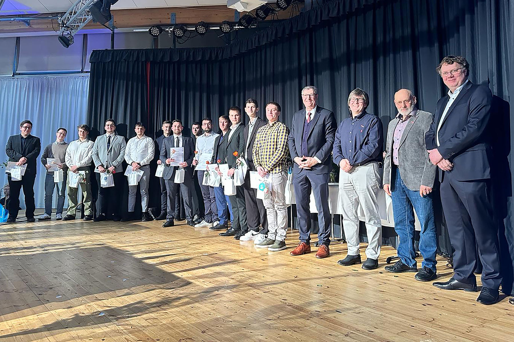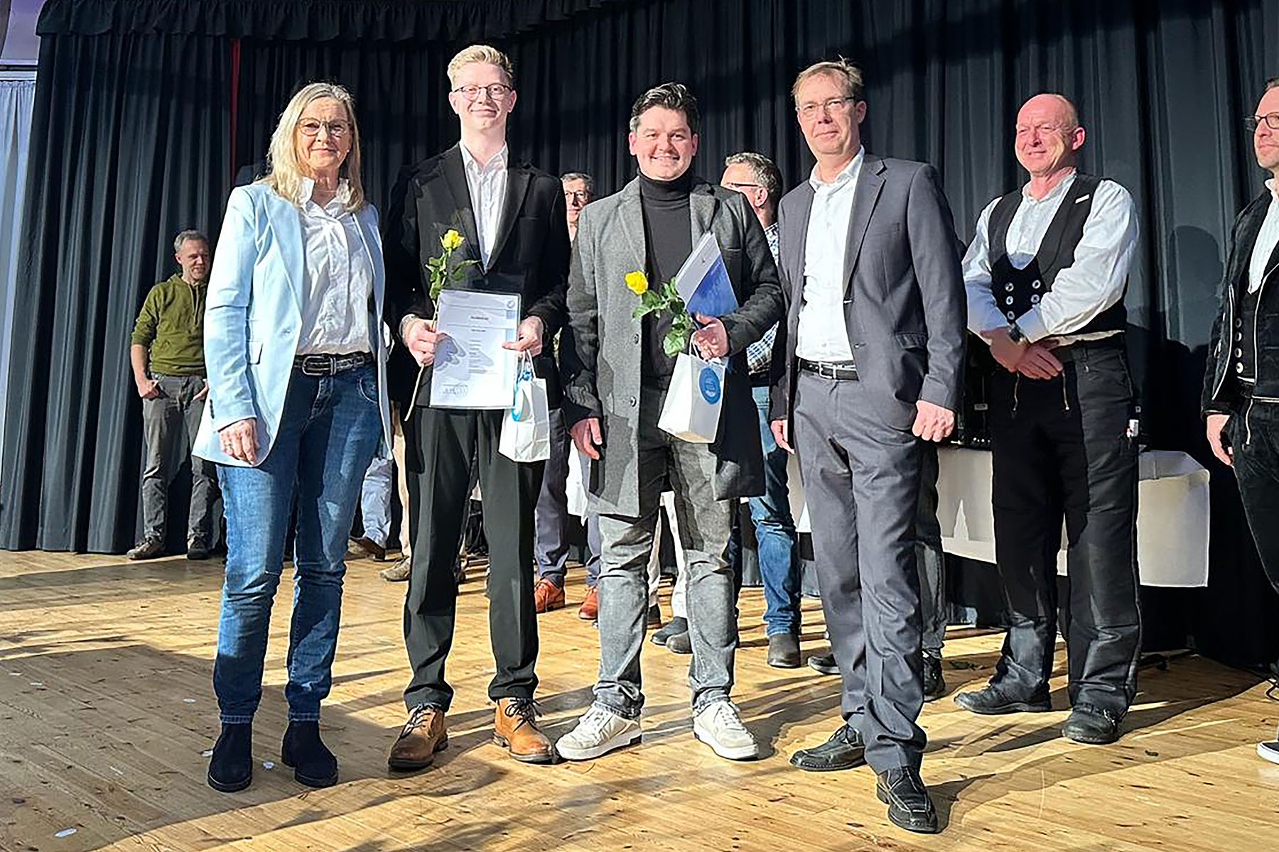 Für die dann beginnende erste Überreichung der Gesellenbriefe wurden der gastgebende Bürgermeister Armin Pollehn und der Obermeister der Sanitär- und Heizungstechnik-Innung, Martin Block (Burgdorf), auf die Bühne gebeten.