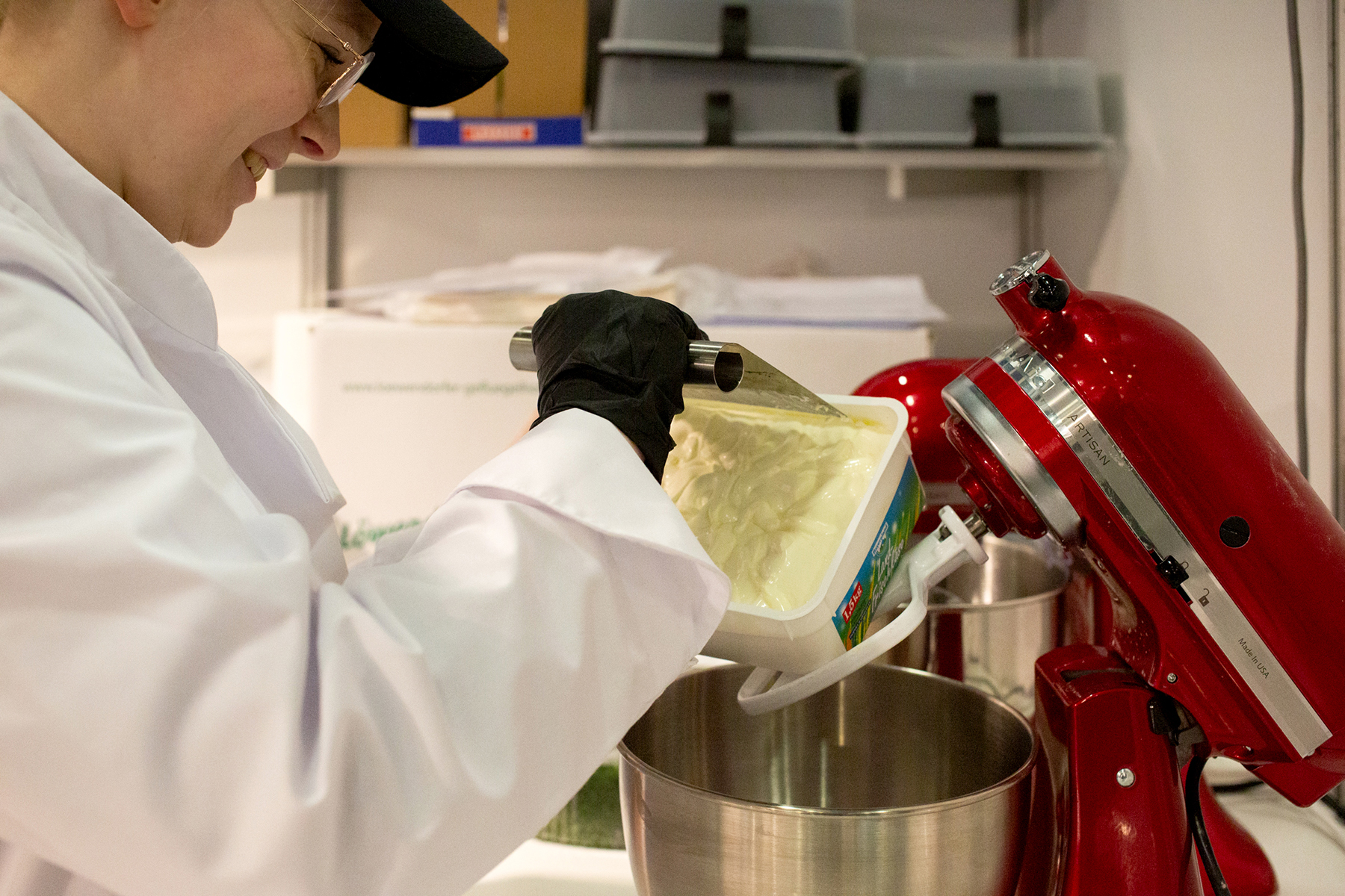 "Es begann mit dem Aufbau", so Kuhlmann-Rog, "wir haben den Stand bestuhlt, die Küche eingeräumt und das Catering vorbereitet. Die SchülerInnen haben Schokolade gegossen, jeden Tag ab 9 Uhr das sehr gut besuchte Hofcafé mit 40 Sitzplätzen geführt. Es gab ein täglich wechselndes Angebot mit verschiedenen Pizzazungen, Suppe, Salat mit Steakstreifen, Nudeln mit unterschiedlichen Soßen." Täglich wurden von den Schülerinnen zwischen drei und fünf Kuchen gebacken, die sich größter Beliebtheit erfreuten.