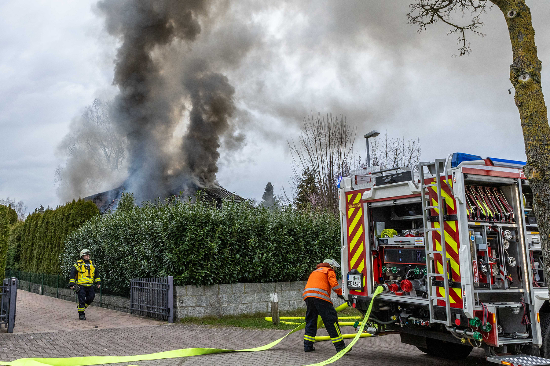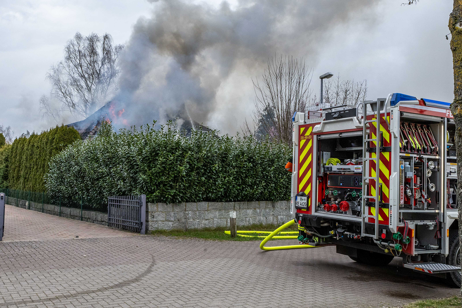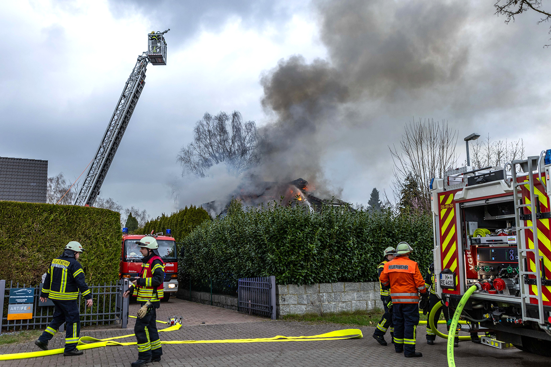 Ersten Informationen zufolge steht im Rotkehlchenweg der Dachstuhl eines Einfamilienhauses im Vollbrand. Die Feuerwehrkräfte haben die Löschmaßnahmen eingeleitet. Auch die Drehleiter der Ortsfeuerwehr Burgdorf ist im Einsatz. Personen sind ersten Angaben zufolge nicht verletzt worden.