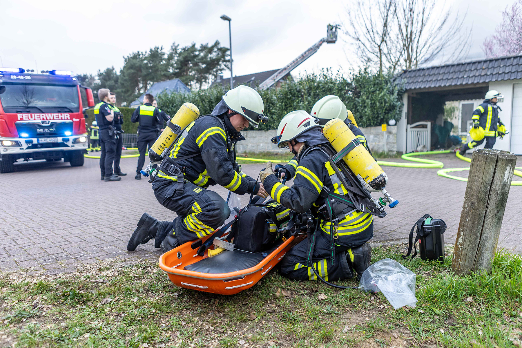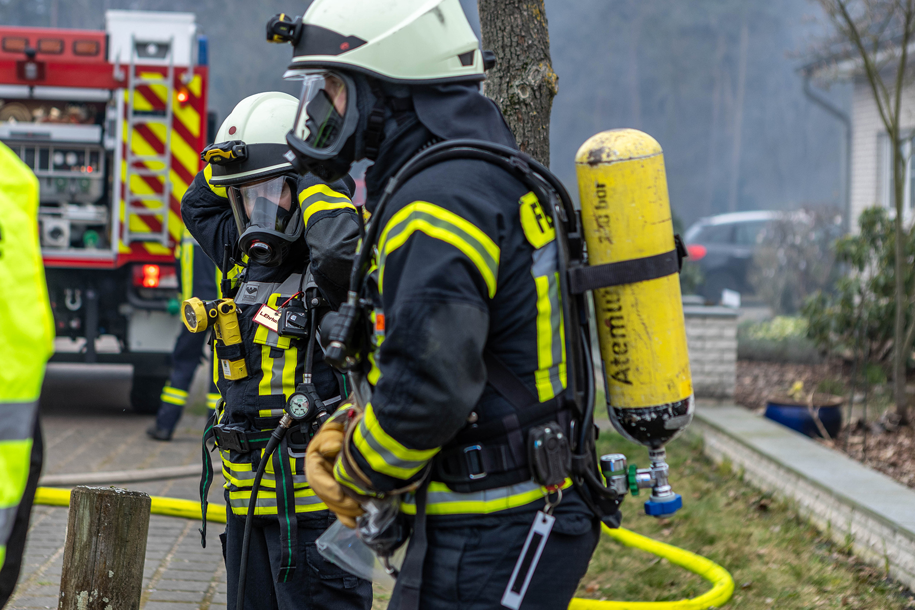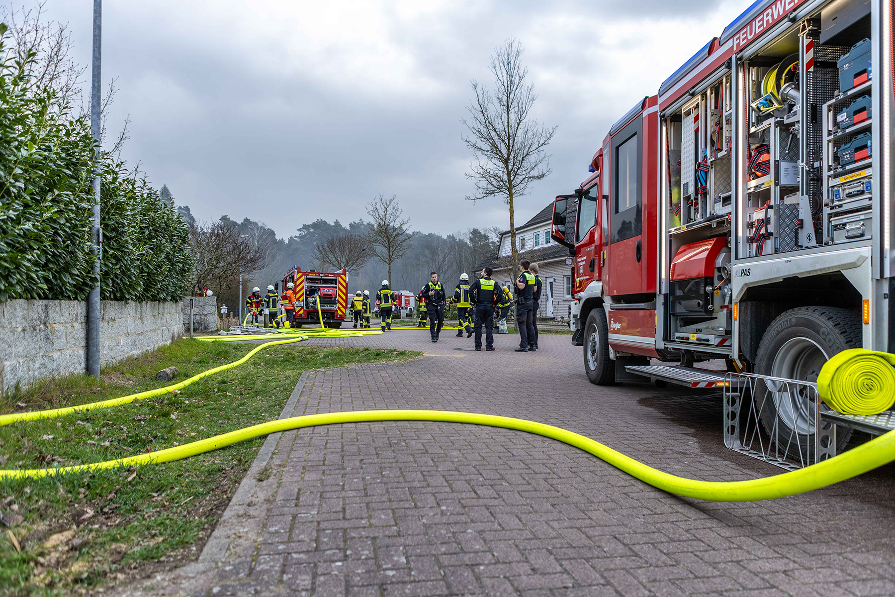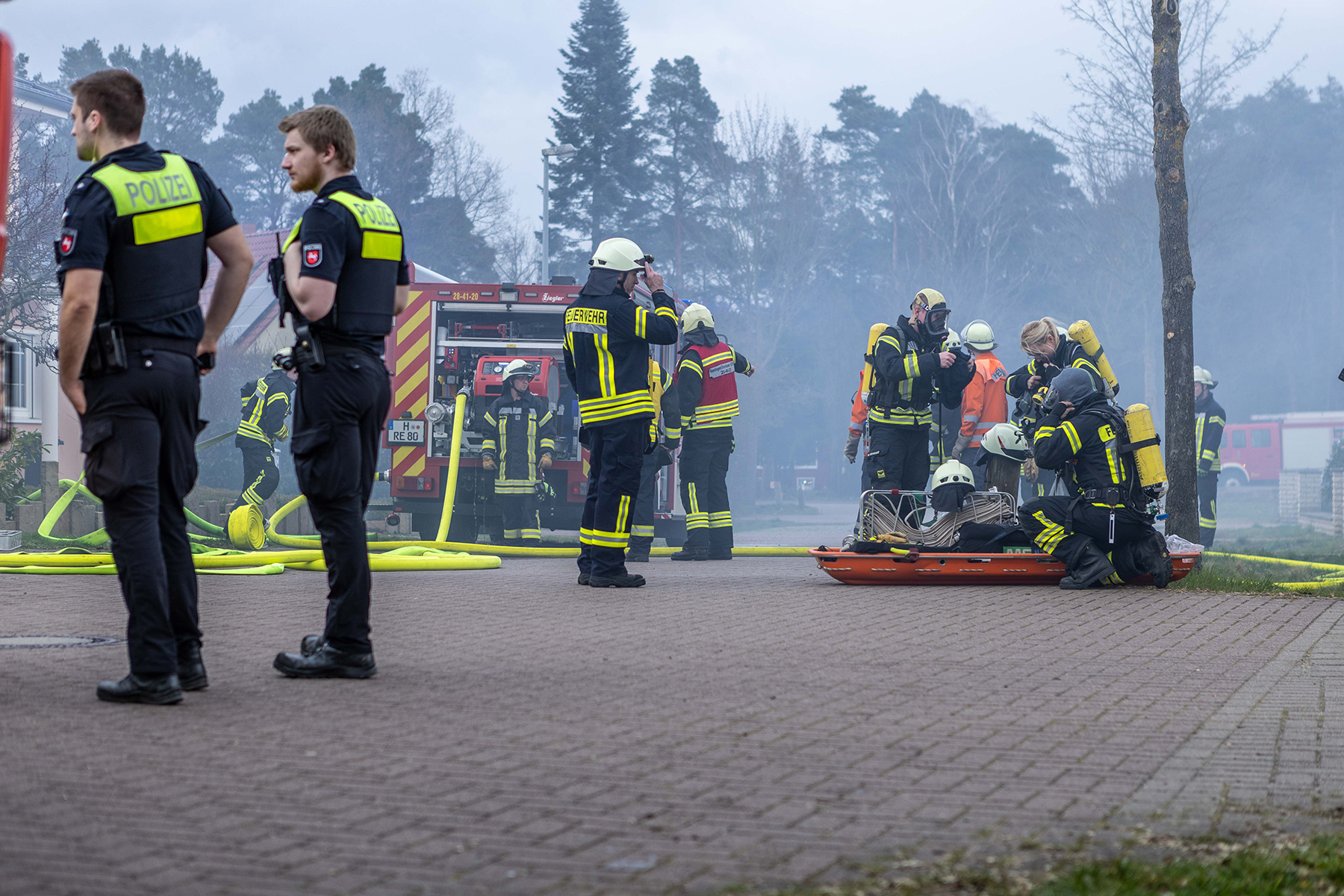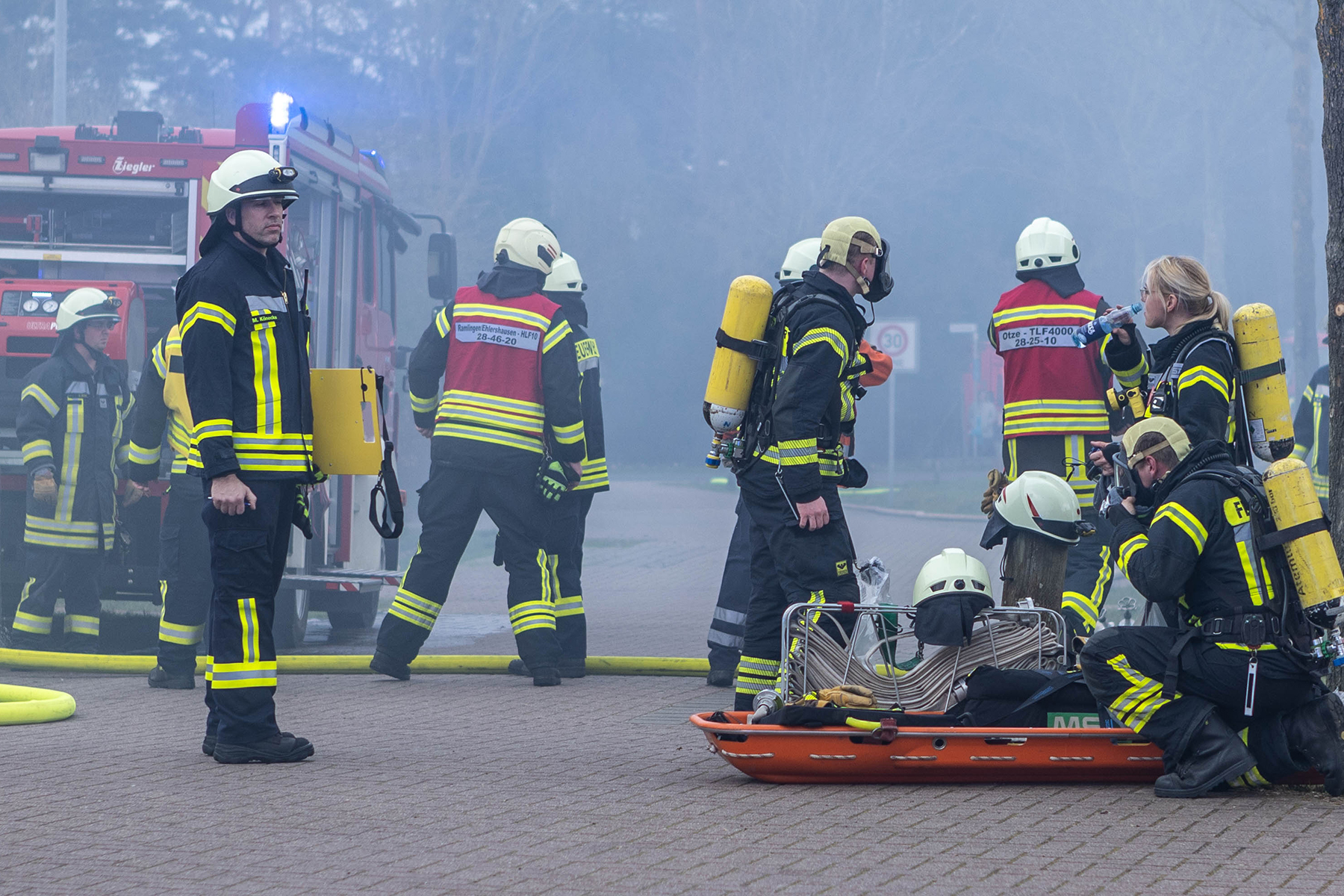 Auf Grund der vorherrschenden Lage und da nicht feststand, ob sich noch Personen im Gebäude befanden, wurden die Ortsfeuerwehr Dachtmissen mit weiteren Atemschutzgeräteträgern zur Einsatzstelle alarmiert.