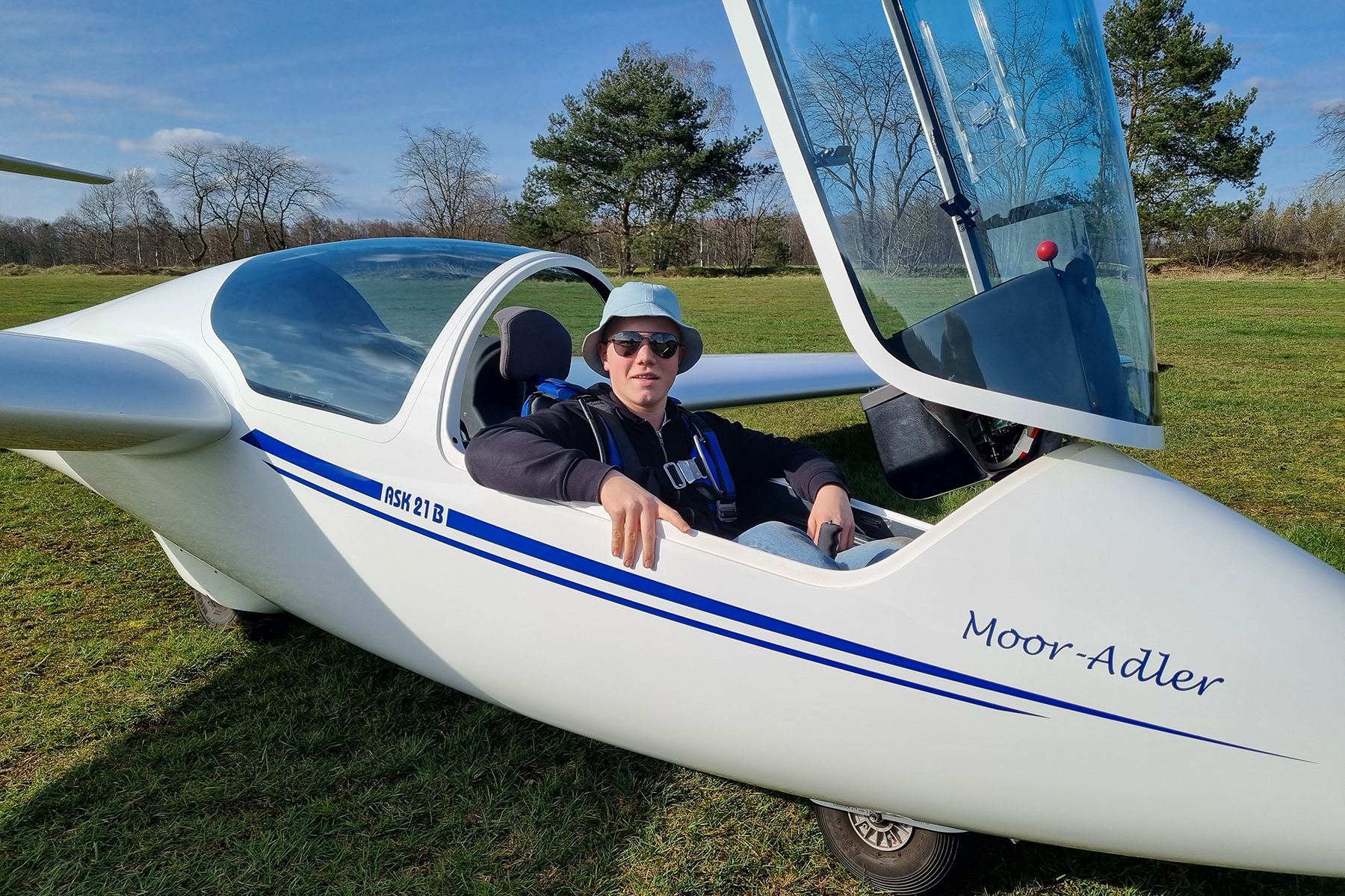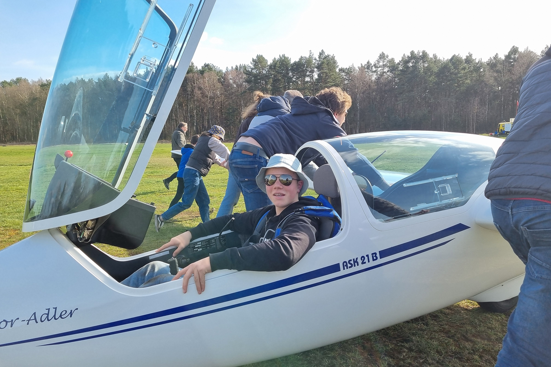 Bereits eine Woche nach dem Anfliegen konnte sich Clemens Homagk auf dem Schulungsdoppelsitzer ASK21 freifliegen. Ab sofort darf der 14-jährige Flugschüler alleine durch die Lüfte gleiten.