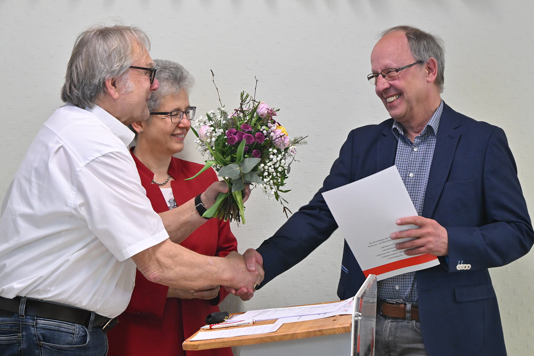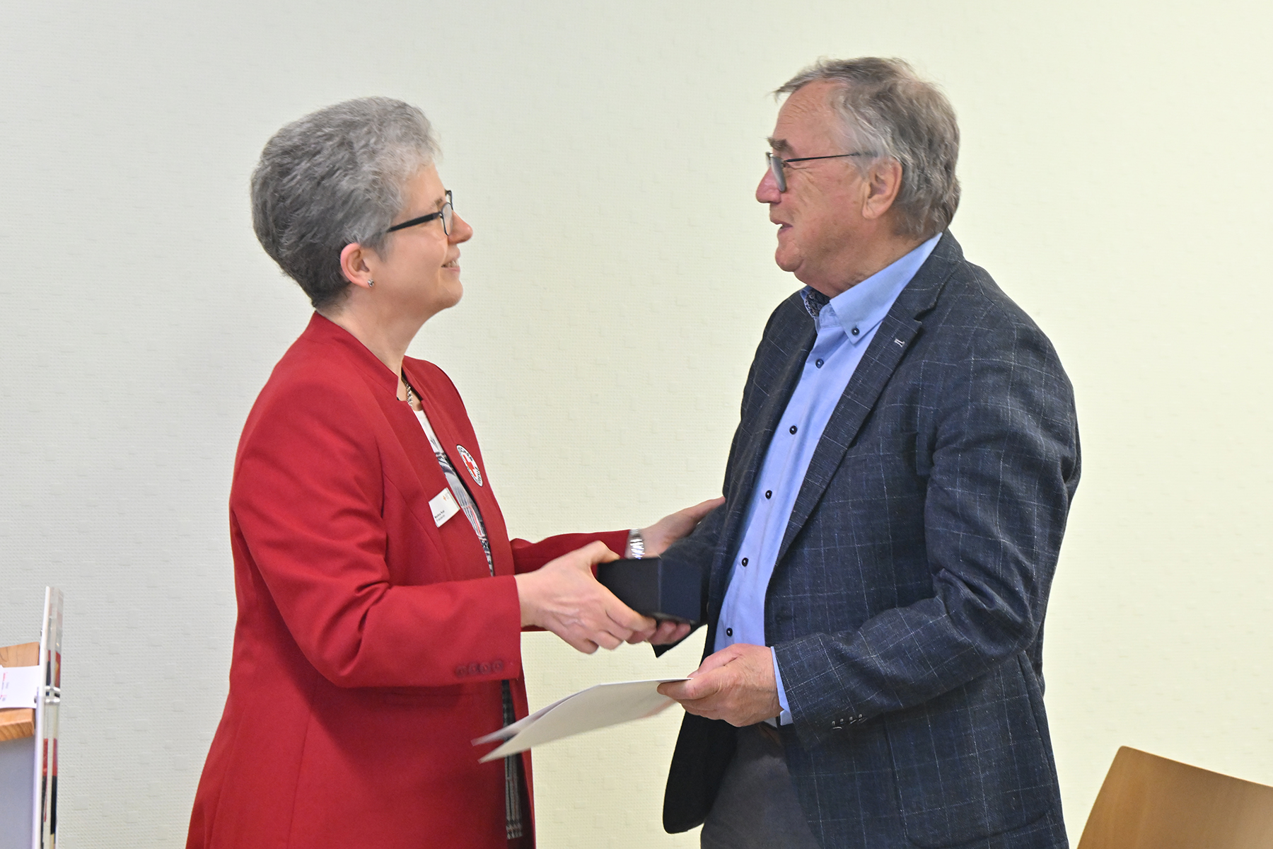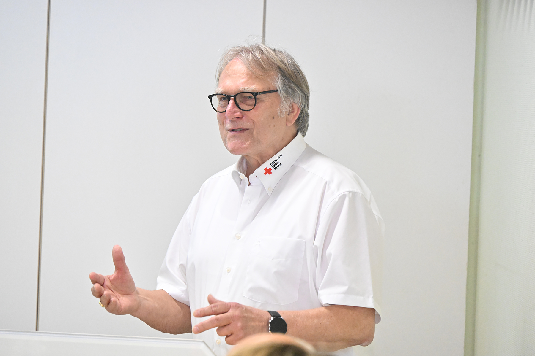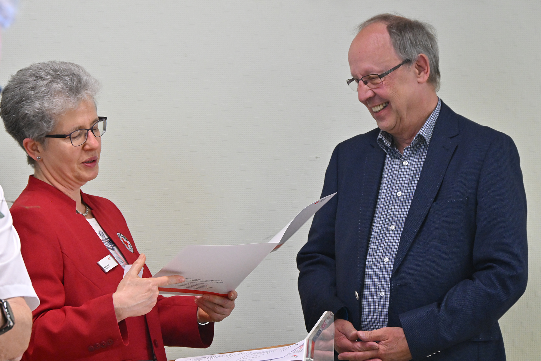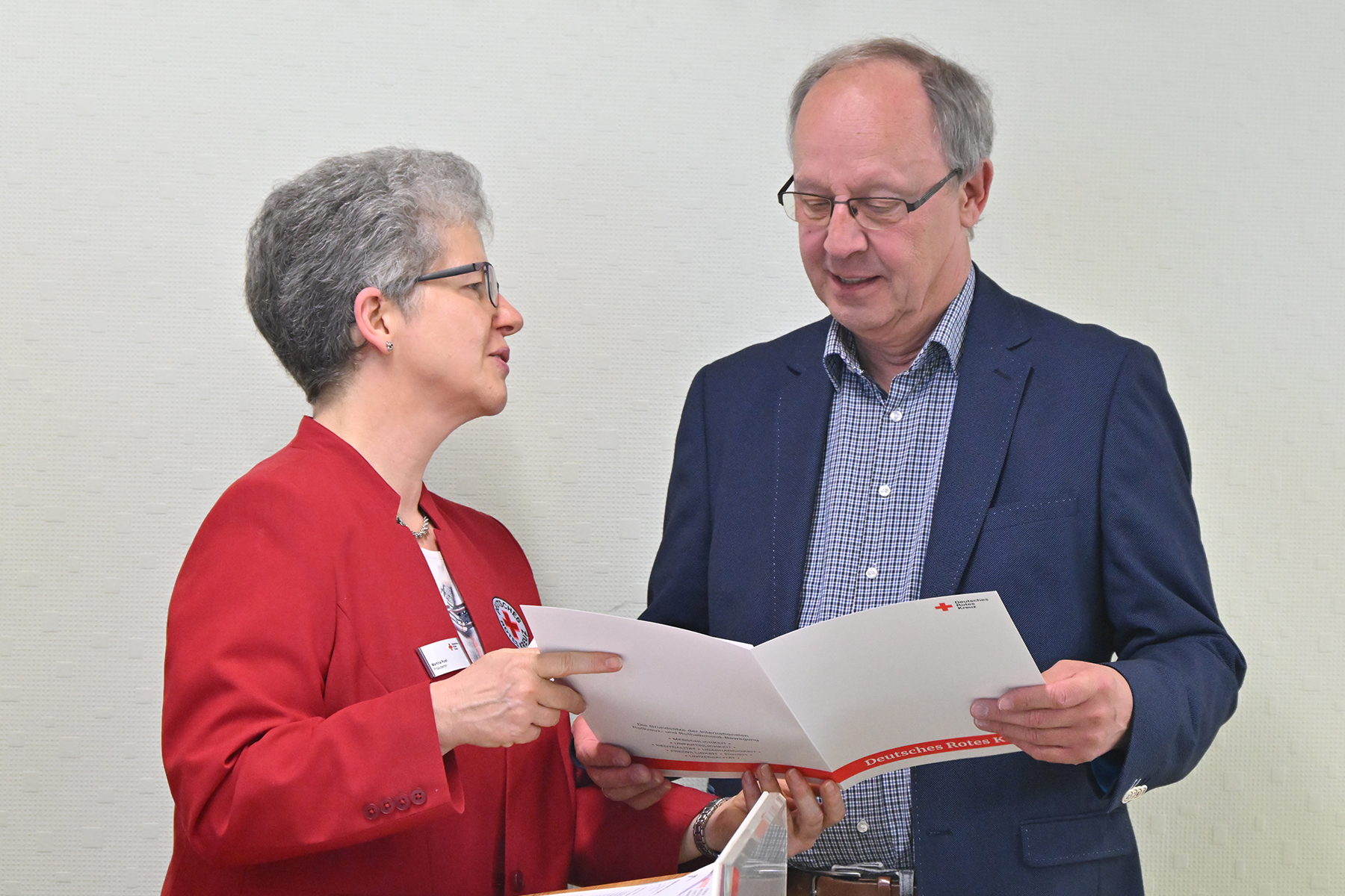 Der scheidende Ortsvereinsvorsitzende Gero von Oettingen nutzt die Gelegenheit, einen Rückblick auf seine neunjährige Arbeit als 1. Vorsitzender vorzunehmen. Ob die Zusammenarbeit mit vielen anderen Organisationen wie der Tageswohnung oder dem Kinderschutzbund, einen Erste-Hilfe-Gutschein im SMB-Begrüßungsgutscheinheft: "Es war eine Zeit, die ich nicht missen möchte", so Gero von Oettingen. Er habe damals 2015 keine reibungslose Übergabe gehabt, umso besser sollte es bei diesem Wechsel laufen. Auch die Regions-DRK-Präsidentin Martina Rust freute sich über den reibungslosen Übergang.
