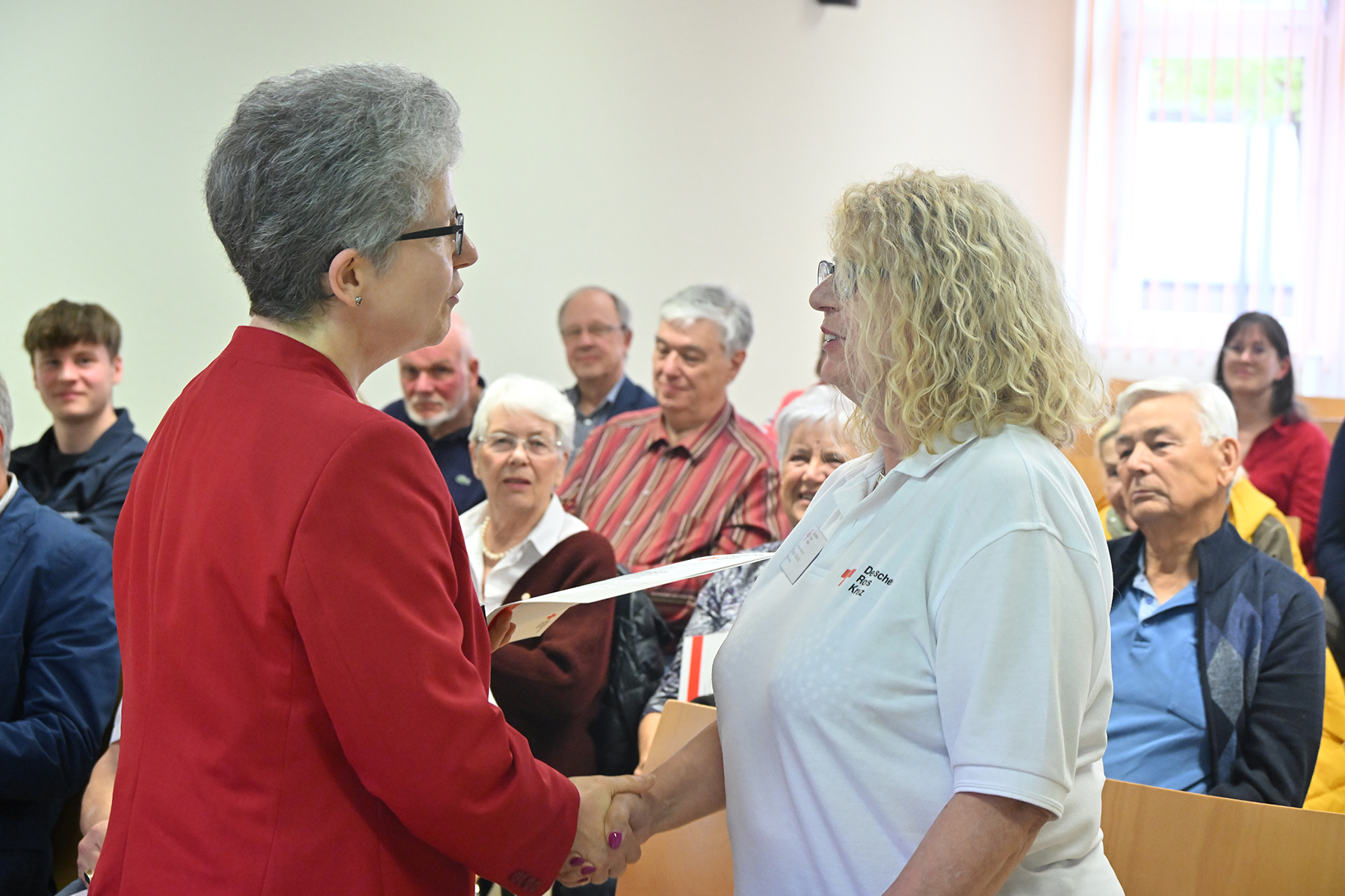 Für langjährige Mitgliedschaft konnte die Präsidentin des DRK Region Hannover mehrere Mitglieder auszeichnen. Ludwig Thiele und Edith Linnemann sind 60 Jahre Mitglied im Verein. Auf eine 50-jährige Mitgliedschaft schauen Ute Coviello, Bärbel und Peter Krautwedel, Ursula Menzel, Wolfgang Obst, Brigitte Theinert und Leonore Treinat zurück. 40 Jahre im DRK-Ortsverein ist Brunhilde Friedrich.