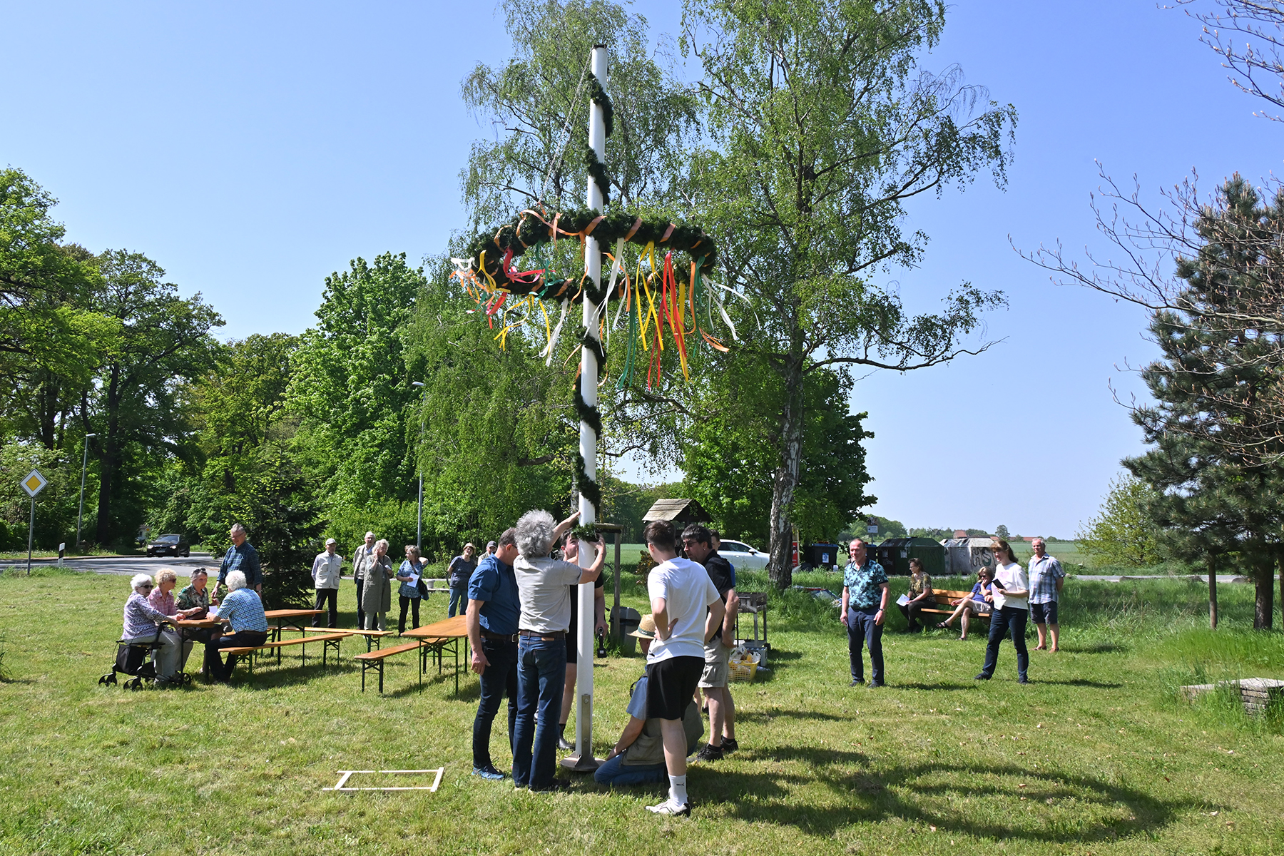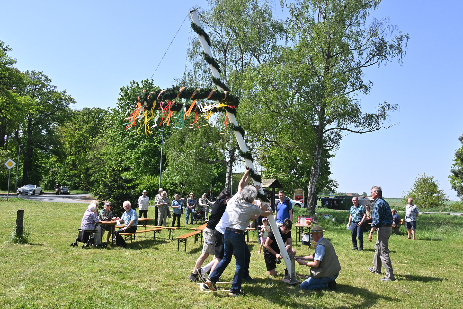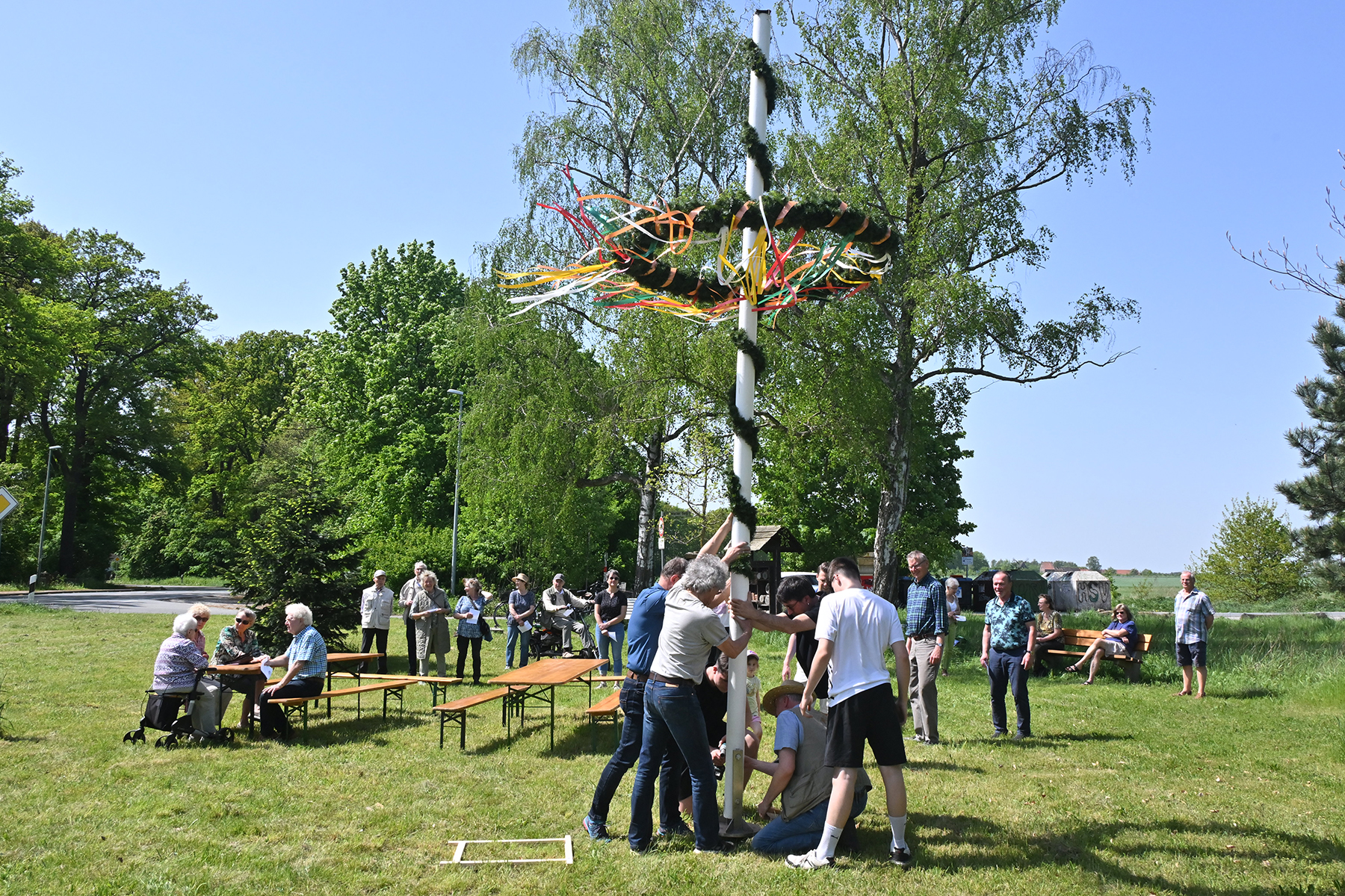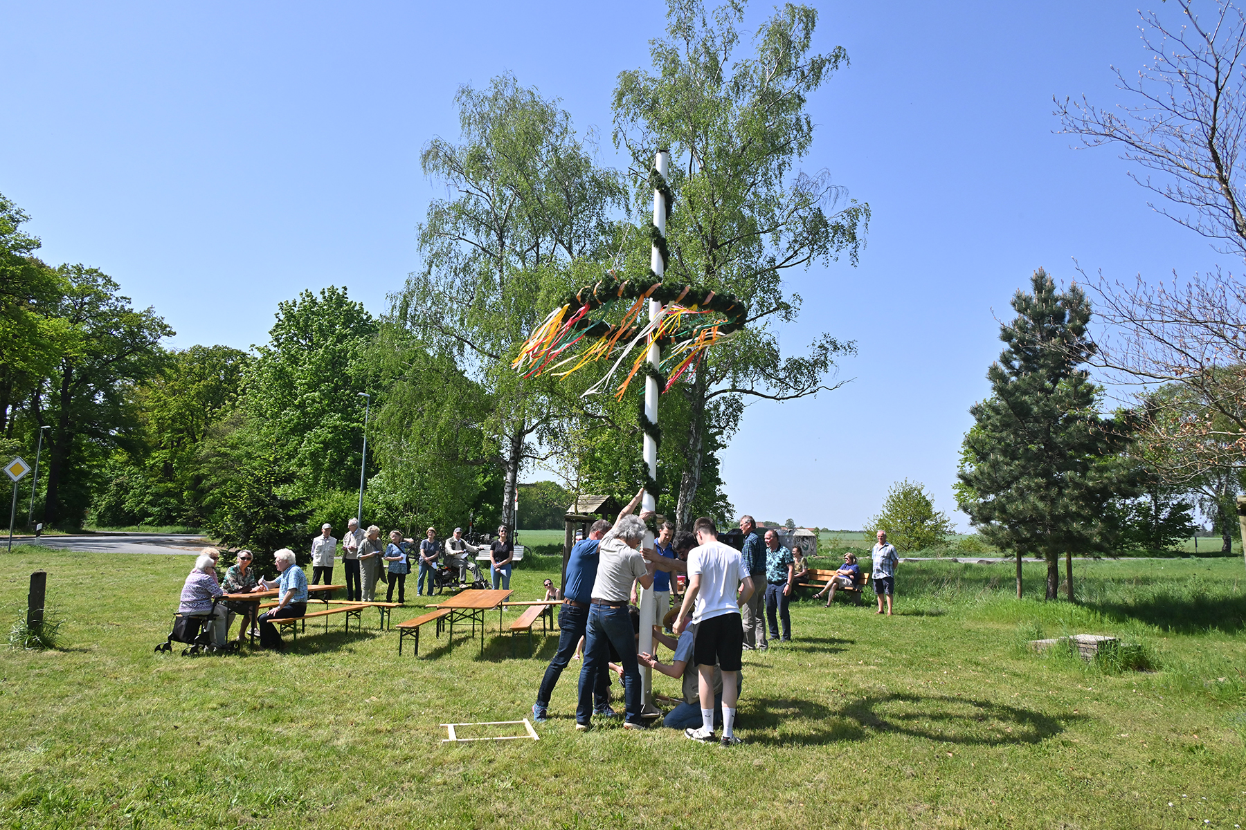 In einem kleinen, aber feinen Rahmen wurde am gestrigen Mittwoch, 1. Mai 2024, das Aufstellen des Maibaums in Sorgensen zelebriert. Rund 40 Besucher kamen zu einer kleinen Feierstunde gegen 13 Uhr, um den Mai zu begrüßen.