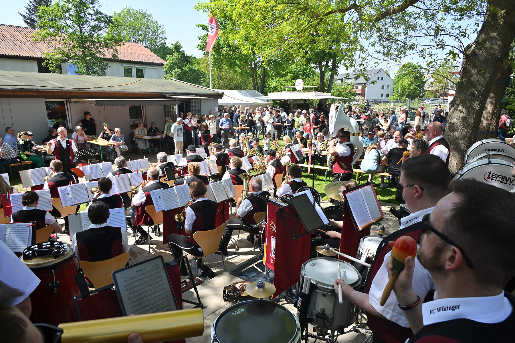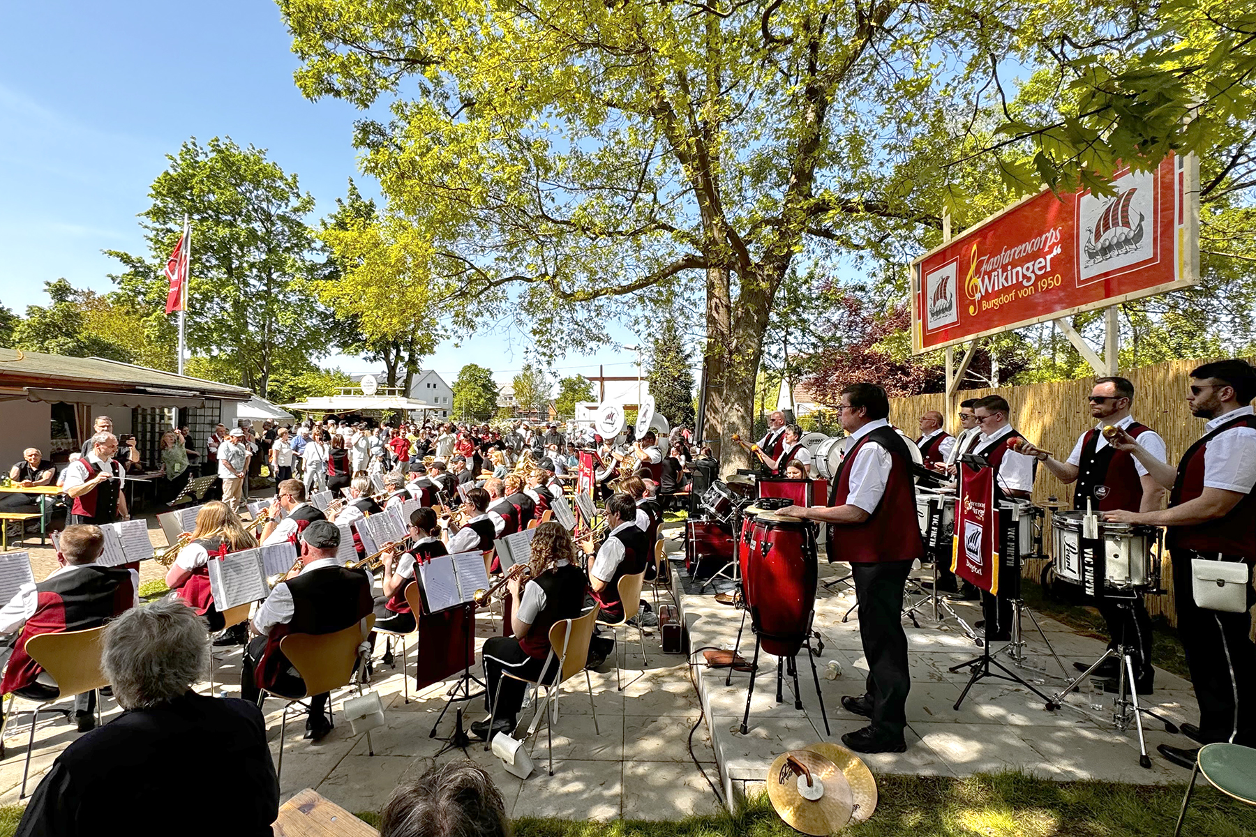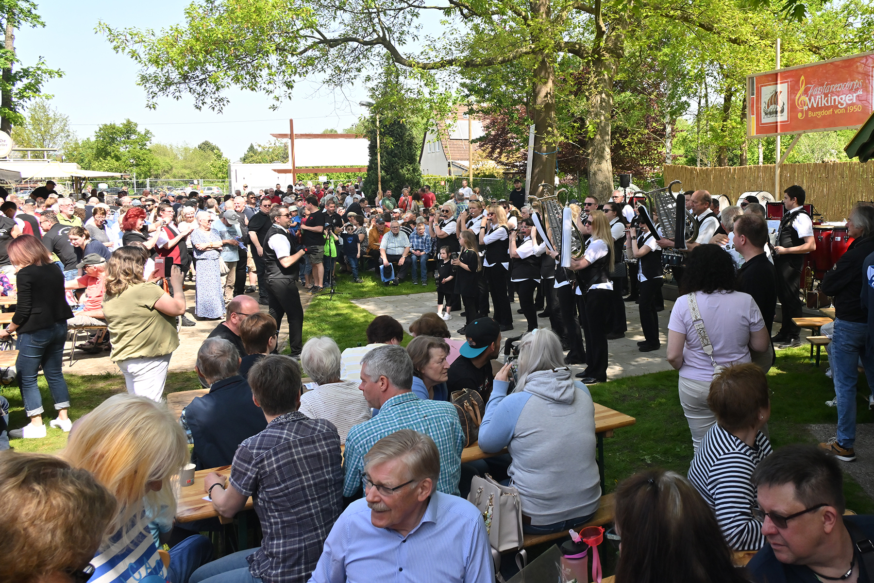 Am gestrigen Mittwoch, 1. Mai 2024, trafen sich so wieder hunderte Besucher am Wikinger-Vereinsheim am Ende der Friederikenstraße, um musikalisch den Mai zu begrüßen.