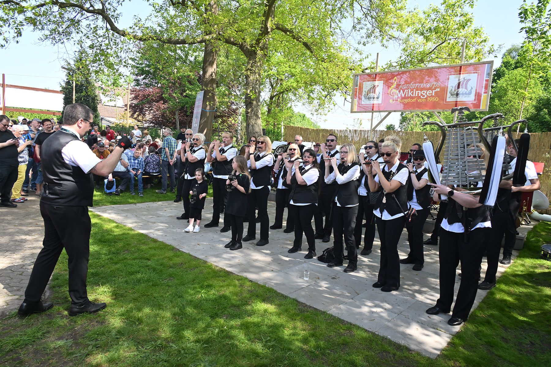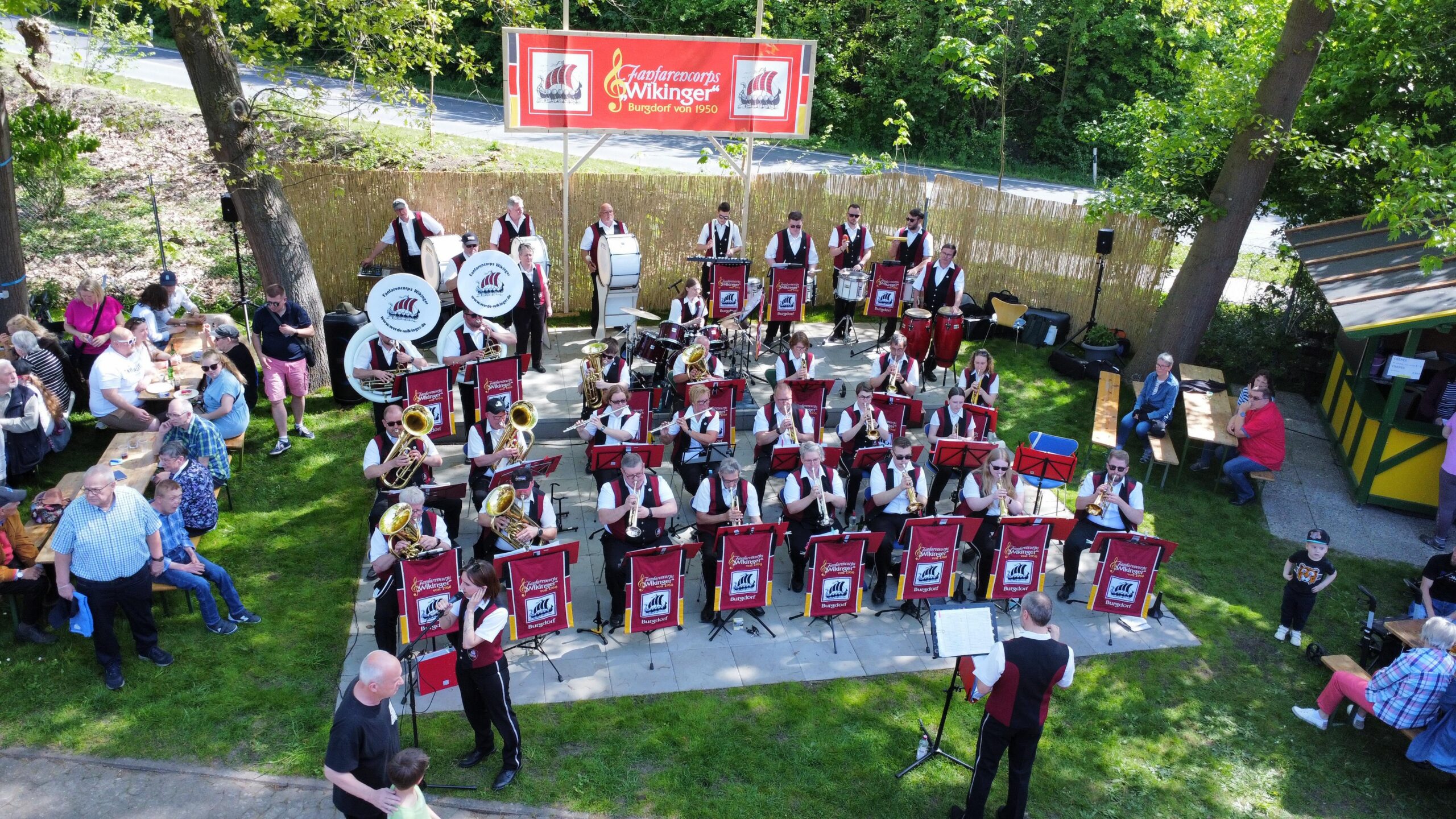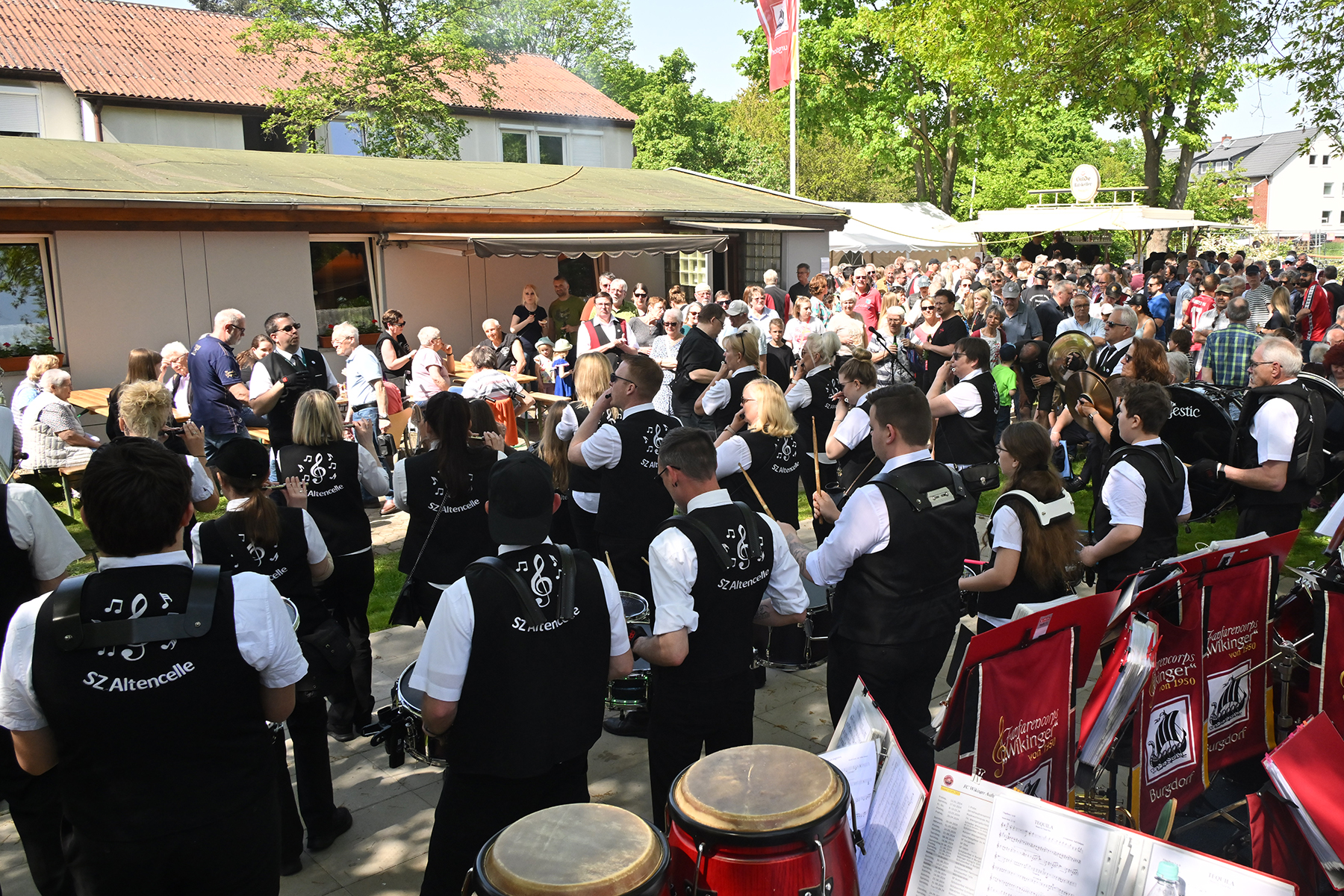 Am gestrigen Mittwoch, 1. Mai 2024, trafen sich so wieder hunderte Besucher am Wikinger-Vereinsheim am Ende der Friederikenstraße, um musikalisch den Mai zu begrüßen.