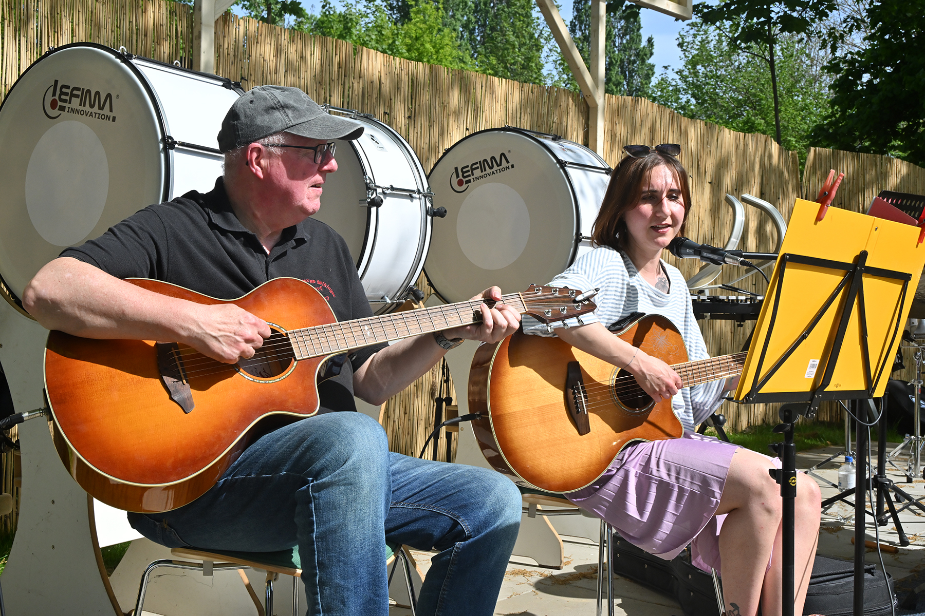 Die Wikinger wären nicht die Wikinger, wenn sie sich nicht wieder einmal etwas Neues hätten einfallen lassen. Auf der neu errichteten gestuften Terrasse, die als Bühne fungierte, waren gestern ebenso E-Gitarrenklänge von Sebastian Budde wie auch die gesangliche Einlage von Luisa Kronfeld zu hören, die beide tosenden Applaus erhielten.