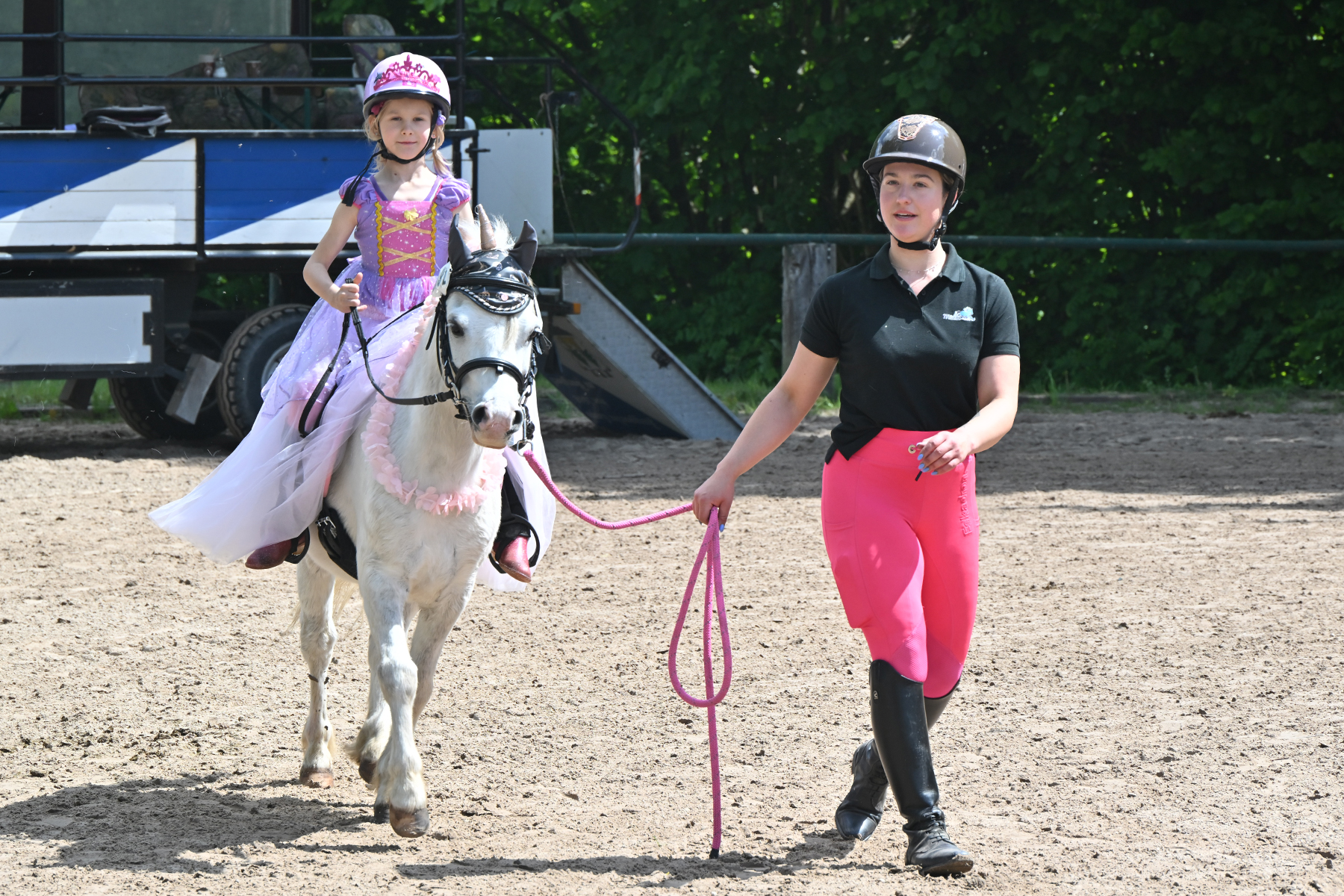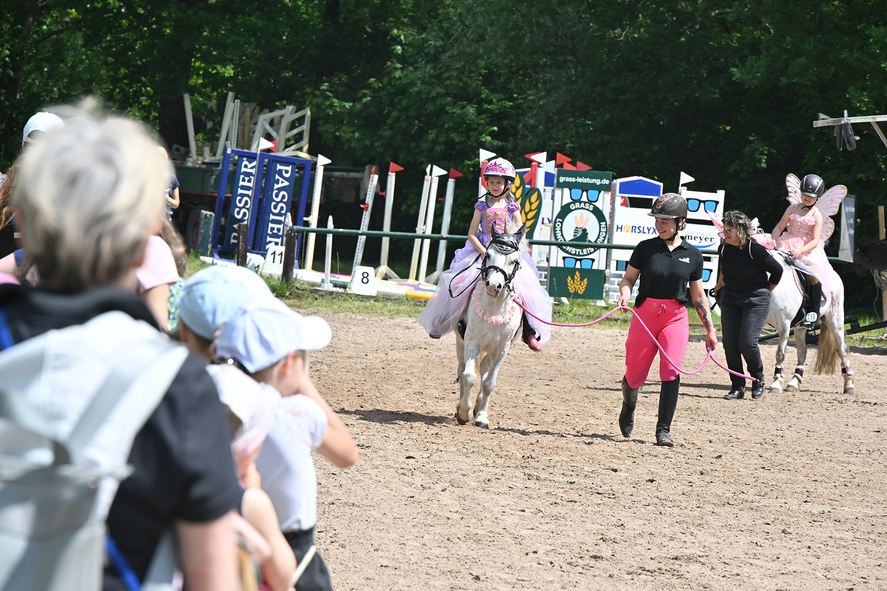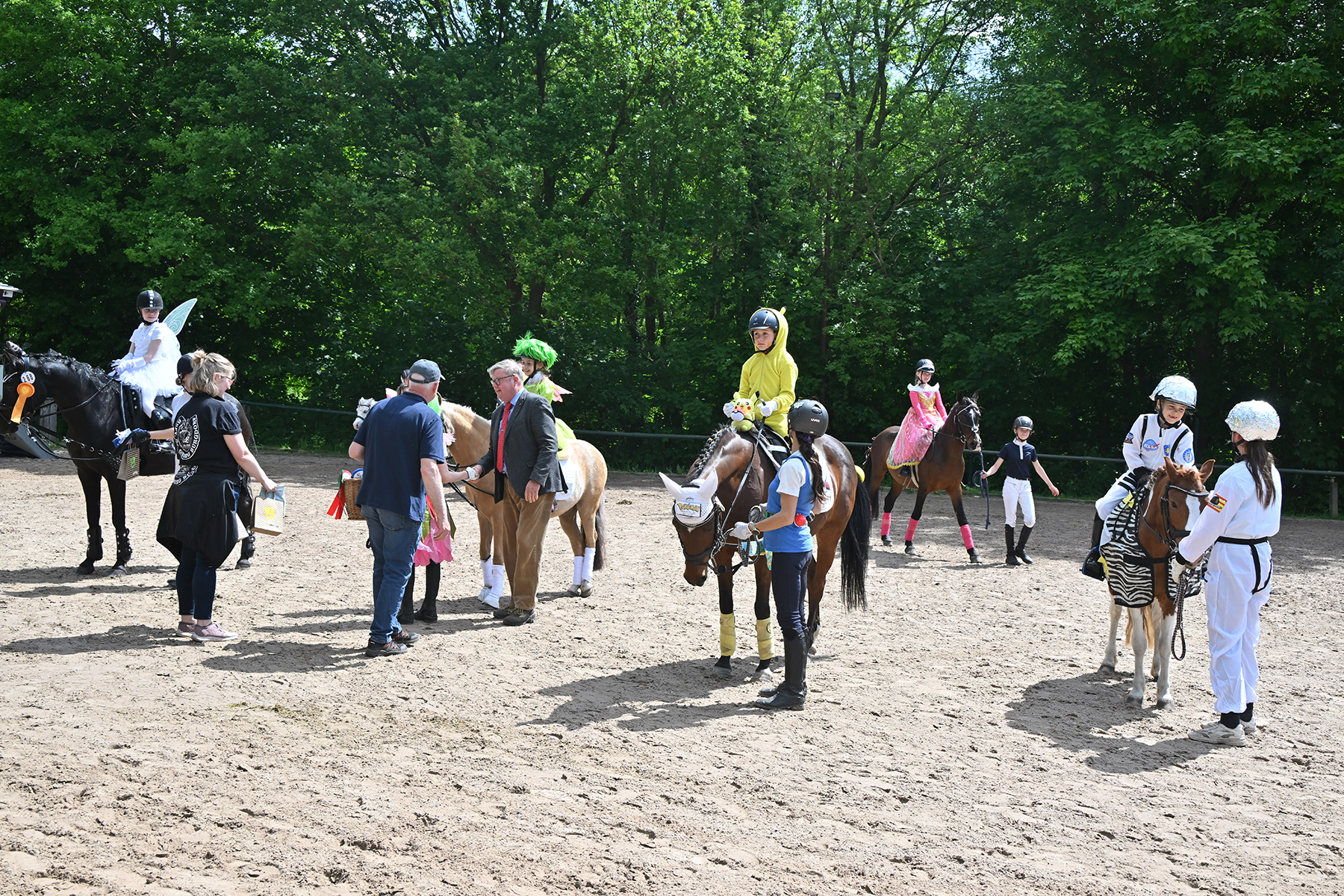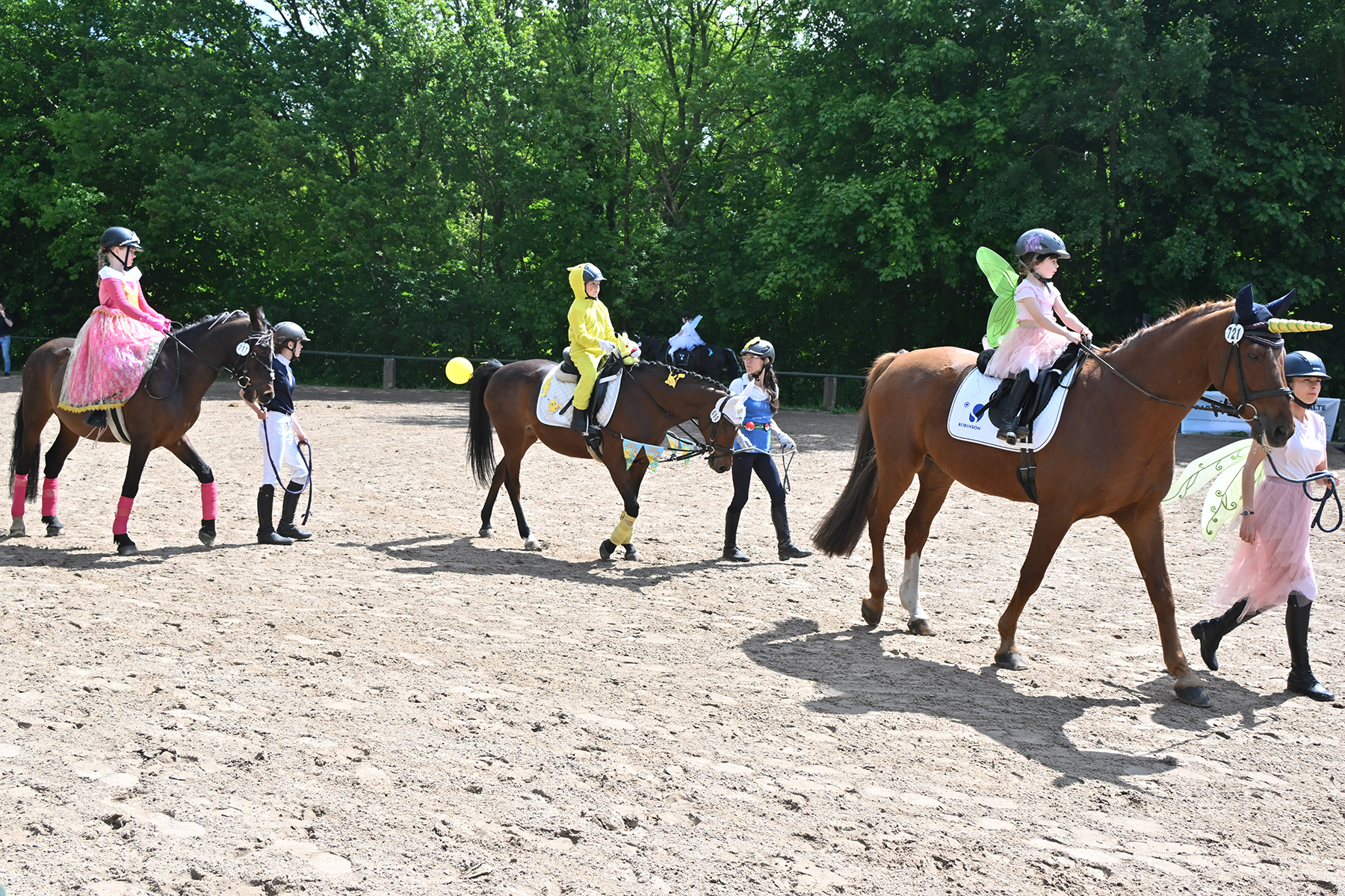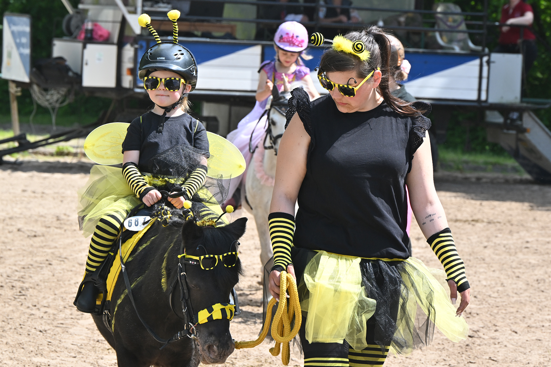 Am heutigen Donnerstag, 9. Mai 2024, standen die jüngsten Reiter im Mittelpunkt. Besonders beim Führzügel-Wettbewerb, der in diesem Fall sogar mit Kostüm stattfand, wurden nicht nur die Reiterleistungen, sondern auch die Kostüme von Reiter und Führungsperson bewertet.