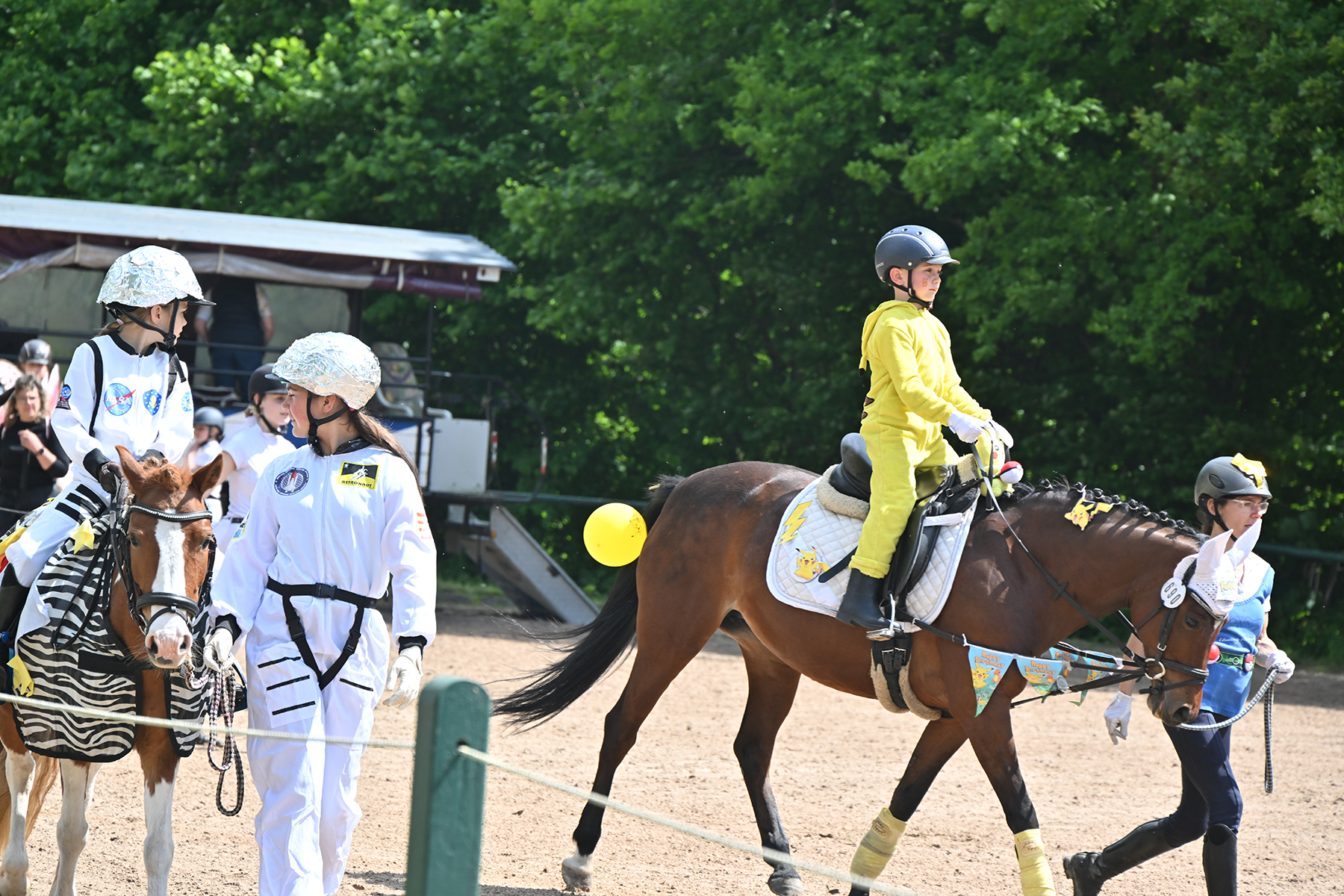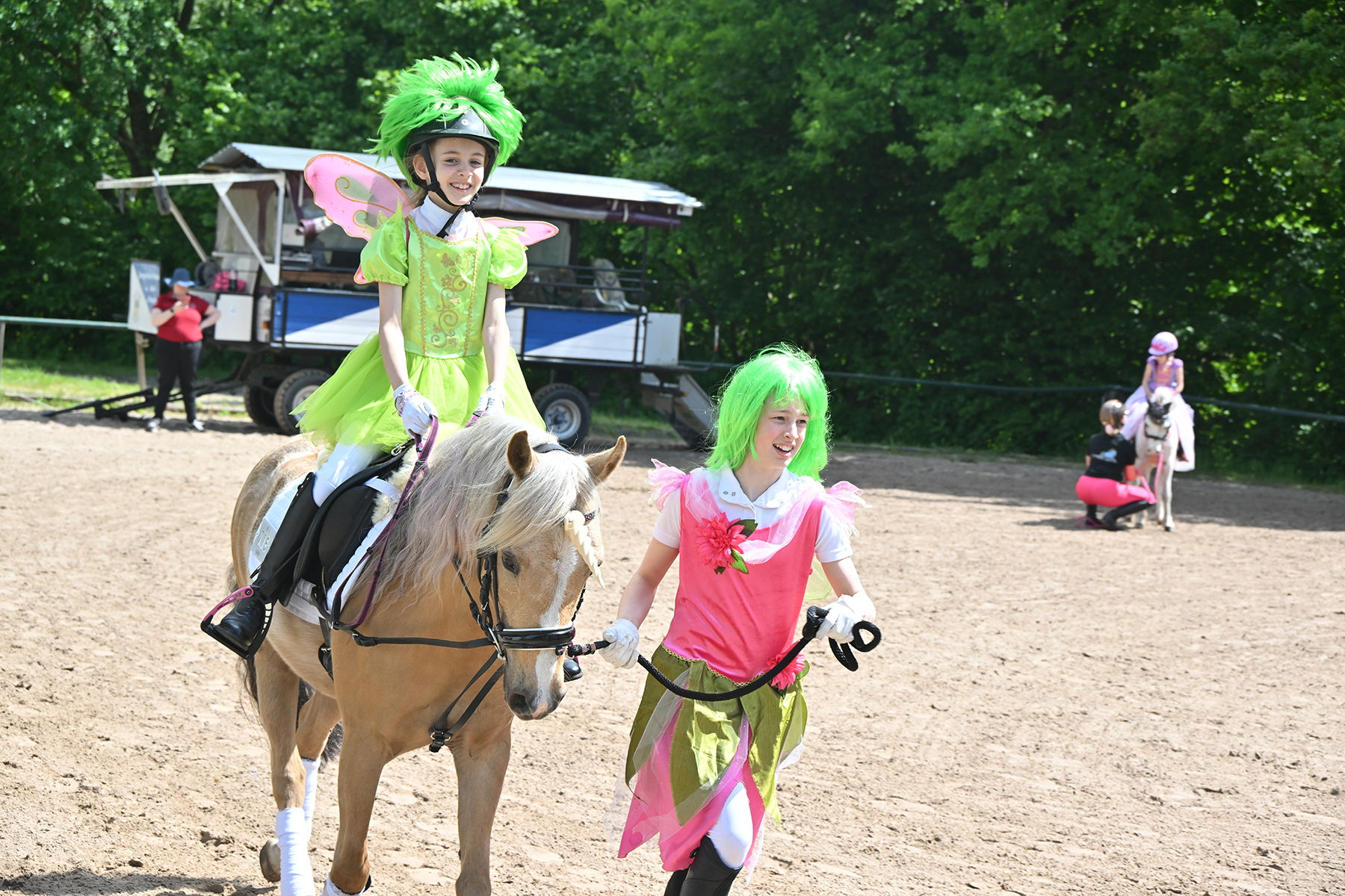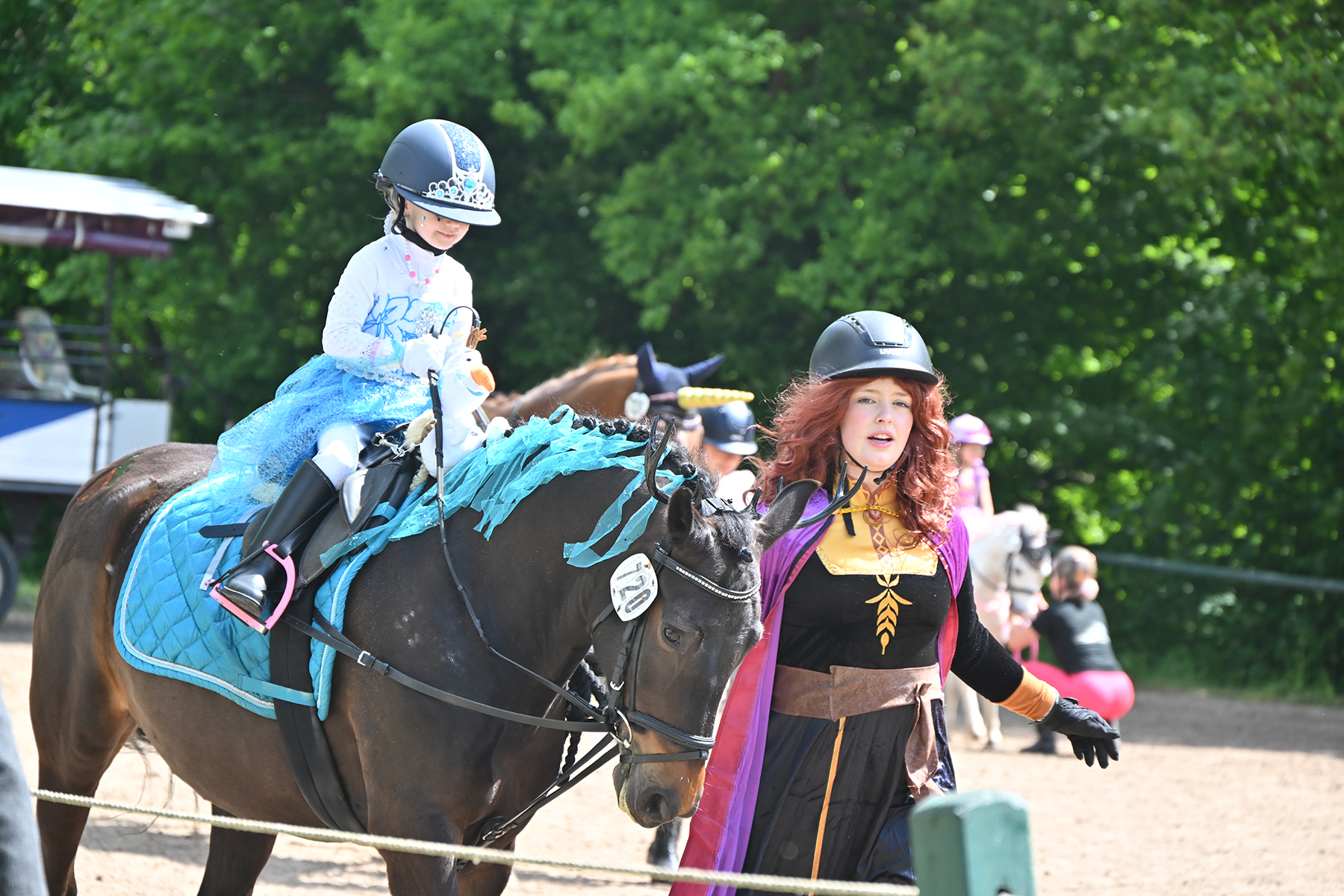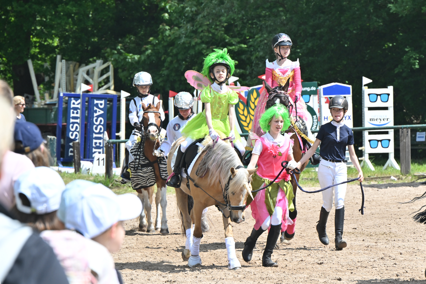 Am heutigen Donnerstag, 9. Mai 2024, standen die jüngsten Reiter im Mittelpunkt. Besonders beim Führzügel-Wettbewerb, der in diesem Fall sogar mit Kostüm stattfand, wurden nicht nur die Reiterleistungen, sondern auch die Kostüme von Reiter und Führungsperson bewertet.