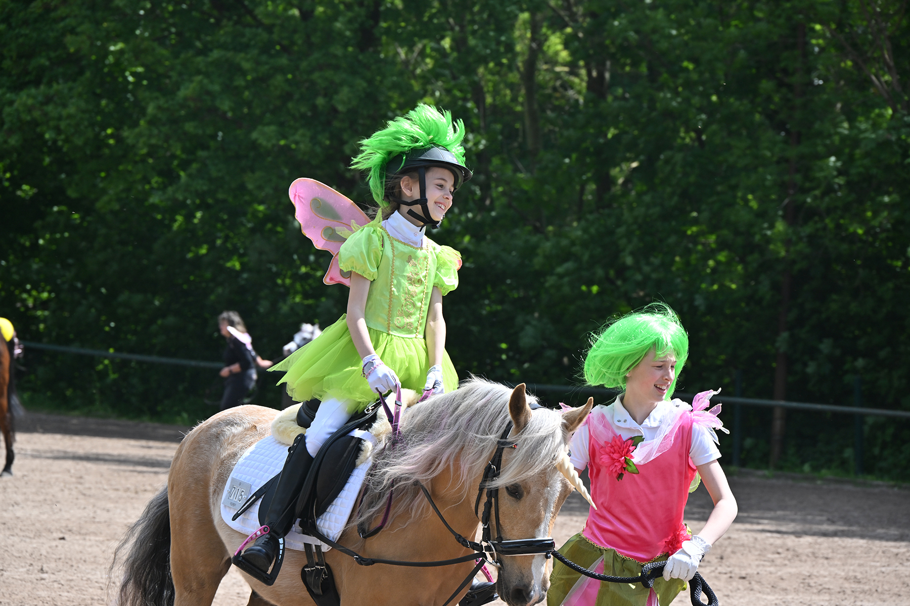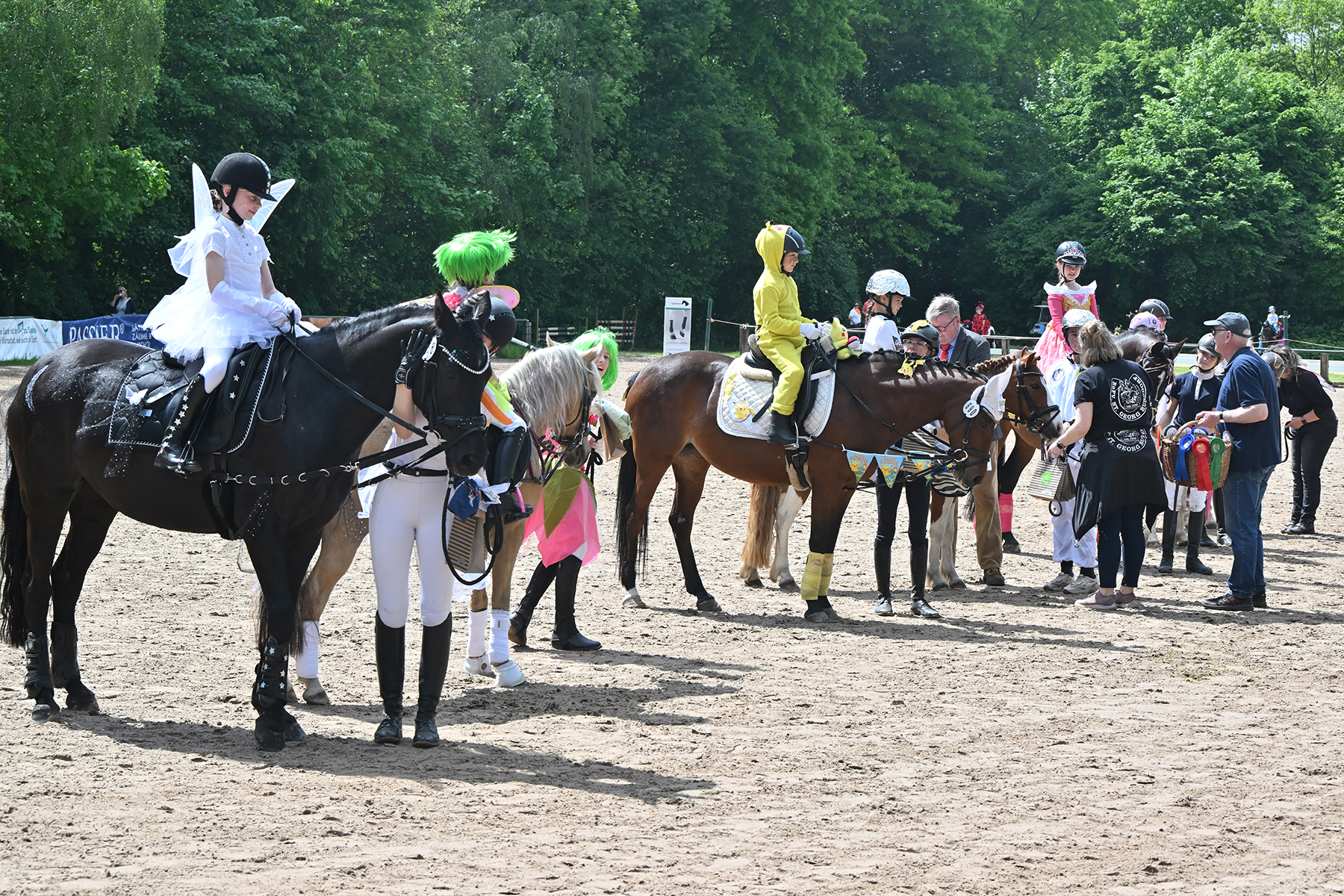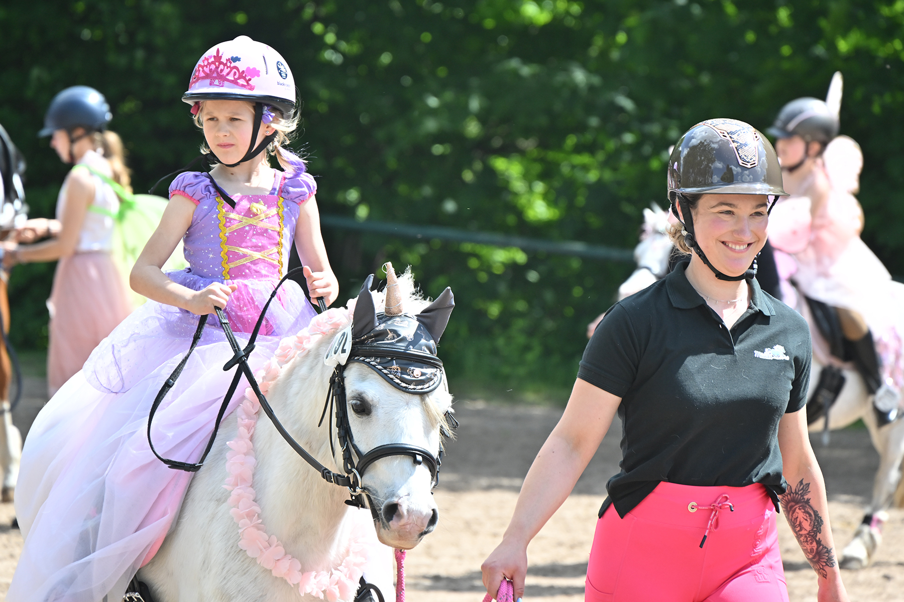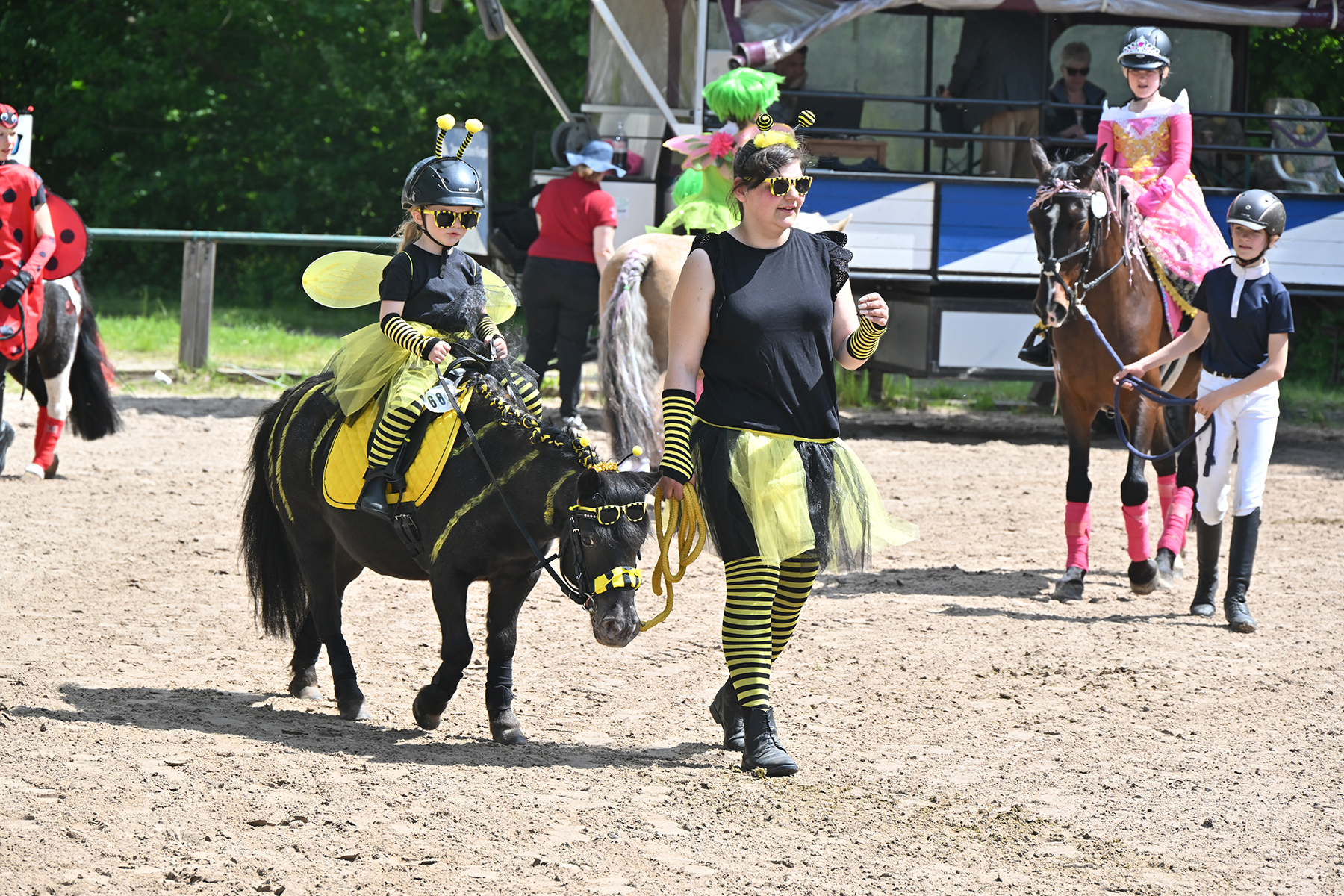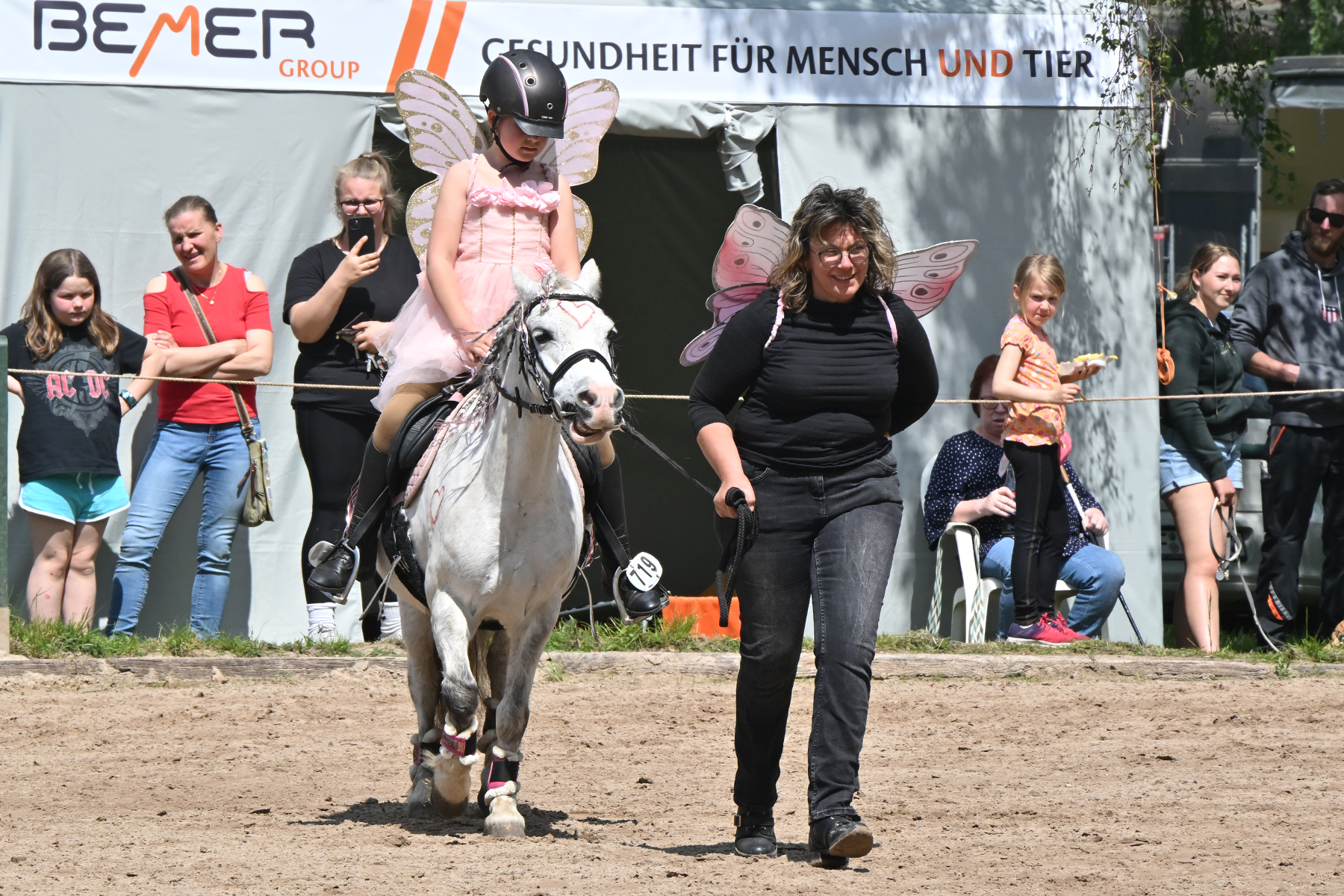 Am heutigen Donnerstag, 9. Mai 2024, standen die jüngsten Reiter im Mittelpunkt. Besonders beim Führzügel-Wettbewerb, der in diesem Fall sogar mit Kostüm stattfand, wurden nicht nur die Reiterleistungen, sondern auch die Kostüme von Reiter und Führungsperson bewertet.
