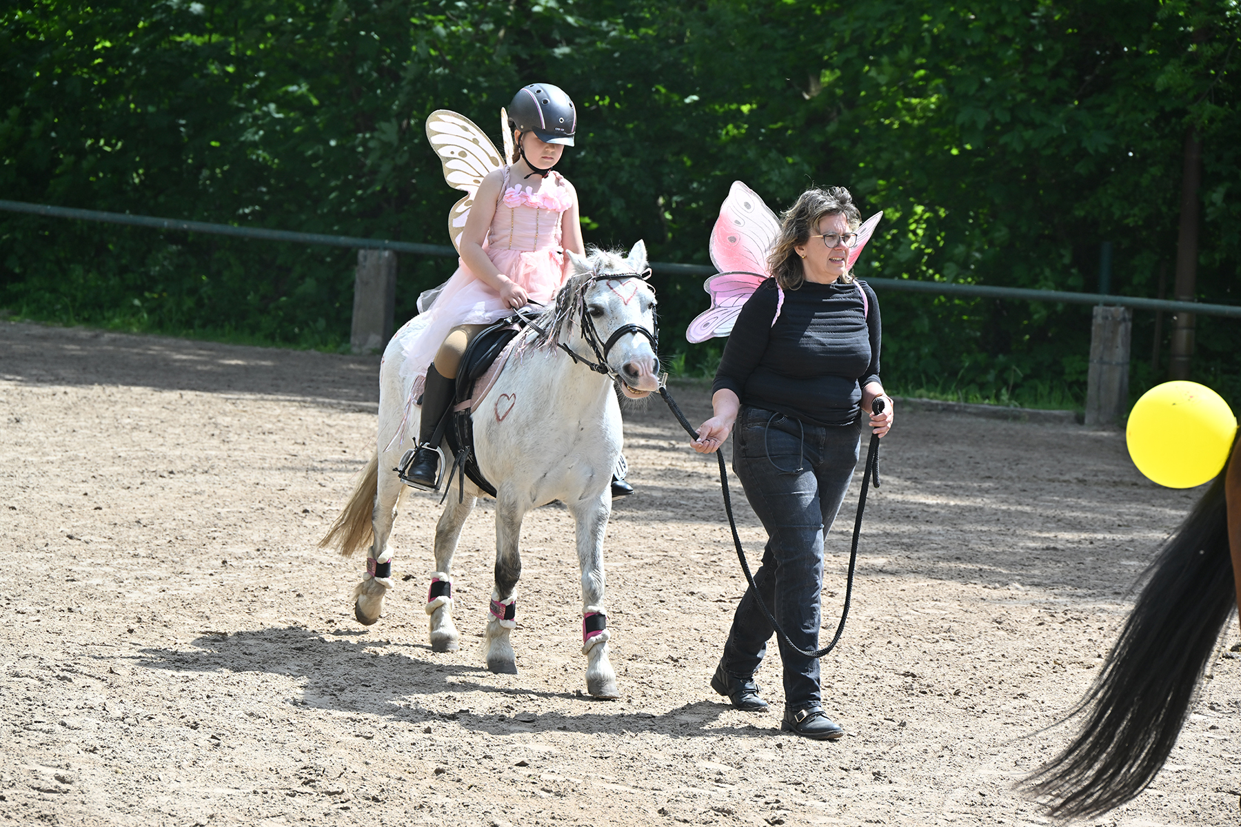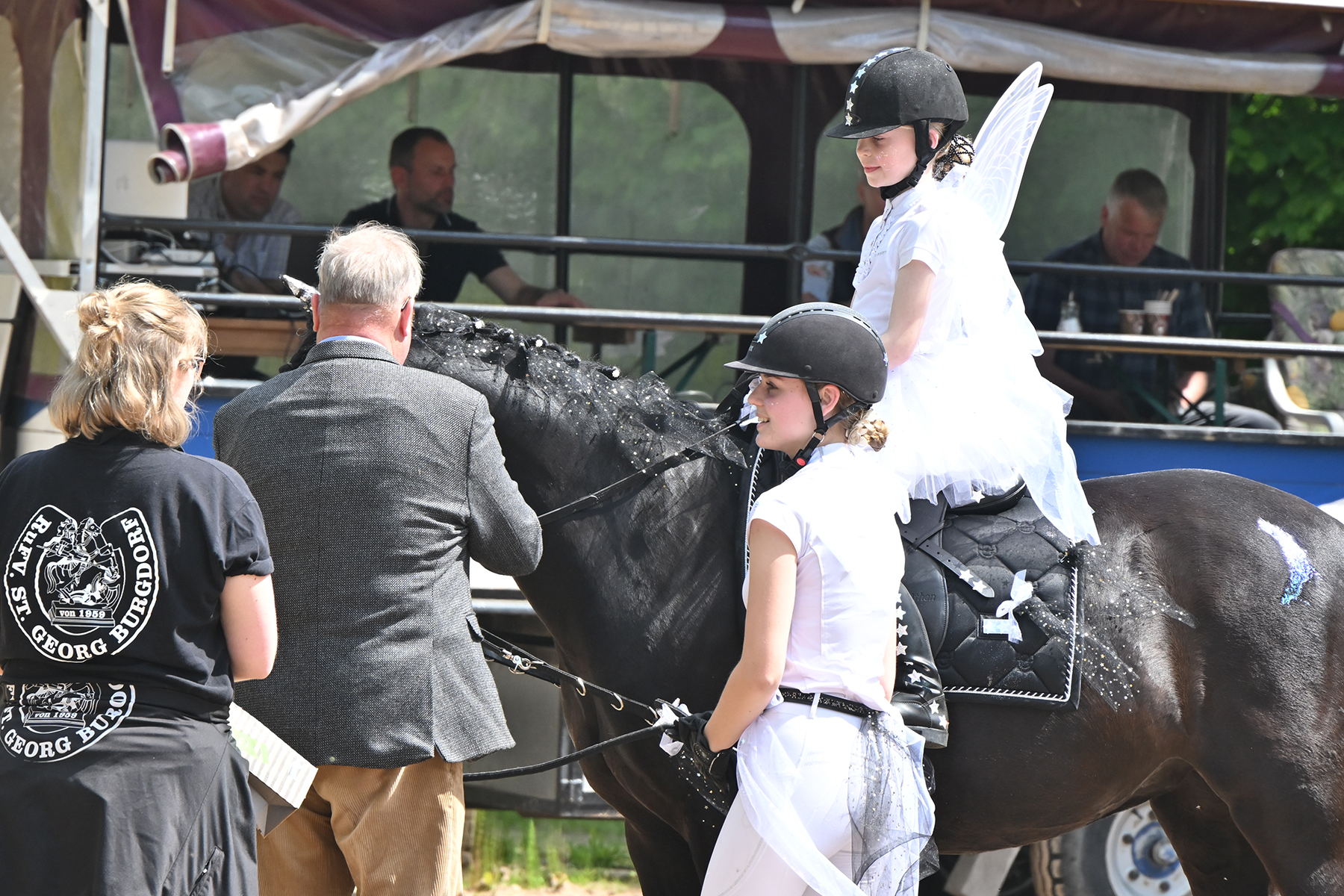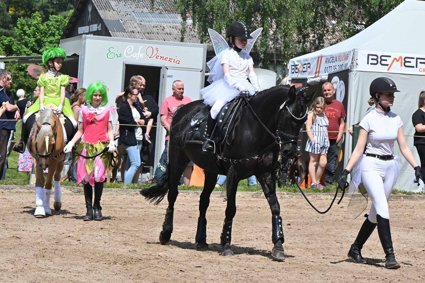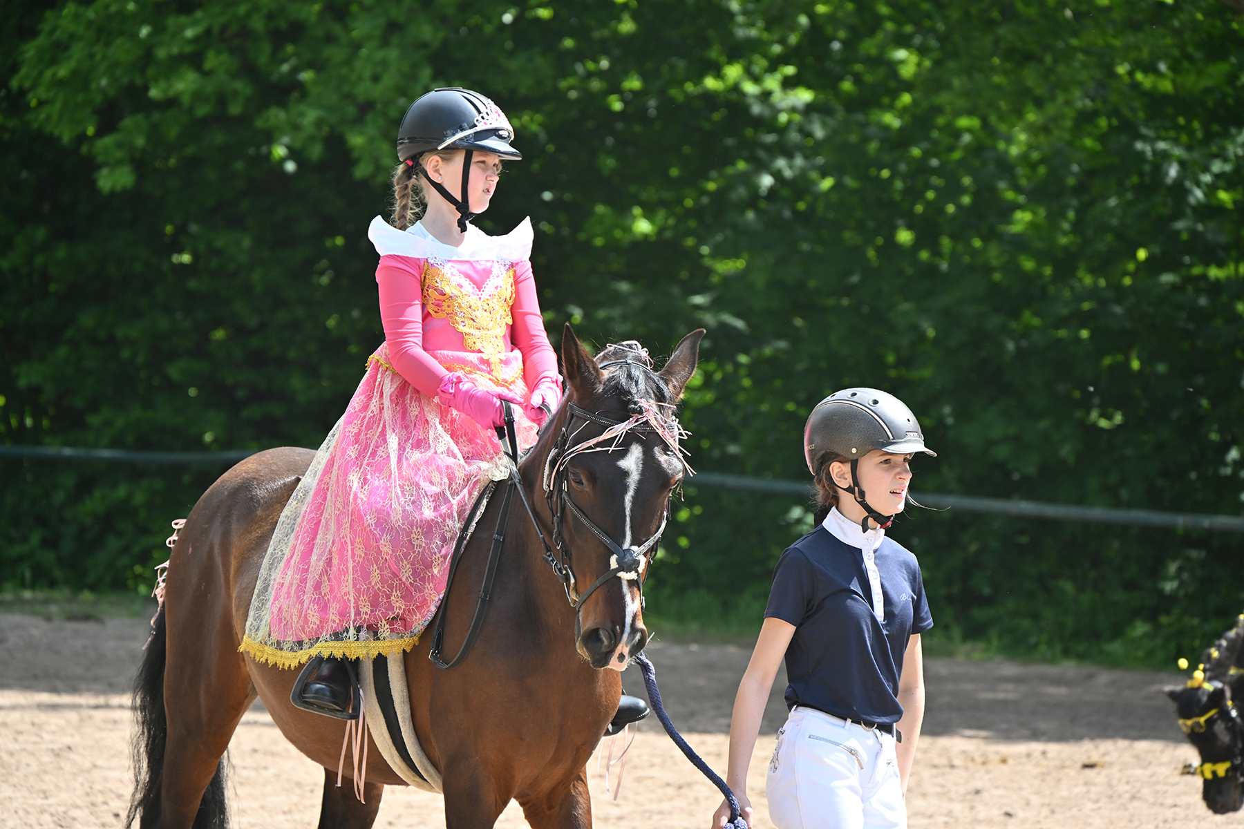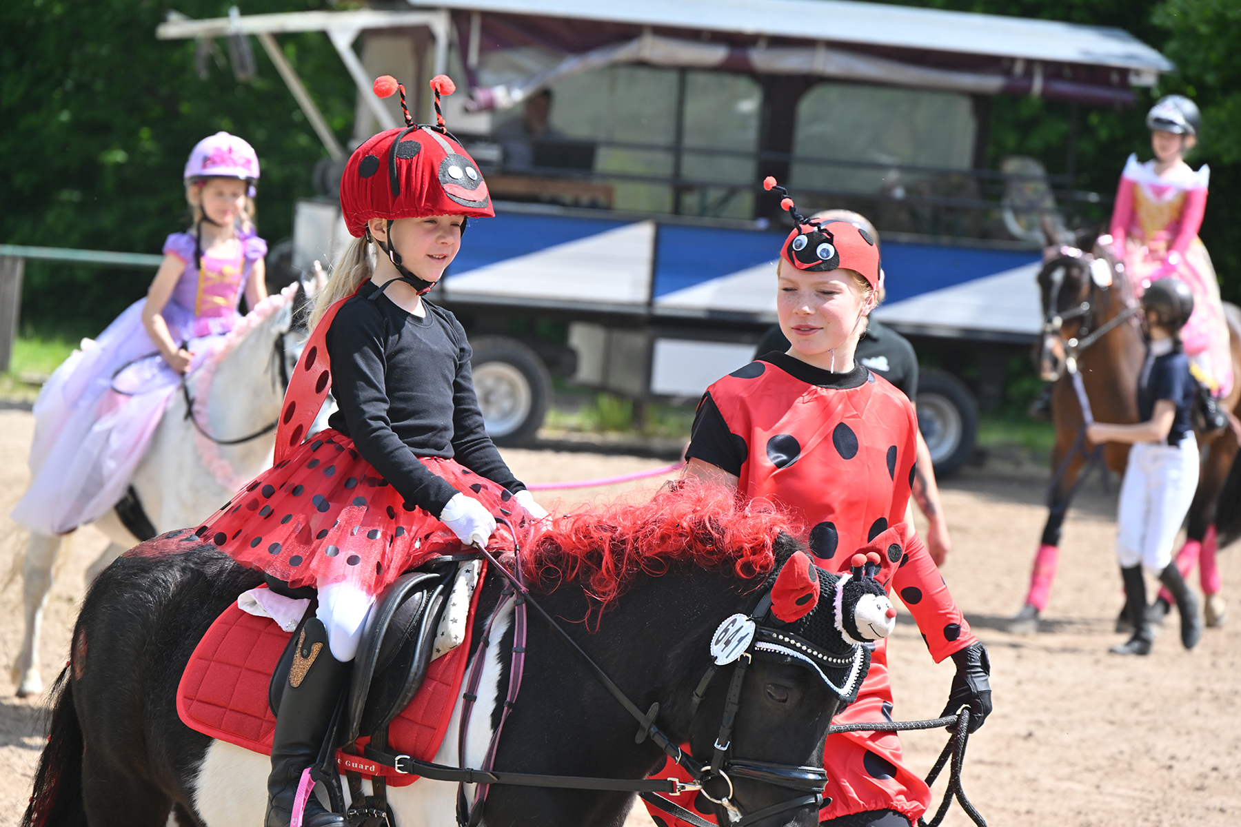 Am heutigen Donnerstag, 9. Mai 2024, standen die jüngsten Reiter im Mittelpunkt. Besonders beim Führzügel-Wettbewerb, der in diesem Fall sogar mit Kostüm stattfand, wurden nicht nur die Reiterleistungen, sondern auch die Kostüme von Reiter und Führungsperson bewertet.