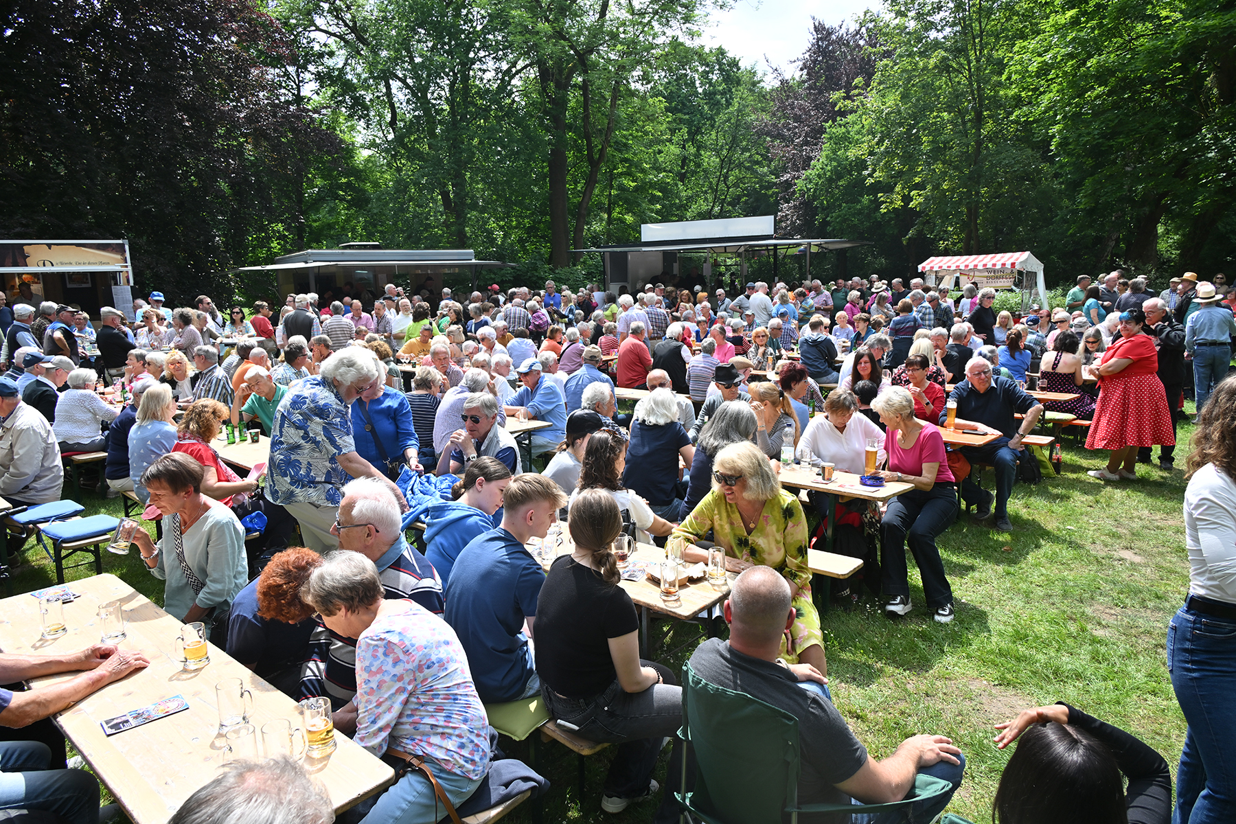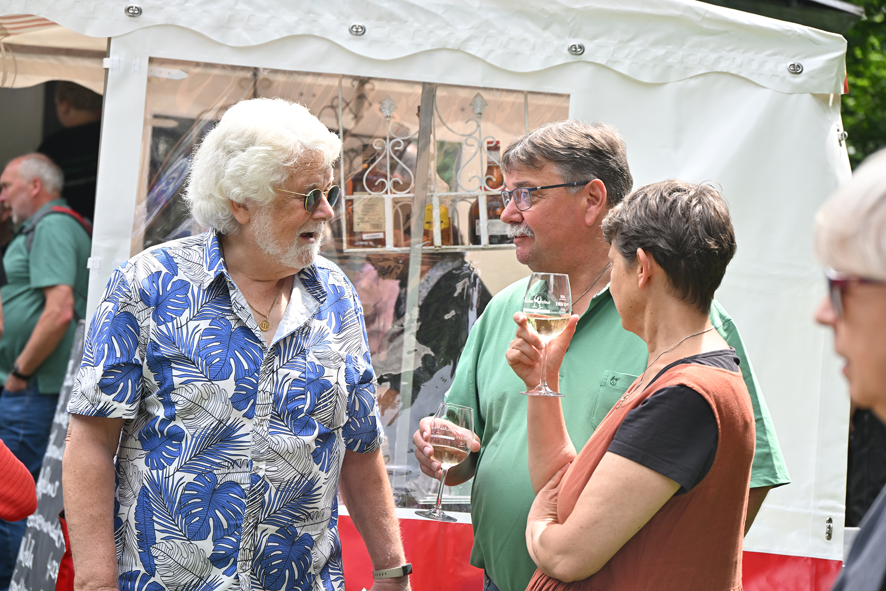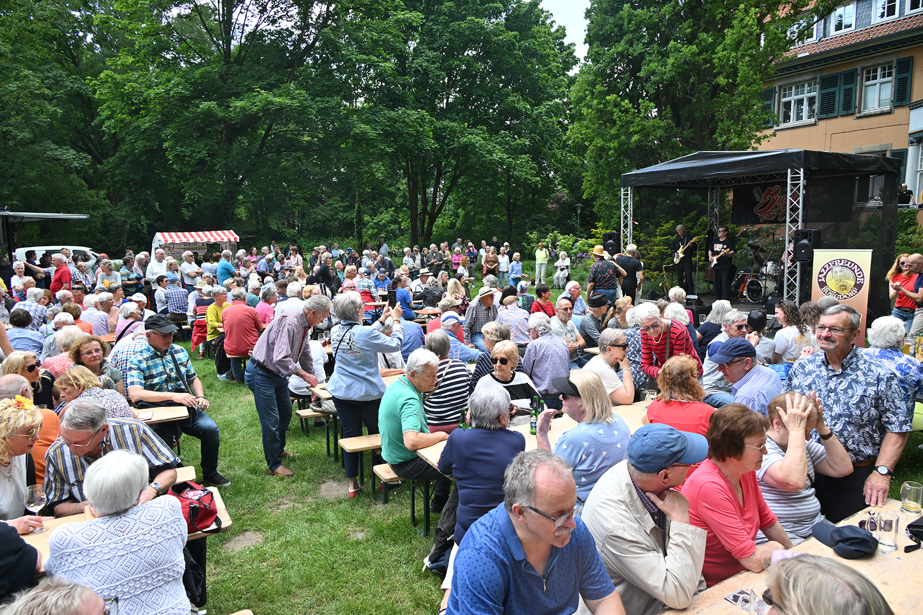 Der 32. Pfingst-Jazzfrühschoppen im Burgdorfer Schlosspark war ein wahres Erlebnis. Bei bestem Wetter für dieses Event füllte sich die Veranstaltungsfläche hinter der alten Landratsvilla bis zur Pause, so dass viele der rund 600 Gäste stehen mussten. Sogar auf den Flächen außerhalb des offiziellen Platzes standen die Fans. Viele waren von weit angereist und zum ersten Mal da. Sie zeigten ihre Begeisterung. Vor den Imbiss- und Getränke-Ständen bildeten sich lange Schlangen. Die Crépes von Sebastian Manstein gingen weg wie "warme Semmel". Für Genießer hatte Dipl.-Weinbetriebswirt Martin Müsken wieder gepflegte Tropfen zu bieten.