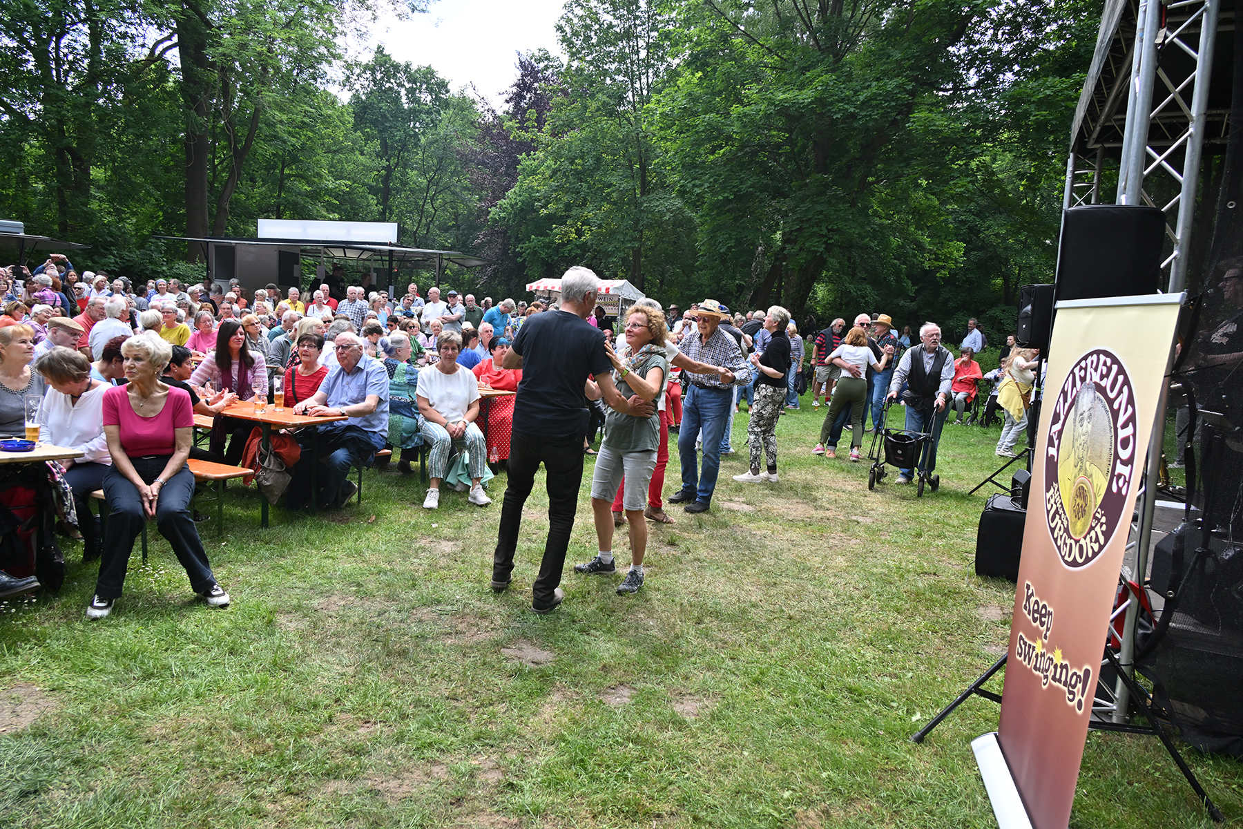 Der Rasen vor und neben der Bühne wurde voll genutzt – zum Tanzen. Sofort füllte sich der "Dancefloor" und blieb bis zum Ausklingen der Zugaben voll. Mädels mit Petticoat, der MemphisClub Hannover Celle, junge und alte Rock´n´Roll Fans – da wurde selbst das älteste Herz wieder jung.