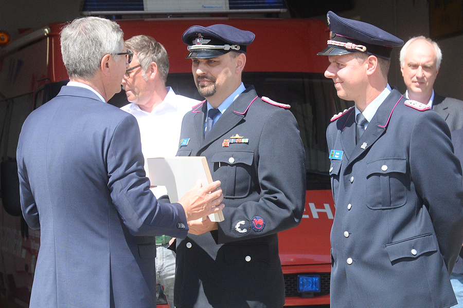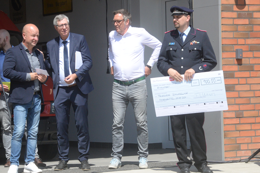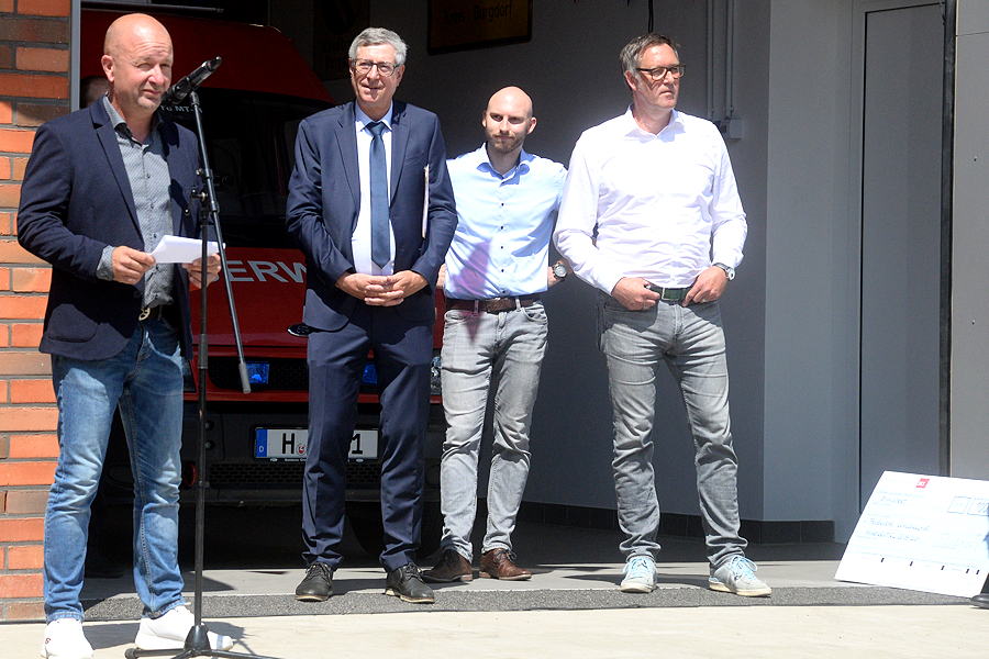Nach Bürgermeister Armin Pollehn ergriffen Ortsbürgermeister Cord Reißer, Thomas Schultz vom Architektenbüro Die Planschmiede sowie Ortsbrandmeister Timo Scheffler das Wort. Scheffler betonte, "dass die Zusammenarbeit aller Beteiligten gut funktioniert hat. Im zurückliegenden halben Jahr war ich jeden Tag hier auf der Baustelle. Jetzt wollen wir das Haus mit Leben füllen."