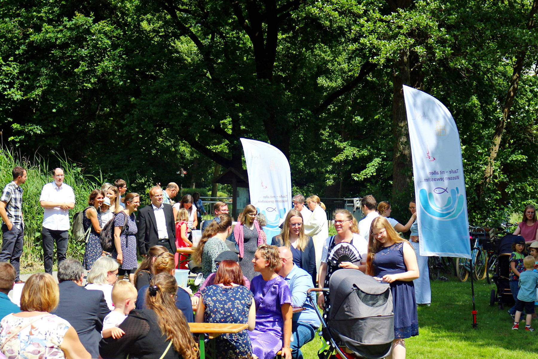 Das erste Aue-Tauffest der Burgdorfer Kirchengemeinden St. Pankratius, St. Paulus sowie der Martin-Luther-Gemeinde Ehlershausen/Ramlingen/Otze im April 2023 war so gut angenommen worden, sodass folgerichtig eine zweite Auflage im Stadtpark organisiert werden musste. Für die musikalische Umrahmung sorgte erneut der Posaunenchor unter der Leitung von Kreiskantor Martin Burzeya-Wille.