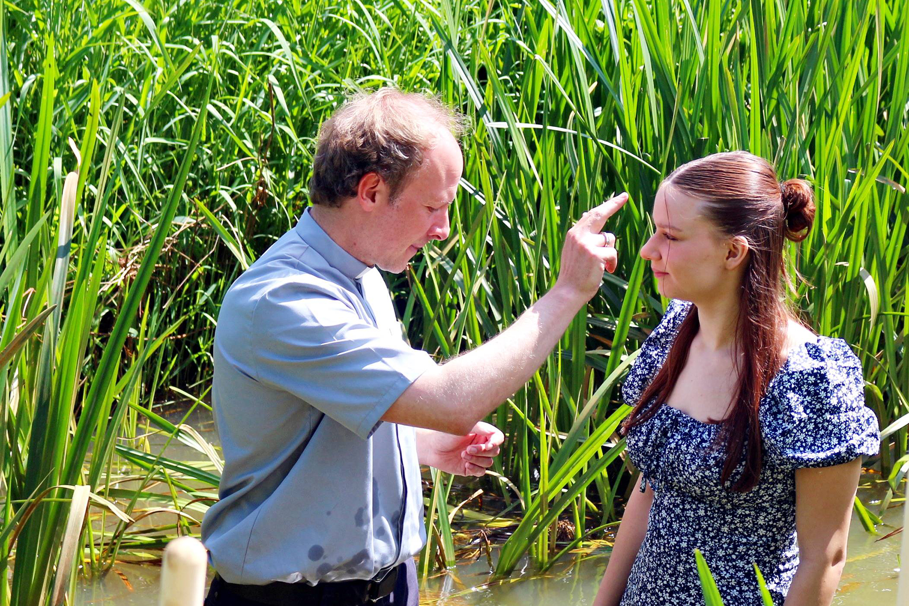 Die Burgdorferin Sara Leuschner (16 Jahre) gehörte zu den rund zehn Personen, die sich ad hoc zur eigenen Taufe entschieden hatte. Mit ihr wurde der Ritus im kalten knietiefen Wasser des Flüßchens von Valentin Winnen vollzogen.