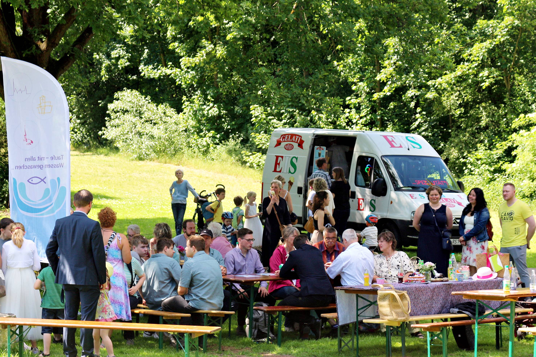 Für das christliche Sakrament der Namensgebung unter freiem Himmel am gestrigen Sonntag, 26. Mai 2024, hatten sich 17 Tauffamilien im Voraus angekündigt. Aber es bestand auch die Möglichkeit, sich selbst und/oder sein Kind ohne vorherige Anmeldung spontan mit Auewasser taufen zu lassen.