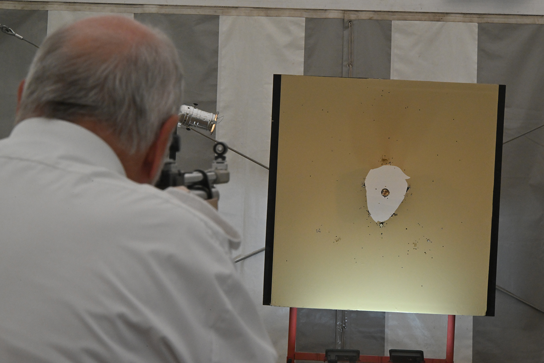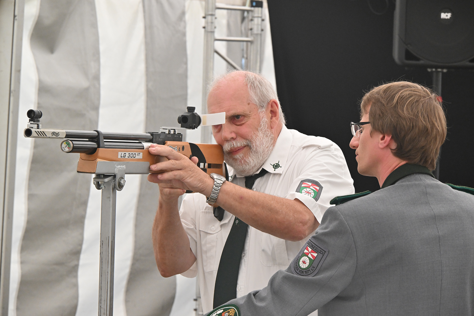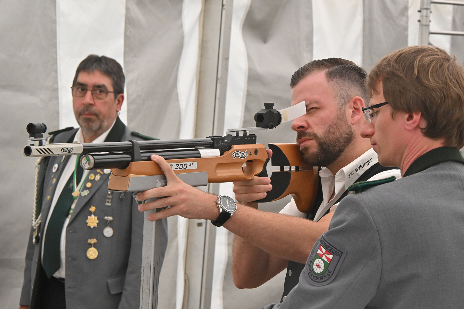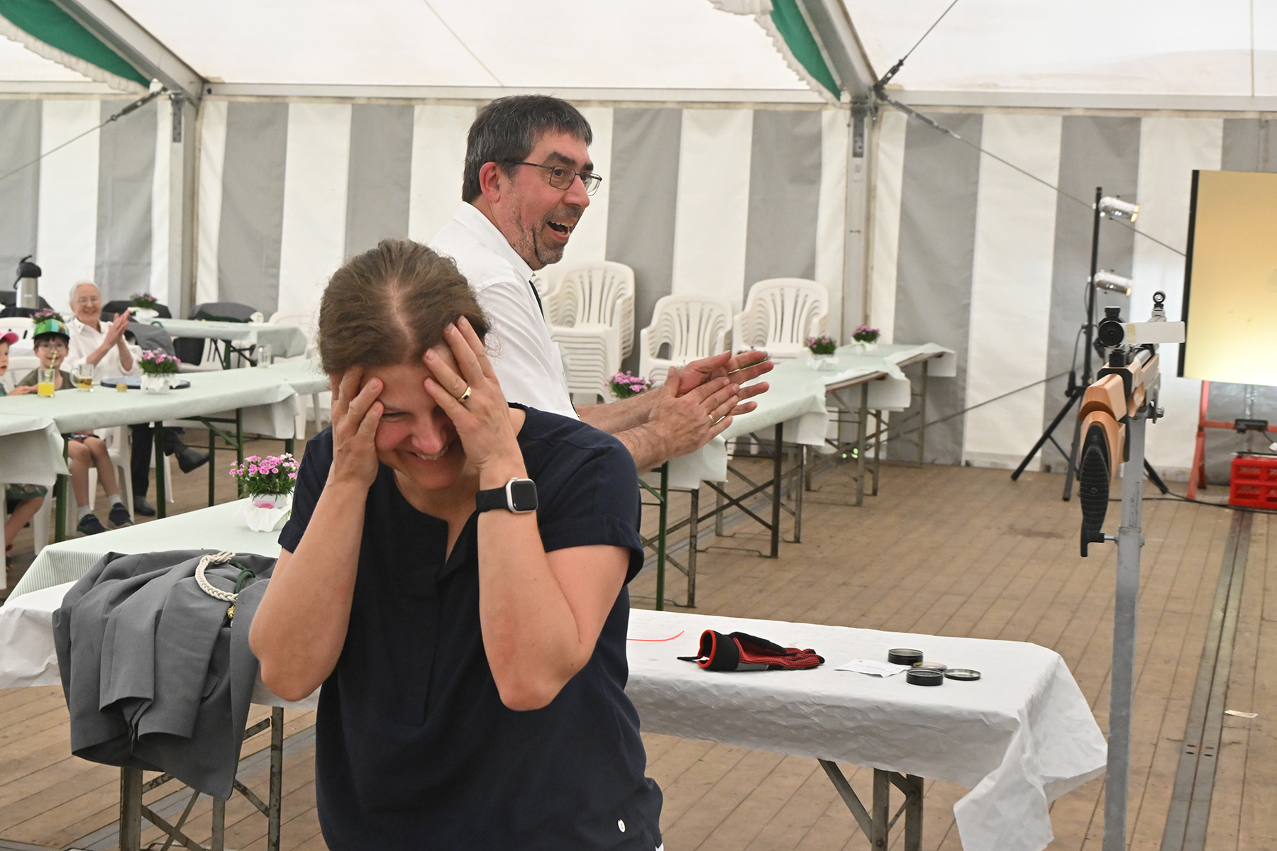 Kurzweilig ging es im weiteren Verlauf zu, denn der Kopf war bereits nach 14 Schüssen vom Rumpf geschossen. Der 2. Vorsitzende Kai Wollenschläger gab jeweils an, auf welches Teil als Nächstes geschossen wird.