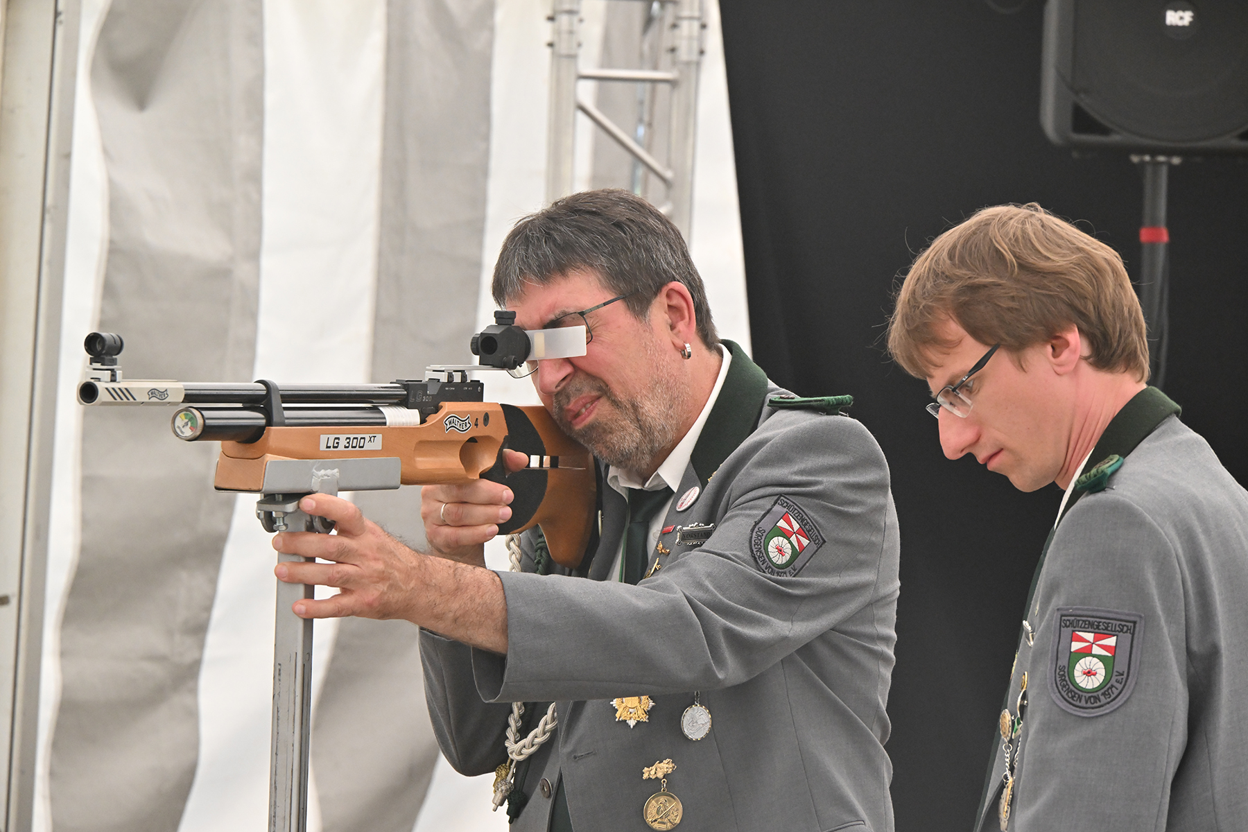 Früh hatten jeweils ein Einwohner und ein Schütze ein Teil des Adlers abgeschossen, so dass für beide Parteien vorläufige Titelträger feststanden.
