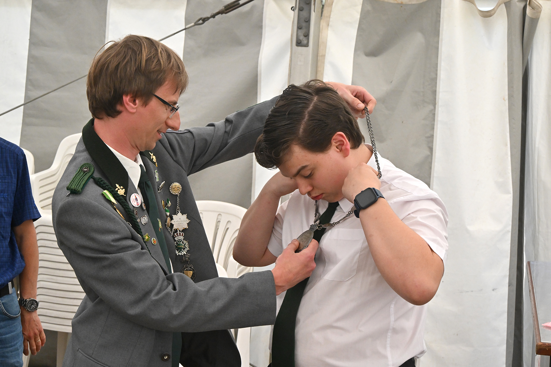 Erstmals hat der Verein auch wieder einen Jugendkönig: Die Königskette wurde Leonidas Albert feierlich überreicht.