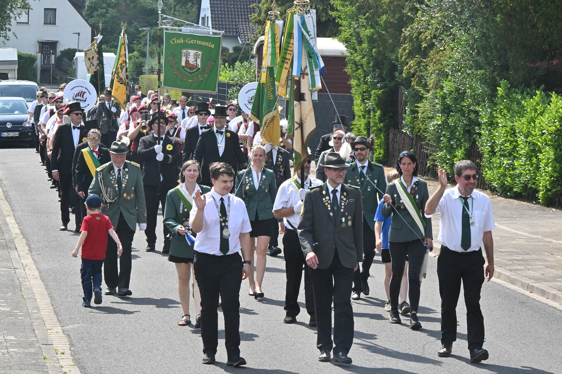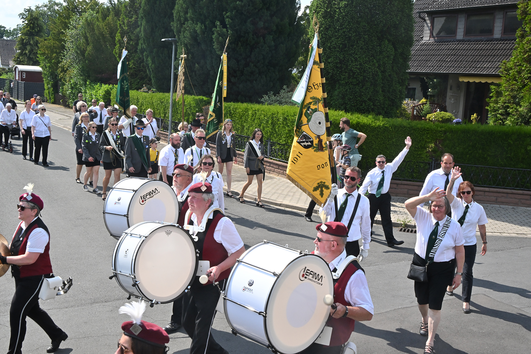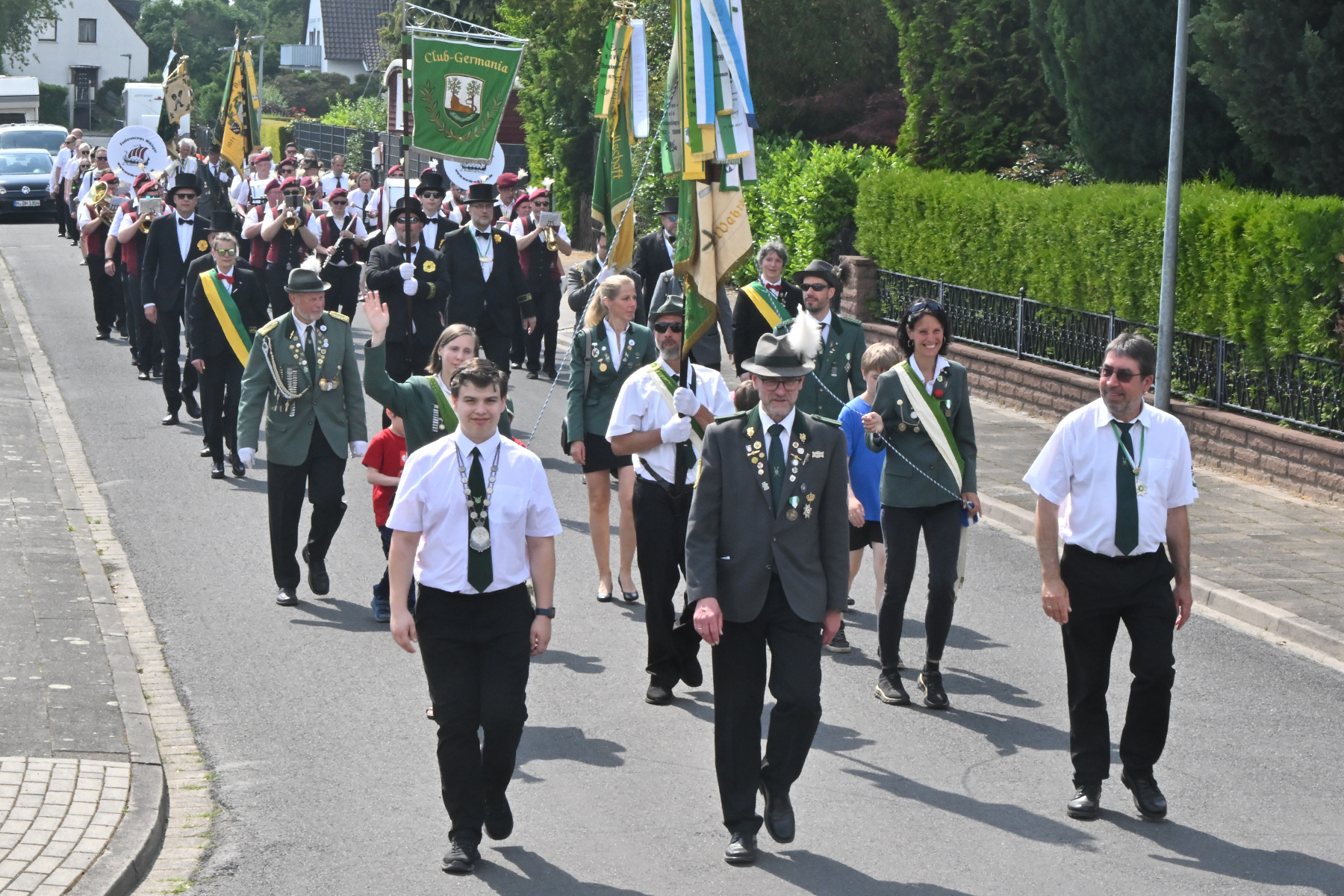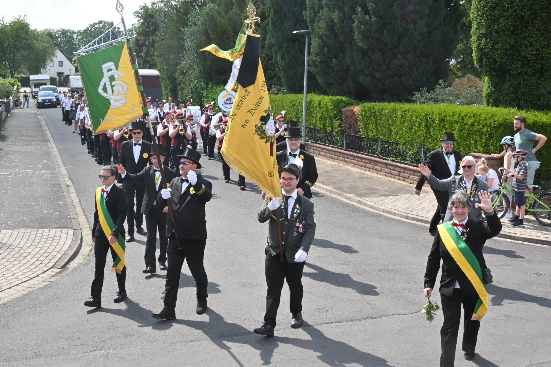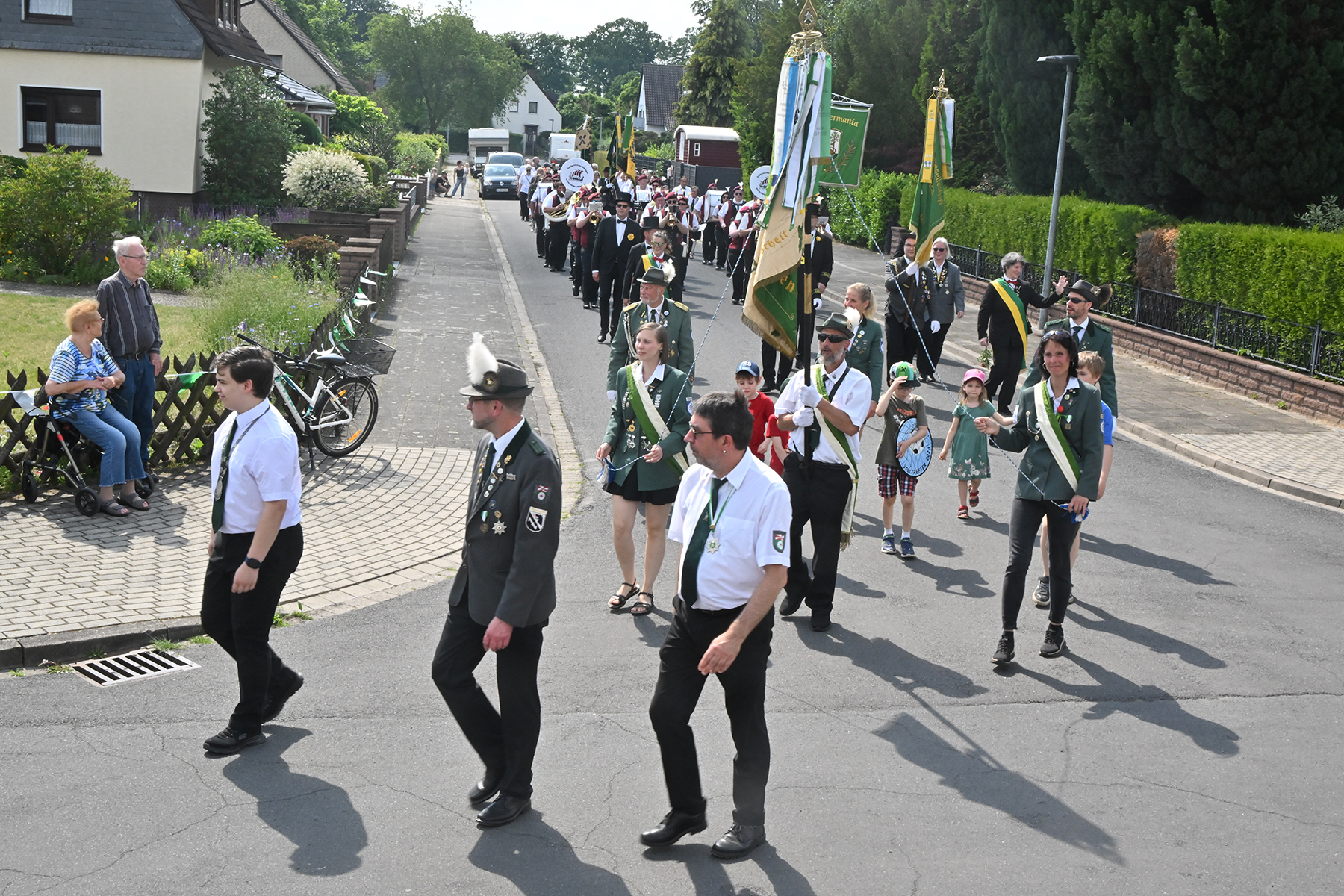 Zuvor hieß es aber, die Königsscheibe zu überbringen: Unter der musikalischen Begleitung des Fanfarencorps "Wikinger" Burgdorf und Absicherung durch die Ortsfeuerwehr Dachtmissen marschierten die Sorgenser Schützen, begleitet von Abordnungen der Schützenvereine aus Burgdorf, Hülptingsen, Otze und Schillerslage, zur neuen Königin wie auch zur Dorfkönigin, ehe es wieder zum Schützenplatz neben der Schützenkate ging.