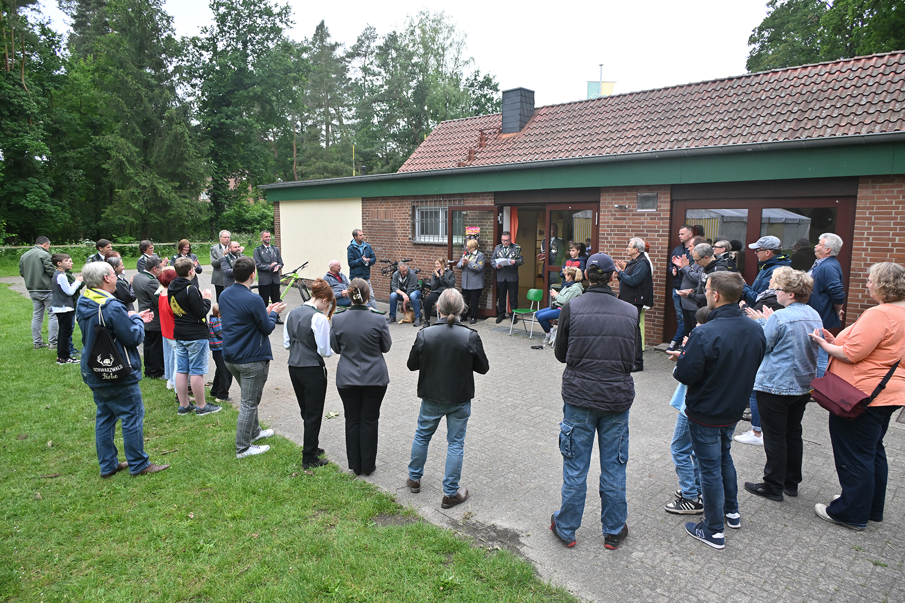 Den Weg zum Aufhängen der Scheibe beim Volkskönig kennen die Otzer Schützen bereits gut, denn im vergangenen Jahr wurde hier bereits eine Königsscheibe aufgehängt. Mit einem Teiler von 5,6 setzte sich Martin Bartels durch, dessen Sohn Ole im Vorjahr die Jugendscheibe gewann.