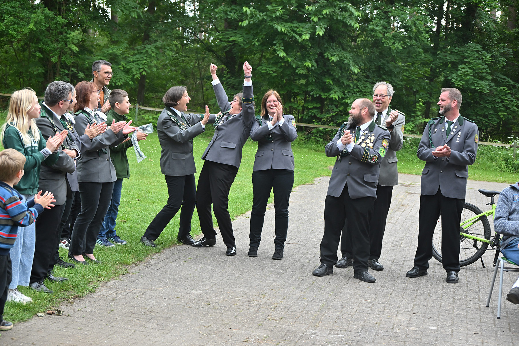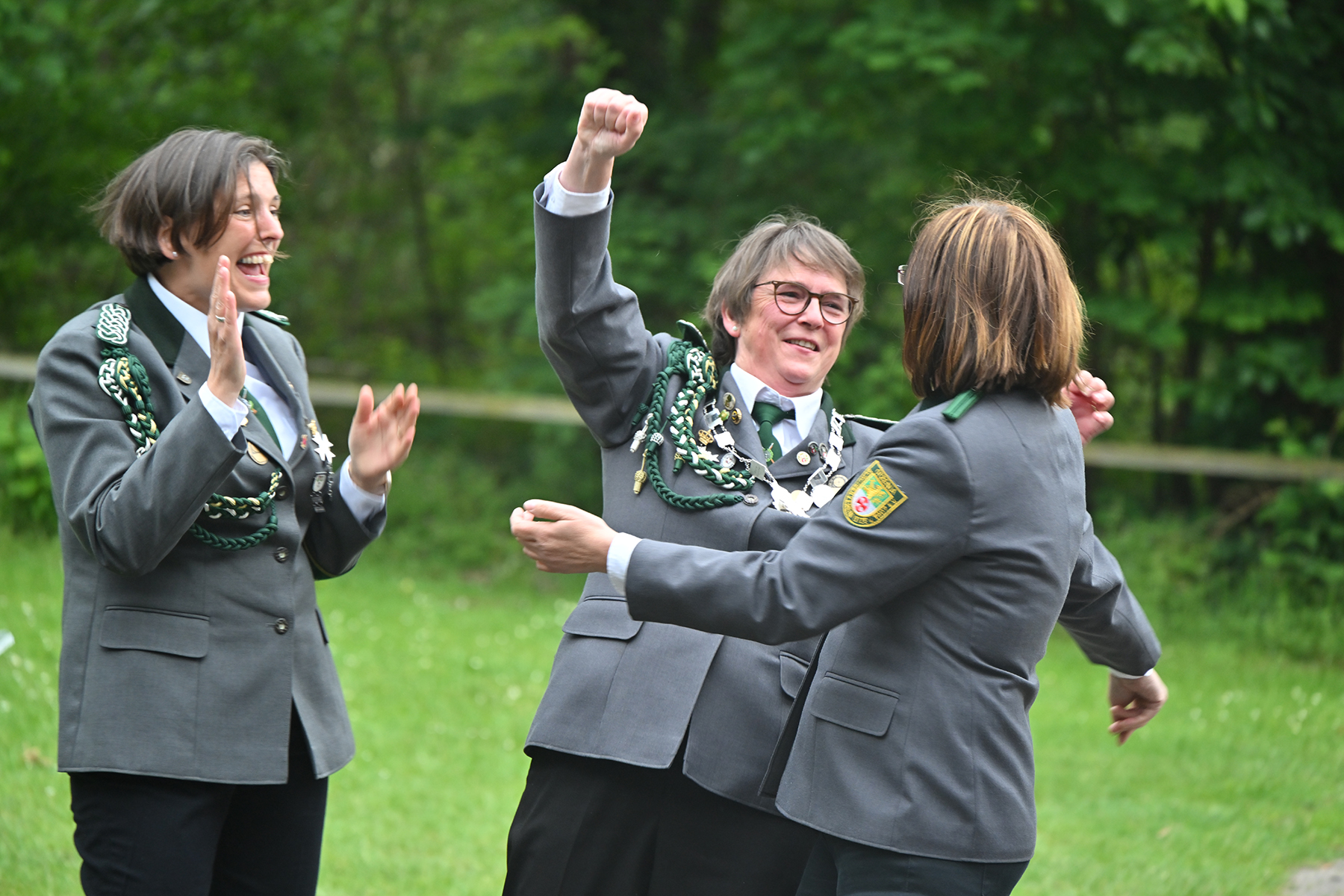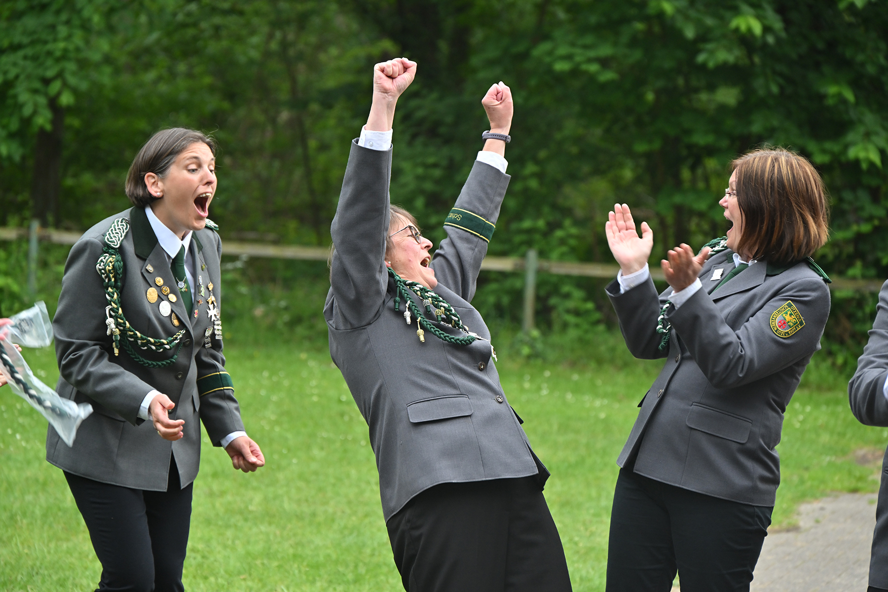 Nicht wenig großer Jubel brach bei der Bekanntgabe der Damenkönigin aus: Sonja Prieß holt mit einem 48,8-Teiler die begehrte Scheibe in die Otzer "Königsallee", die nun am kommenden Schützenfestwochenende um eine Scheibe reicher werden wird. Auf die Plätze 2 und 3 kamen Kim Heuer (56,9 Teiler) und Doris Vollbrecht (69,3 Teiler).