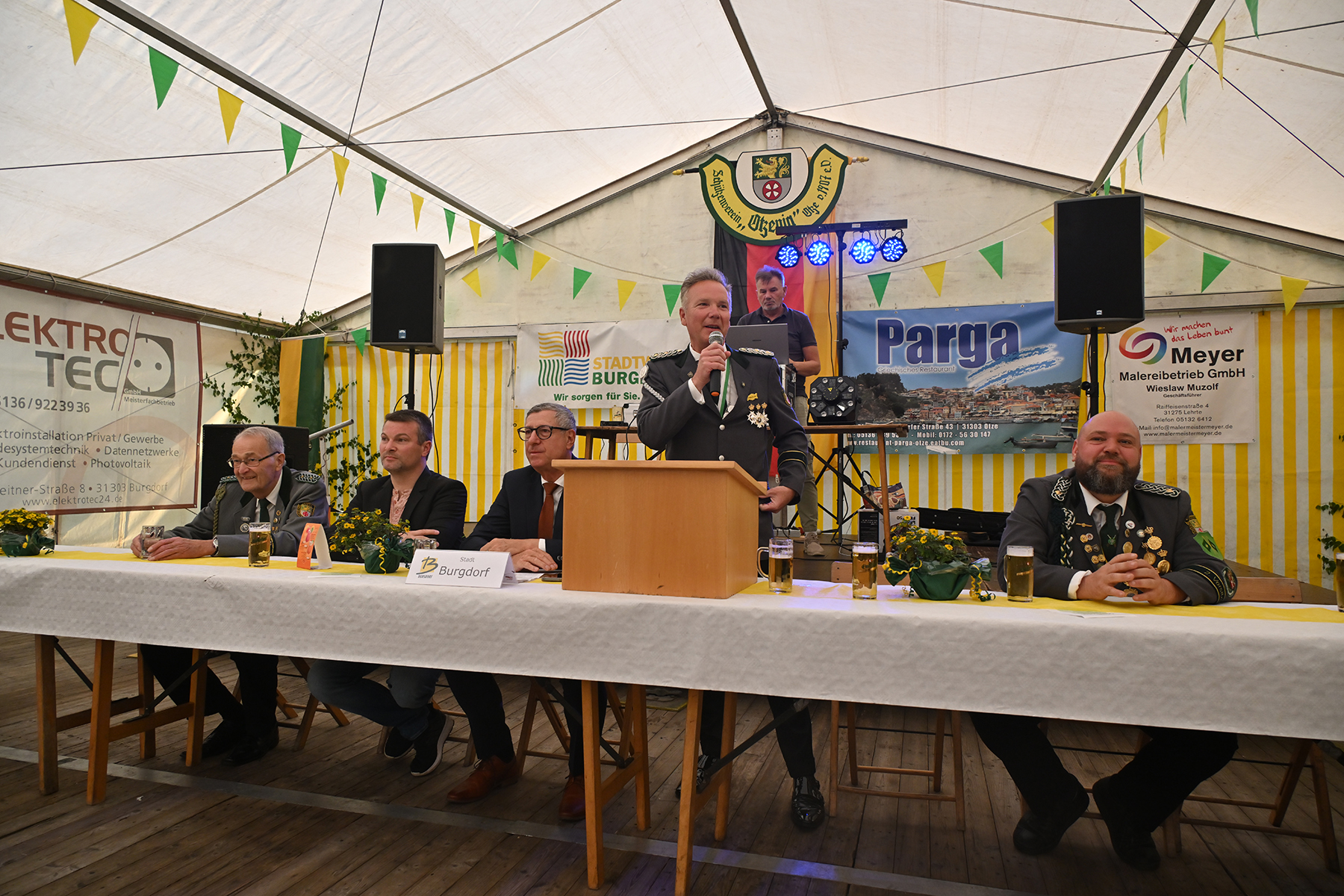 "Danke, dass ihr wieder ein Schützenfest und die dazugehörigen Wettbewerbe durchzuführen", betonte auch Burgdorfs Bürgermeister Armin Pollehn in seinen Grußworten, der hinzufügte: "Es freut mich sehr, so viele Gäste hier zu haben". Die Schützen leisten hierdurch einen "hohen Beitrag für die Gesellschaft und die Gemeinschaft". "Es ist wunderschön, die volle Hütte zu sehen", unterstrich auch Ortsbürgermeister Andreas Meyer.