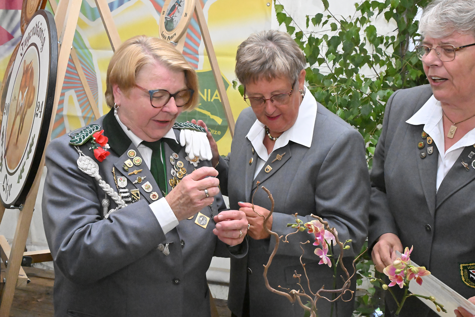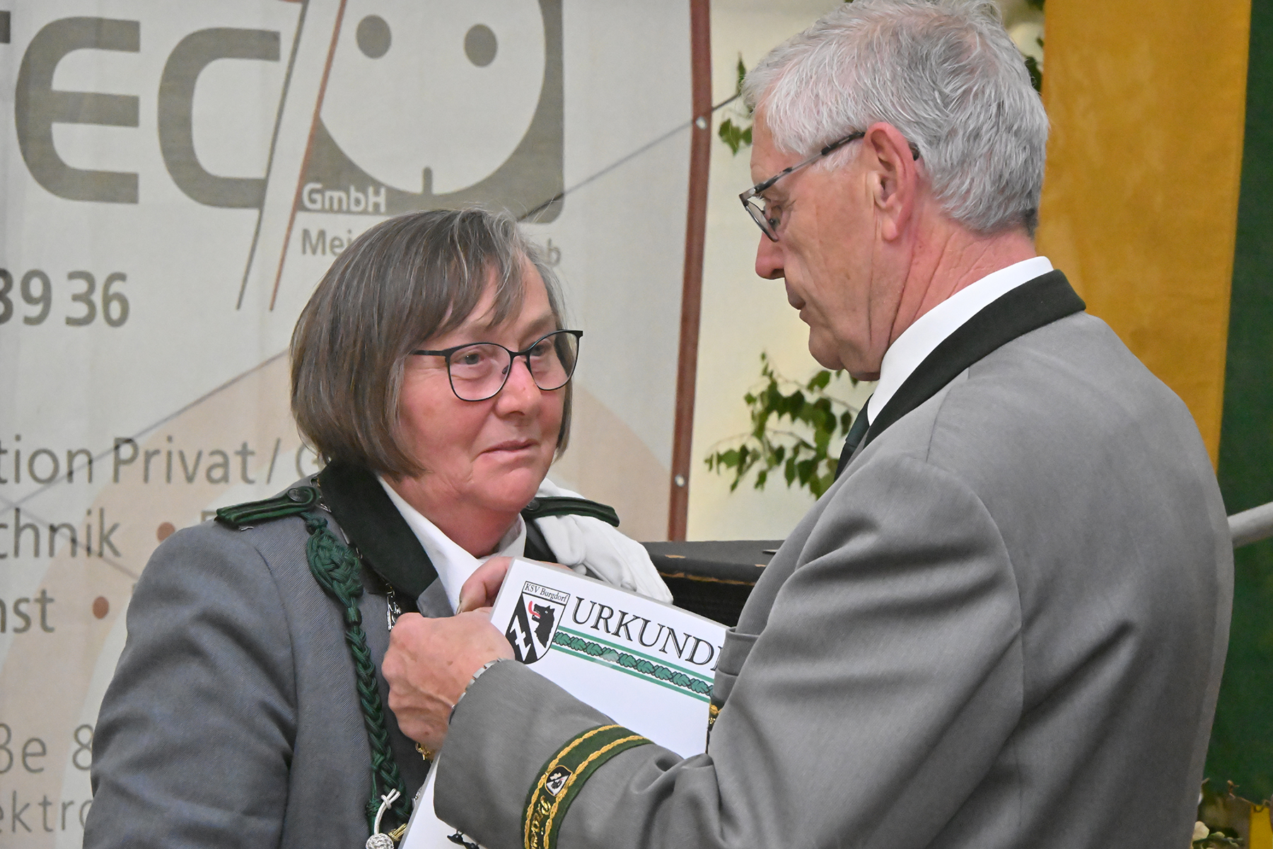 Ehe es an die Bekanntgabe der Sieger der sportlichen Wettbewerbe ging, wurden im Rahmen des Kommers noch verdiente Mitglieder ausgezeichnet. Insbesondere erhielt Doris Günther einen tobenden Applaus, als sie mit der höchsten Ehrung des KSV ausgezeichnet wurde. "Doris Günther bekommt die Ehrennadel in Gold des KSV in Sonderstufe: Die Goldene Ehrennadel mit Eichenkranz", erklärte Werner Bösche. Doris Günther war 36 Jahre Damenleiterin des Schützenvereins Otzenia Otze und zudem 18 Jahre Schießsportleiterin. Sie hatte zuvor bereits die damals höchste Ehrung des KSV erhalten und erhielt am gestrigen Freitag aus den Händen der Kreisdamenleiterin Birgit Winter für ihr besonderes Engagement im Schützenwesen mit der Damenbrosche auch die höchste Auszeichnung des Niedersächsischen Sportschützenverbandes (NSSV). Ebenfalls für besonderes Engagement erhielt Karin Buchholz die Bronzene Ehrennadel des KSV.