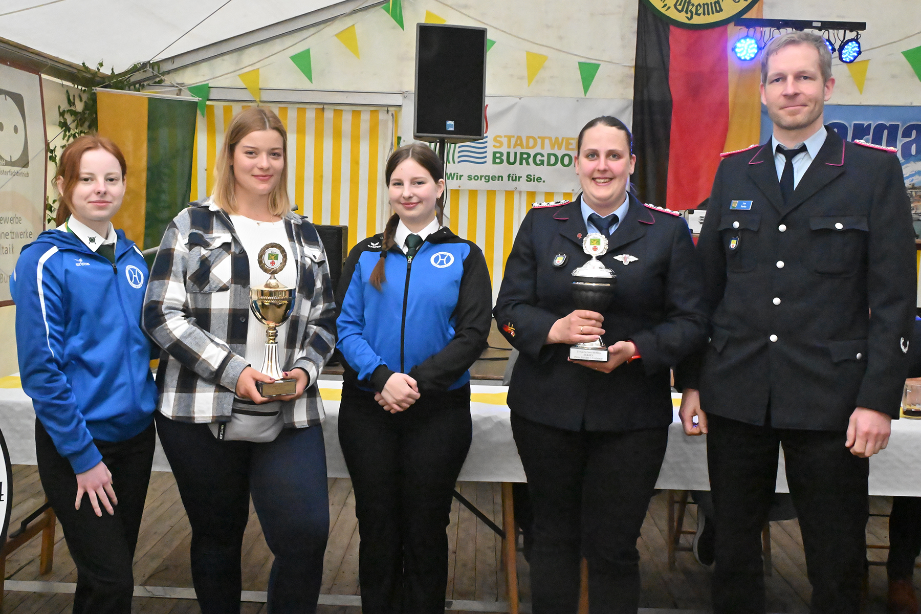 Nicht nur die Schützen zeigten sich bei den Wettbewerben im Vorfeld des Volks- und Schützenfestes treffsicher, sondern auch die Feuerwehr, die allein "mit fünf oder sechs Mannschaften angetreten war", wie Schießsportleiter Jörg Heuer bekannt gab. Der Dorfpokal bei den Männern ging an das Team Feuerwehr 4 bestehend aus Ivy Schirmer, Anja Kories, Jan Bertke und Bernd Raupers. Bei den Damen setze sich die Blond AG des SV Hertha Otze bestehend aus Kim Heuer, Sinja Stürwald, Sina Heuer und Lea Hograefe durch.