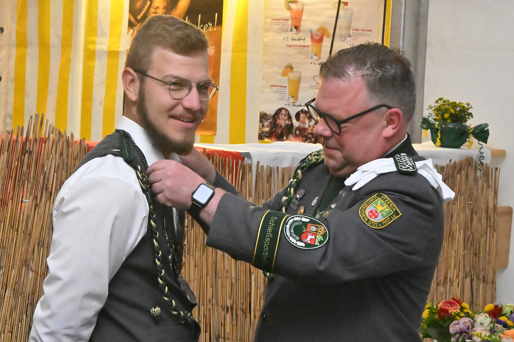 Maik Heuer fasste seine Gefühle in einem Satz zusammen: "Ich finde das richtig fett hier." Nachdem er und das Team des Festausschusses, dem er seinen besonderen Dank aussprach, viel Arbeit in die Vorbereitungen gesteckt hatten, "freue ich mich unglaublich, dass heute hier so viele liebgewonnene Menschen sind", so Maik Heuer. "Ich bin total aus dem Häuschen. Das ist genau das, was mir die Kraft und Energie für die Organisation gibt", betonte der Vorsitzende. Die Schützen von Otzenia versuchen das Fest immer wieder neu zu erfinden. Beim gestrigen Kindernachmittag fuhr daher beispielsweise das Kinderkarussell kostenfrei seine Runden, die Gäste können sich im Bull-Riding versuchen und der Verein bietet eine Schießbudenlotterie an. "Das ist natürlich nicht ohne Sponsoren möglich, denen wir hier ganz besonders danken", so der Vorsitzende. Dank sprach er auch der Ortsfeuerwehr um Ortsbrandmeister Jan Bertke aus, die das Schützenfest über die drei Tage begleiten.