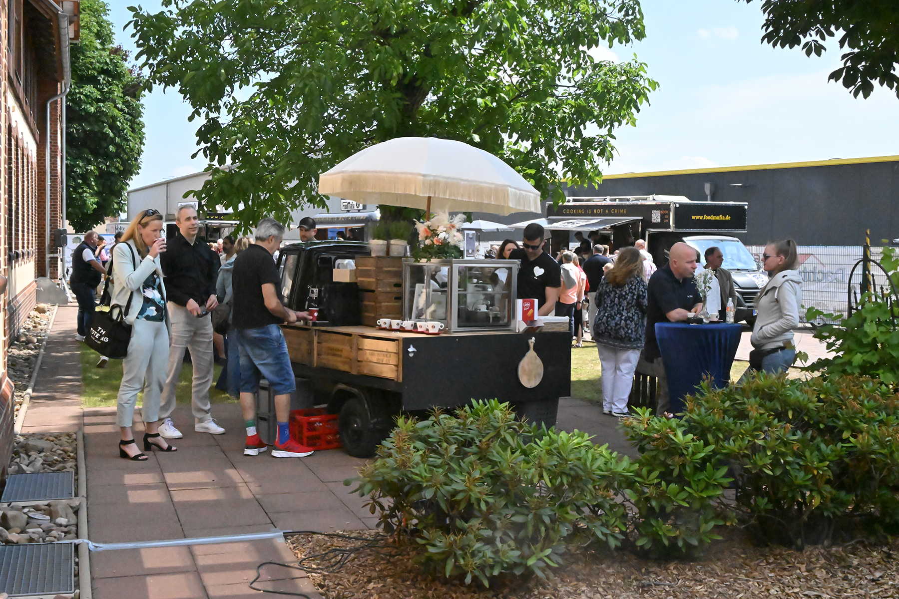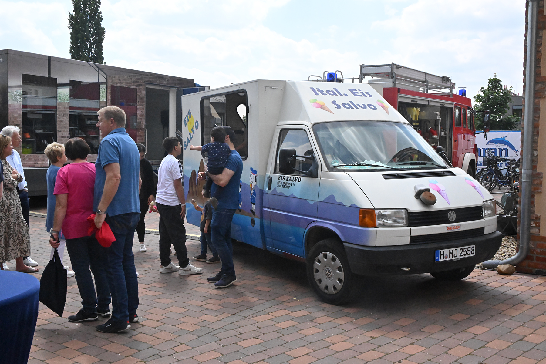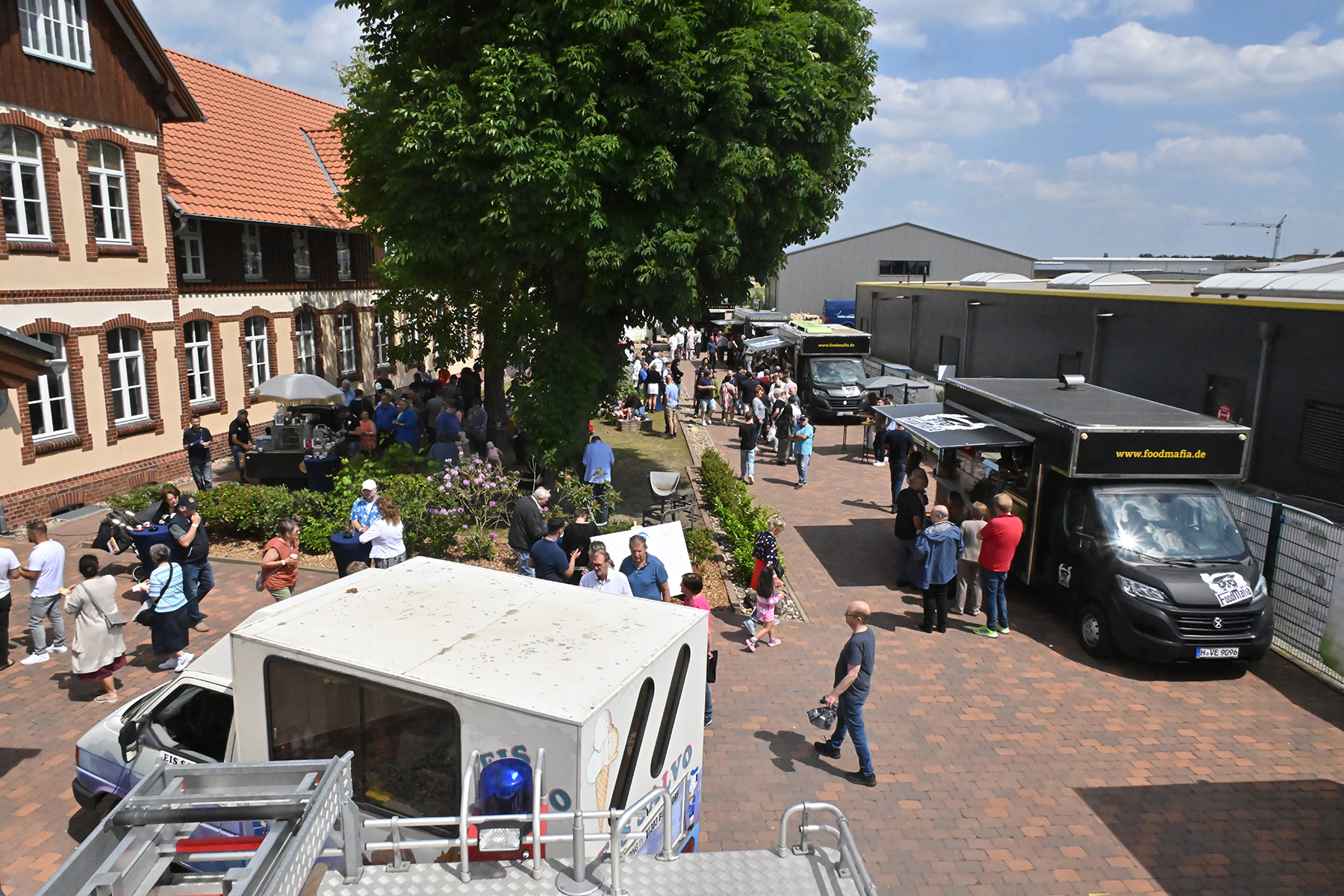 Der Nachmittag gehörte dann den Gästen, die vollumfänglich von Foodtrucks, über einen Kaffeestand bis hin zu Salvos Eiswagen verwöhnt wurden. Livemusik steuerten die Easy Jokers bei. Unter den Gästen unter anderem Burgdorfs Bürgermeister Armin Pollehn, Bürgermeister a.D. Alfred Baxmann, VVV-Vorsitzender Karl-Ludwig Schrader, SMB-Geschäftsführer Gerhard Bleich, SMB-Vorsitzender Markus Wzietek, das Frauen- und Mütterzentrum und der DRK-Vorsitzende a.D. Gero von Oettingen. Mit dabei war auch die Freiwillige Feuerwehr Burgdorf mit dem Tanklöschfahrzeug, deren ehrenamtlichen Einsatzkräfte das Zielspritzen auf das Brandhaus wie auch Zuckerwatt anboten.
