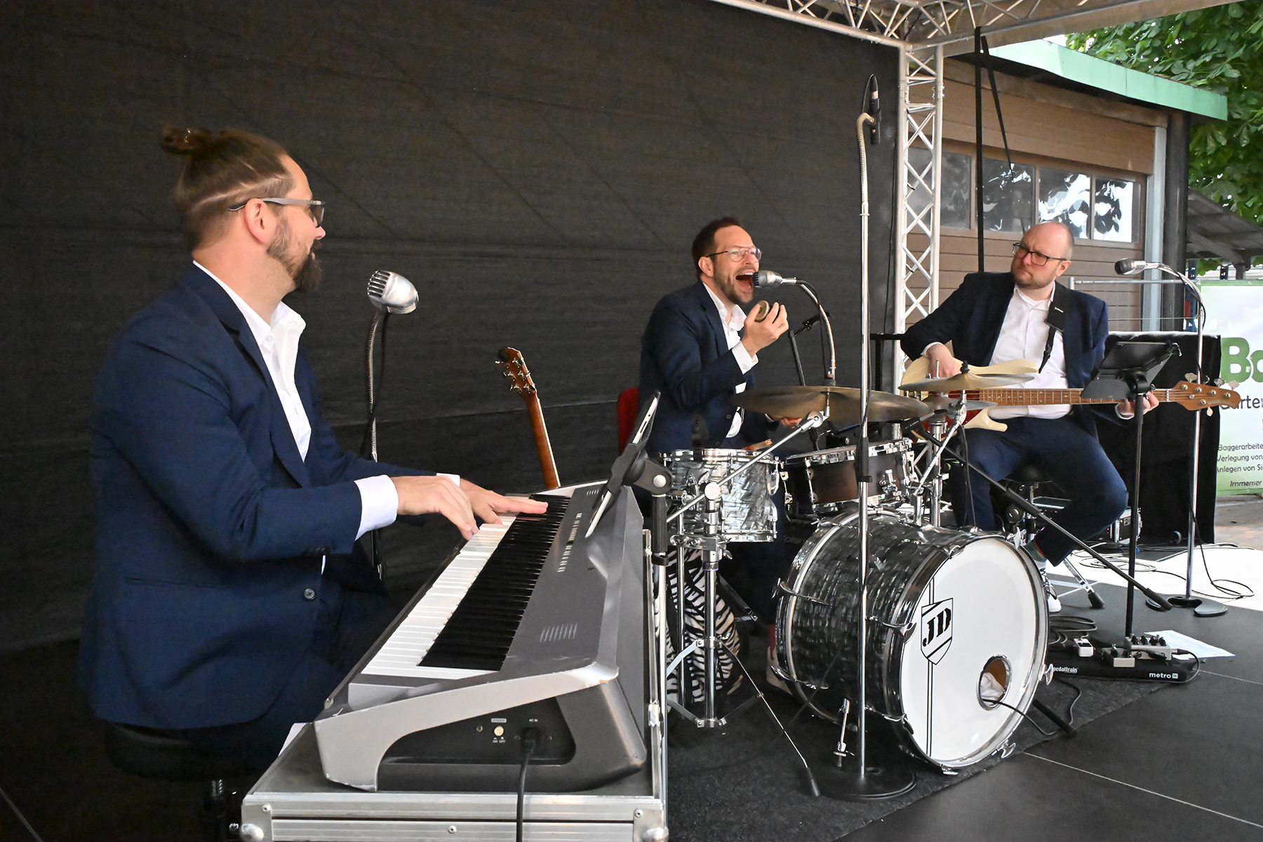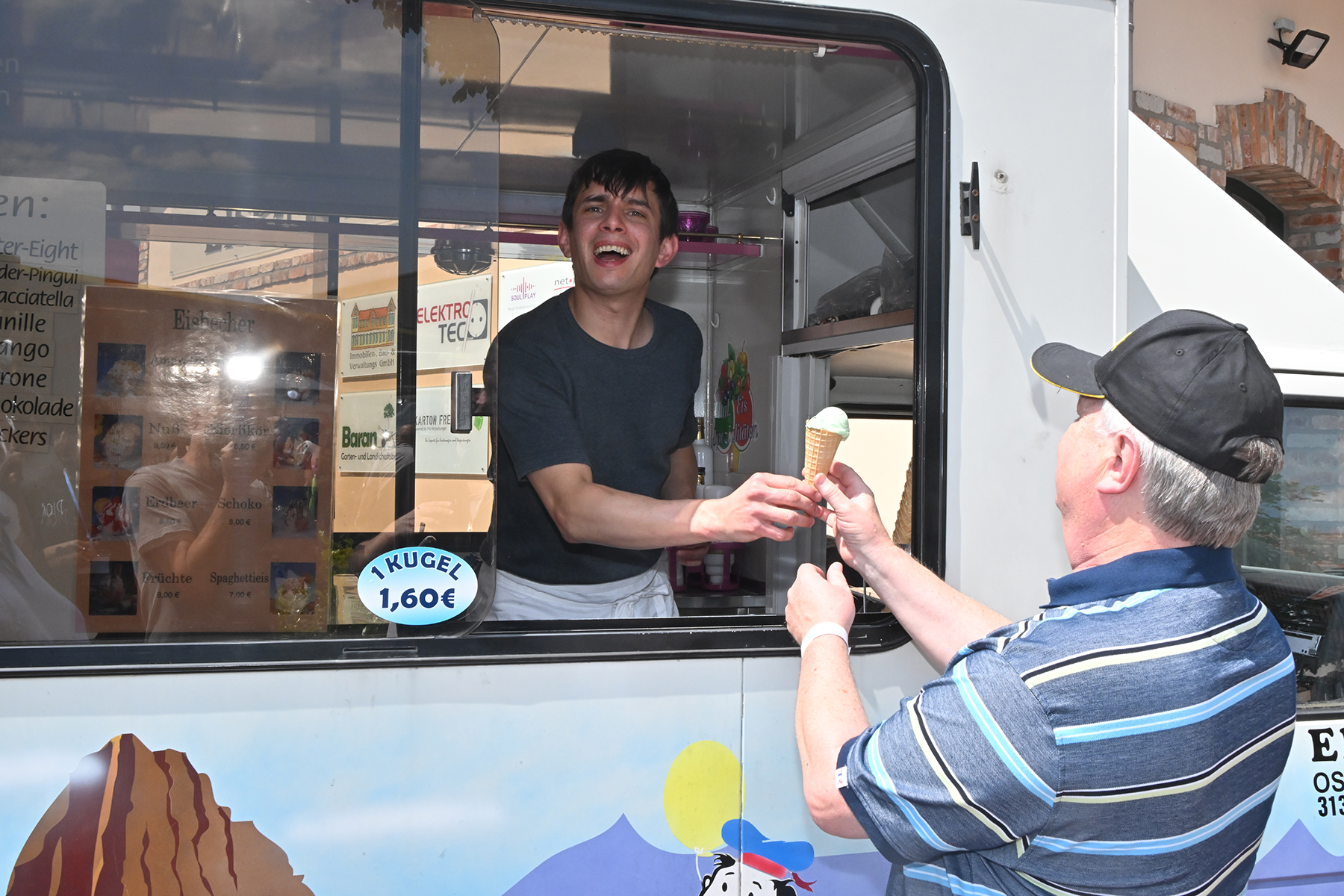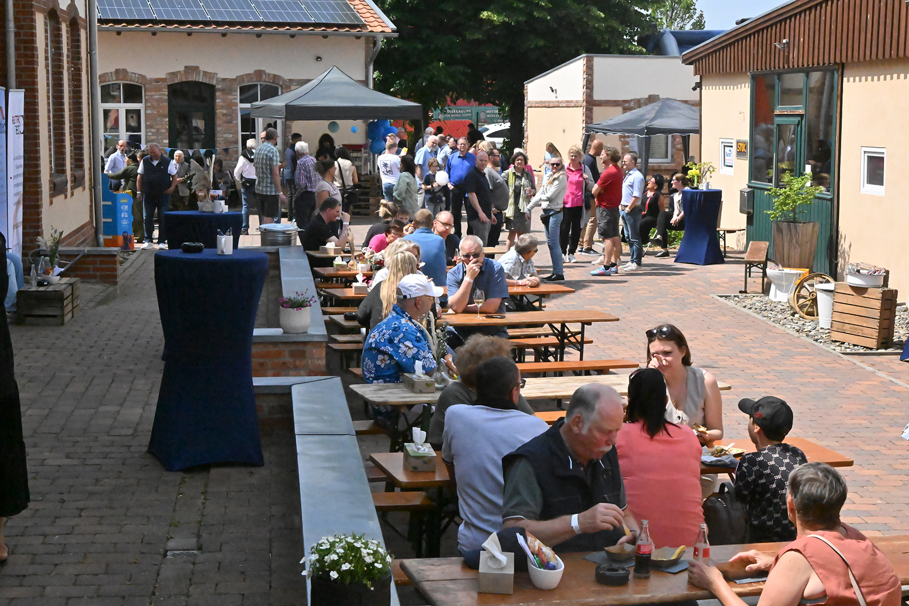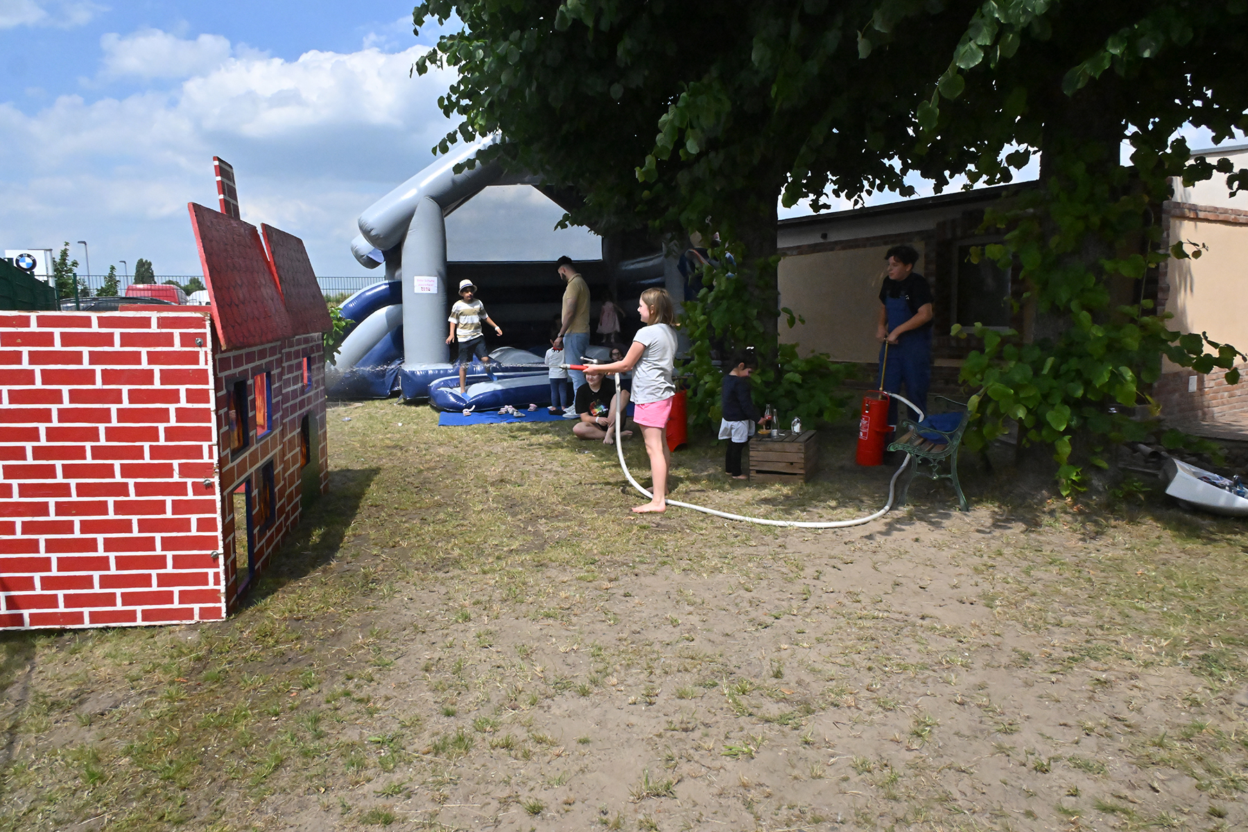 Der Nachmittag gehörte dann den Gästen, die vollumfänglich von Foodtrucks, über einen Kaffeestand bis hin zu Salvos Eiswagen verwöhnt wurden. Livemusik steuerten die Easy Jokers bei. Unter den Gästen unter anderem Burgdorfs Bürgermeister Armin Pollehn, Bürgermeister a.D. Alfred Baxmann, VVV-Vorsitzender Karl-Ludwig Schrader, SMB-Geschäftsführer Gerhard Bleich, SMB-Vorsitzender Markus Wzietek, das Frauen- und Mütterzentrum und der DRK-Vorsitzende a.D. Gero von Oettingen. Mit dabei war auch die Freiwillige Feuerwehr Burgdorf mit dem Tanklöschfahrzeug, deren ehrenamtlichen Einsatzkräfte das Zielspritzen auf das Brandhaus wie auch Zuckerwatt anboten.