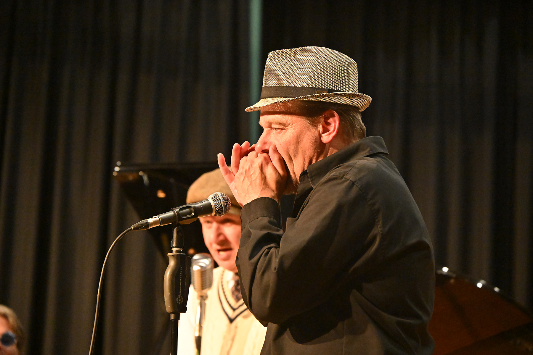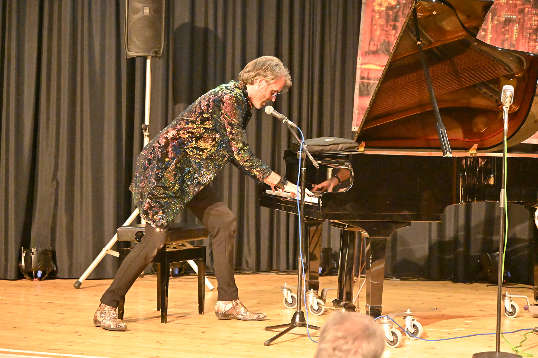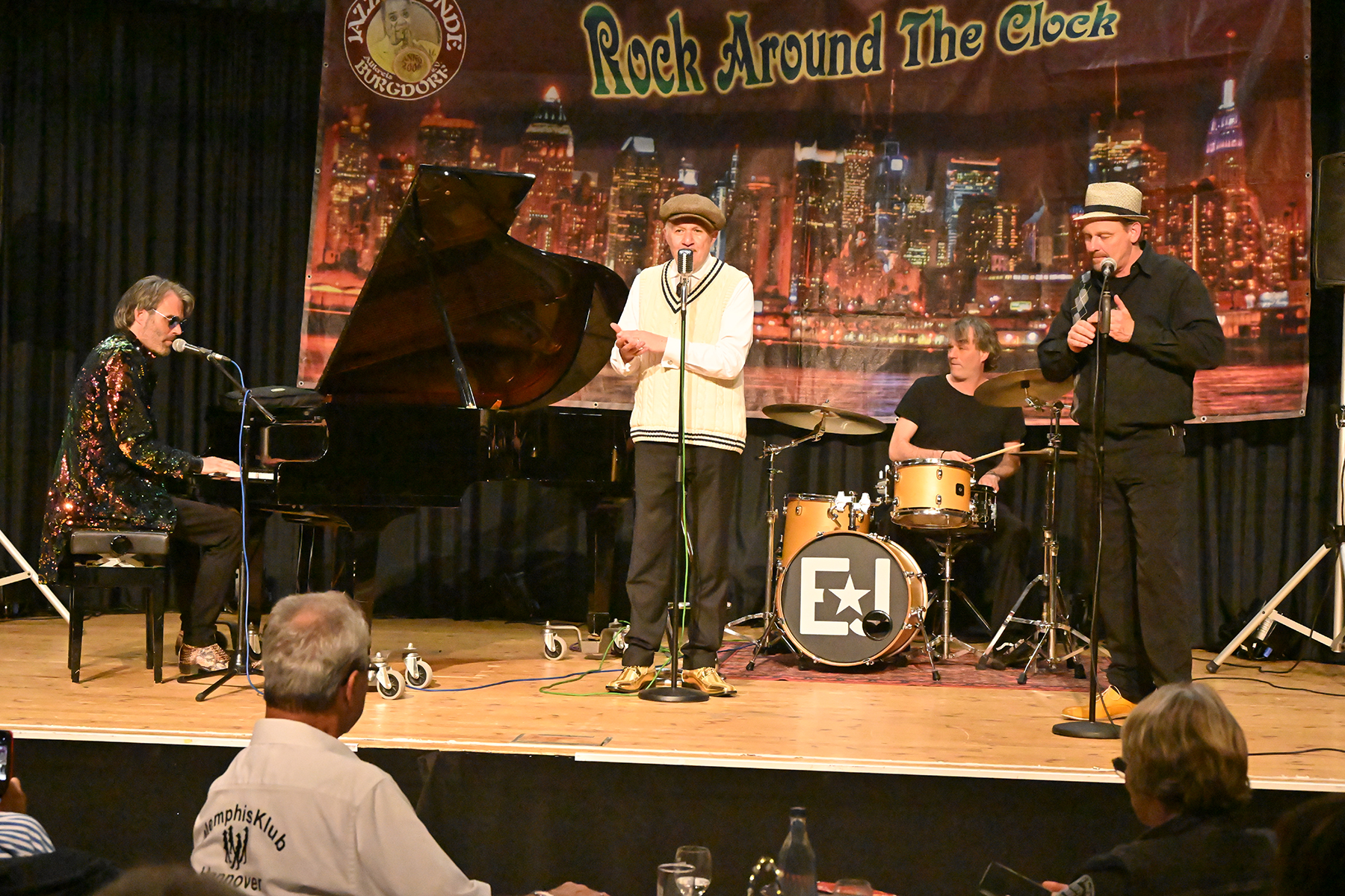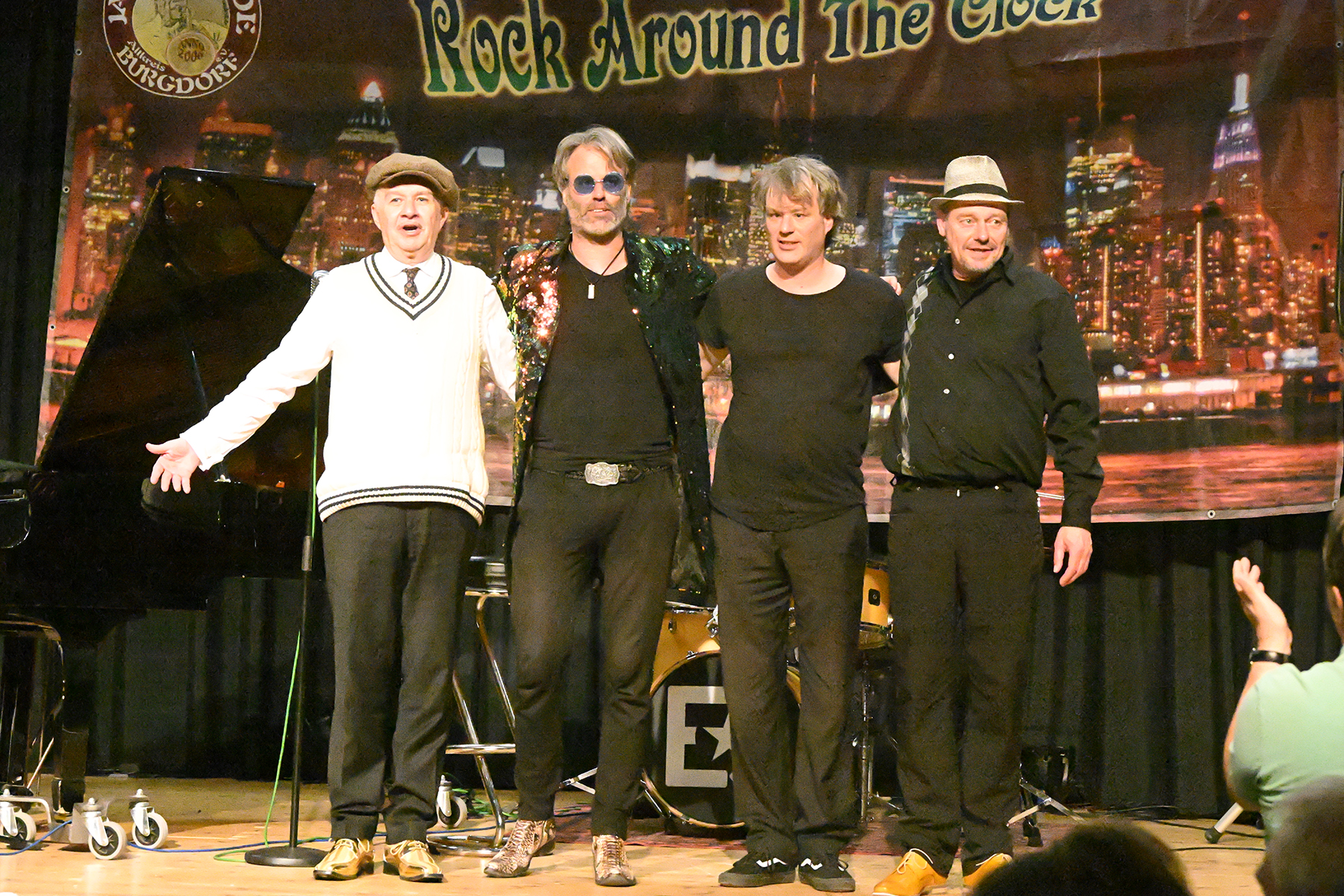"Boogie Woogie meets Rock’n’Roll", das ist der Boogie- und Blues-Pianist Christian Christl (61), das sind die Zwillinge Bastian (Piano) und Benny Korn (Drums) sowie der Bluesharper Christian Noll. Die vier Vollprofis zelebrierten am 8. Juni 2024 im voll besetzten Festsaal des Stadthauses Burgdorf Blues, Ragtime, Skiffle, Boogie Woogie und Rock’n’Roll. 15 auch jüngere Tanzpaare nutzten den Dancefloor zum gekonnten teilweise akrobatischen Tanz.