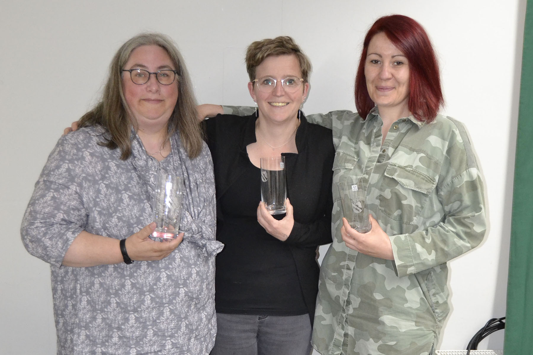 Nach dem Essen begann Birgit Winter mit der Siegerehrung. Die jeweiligen Gruppensieger und Einzelsieger erhielten gravierte Gläser. Weiterhin gab es für die Siegerinnen Schmuckstücke und die Auswahl machte es den Damen nicht leicht, sich zu entscheiden.