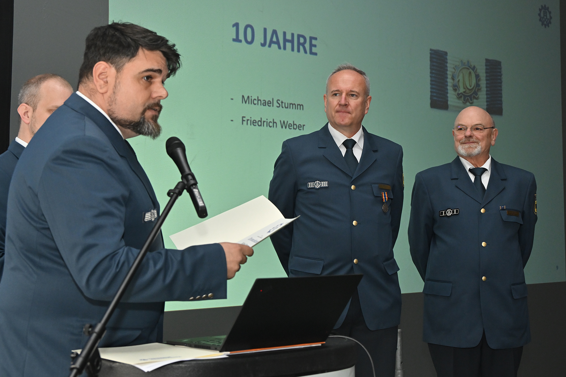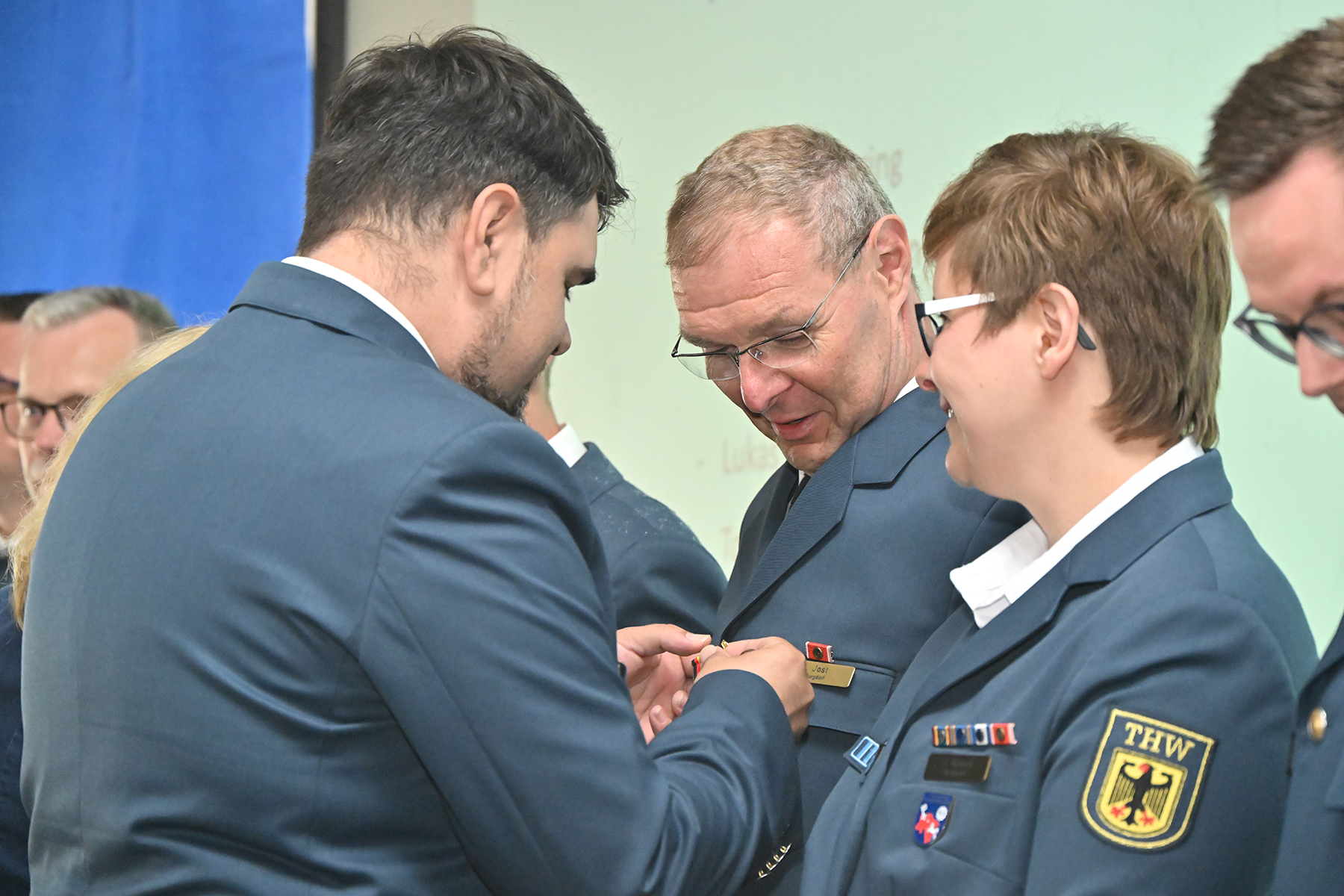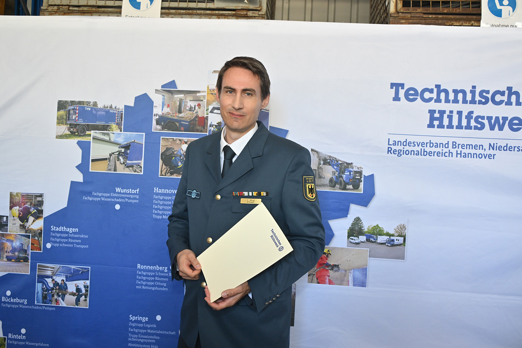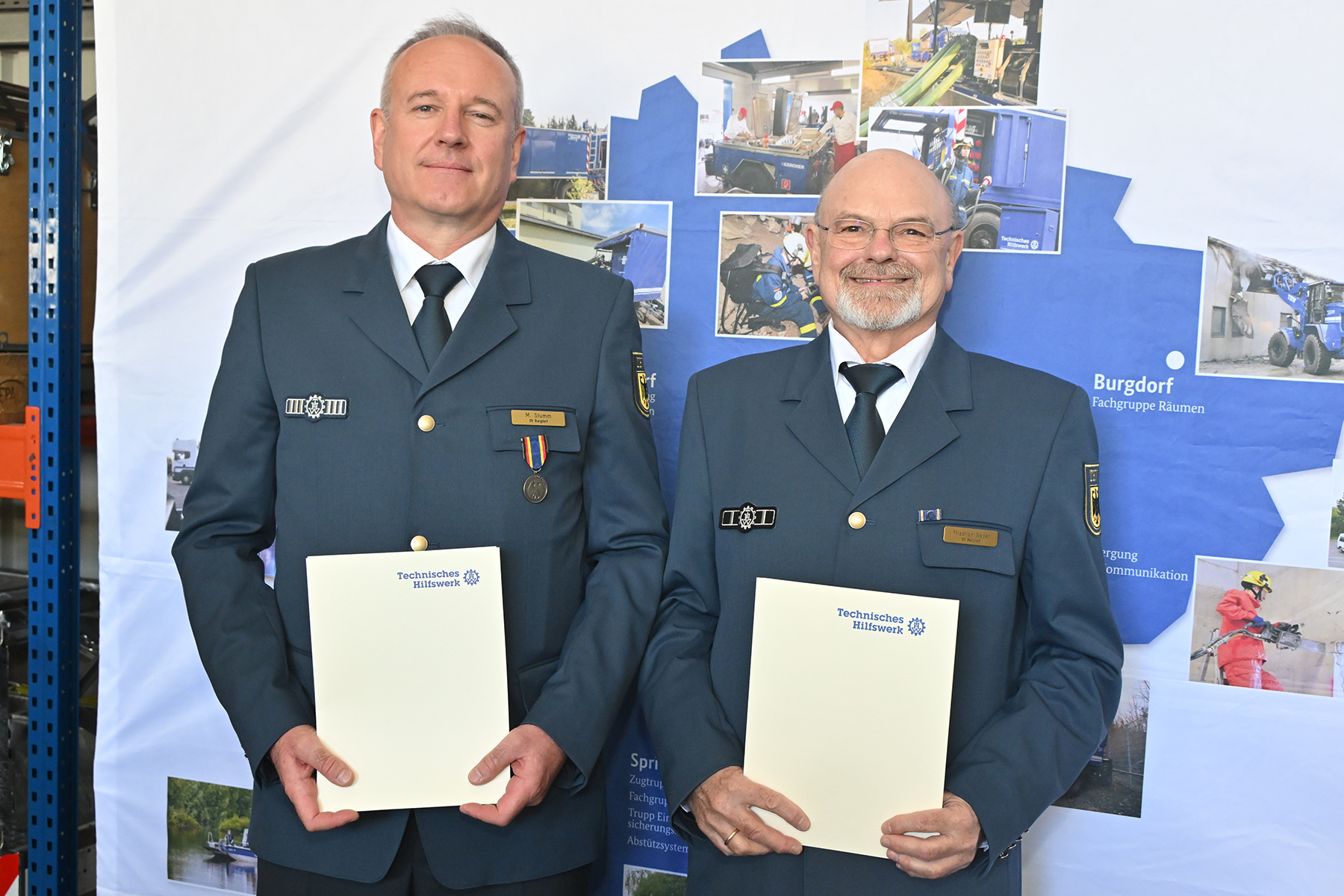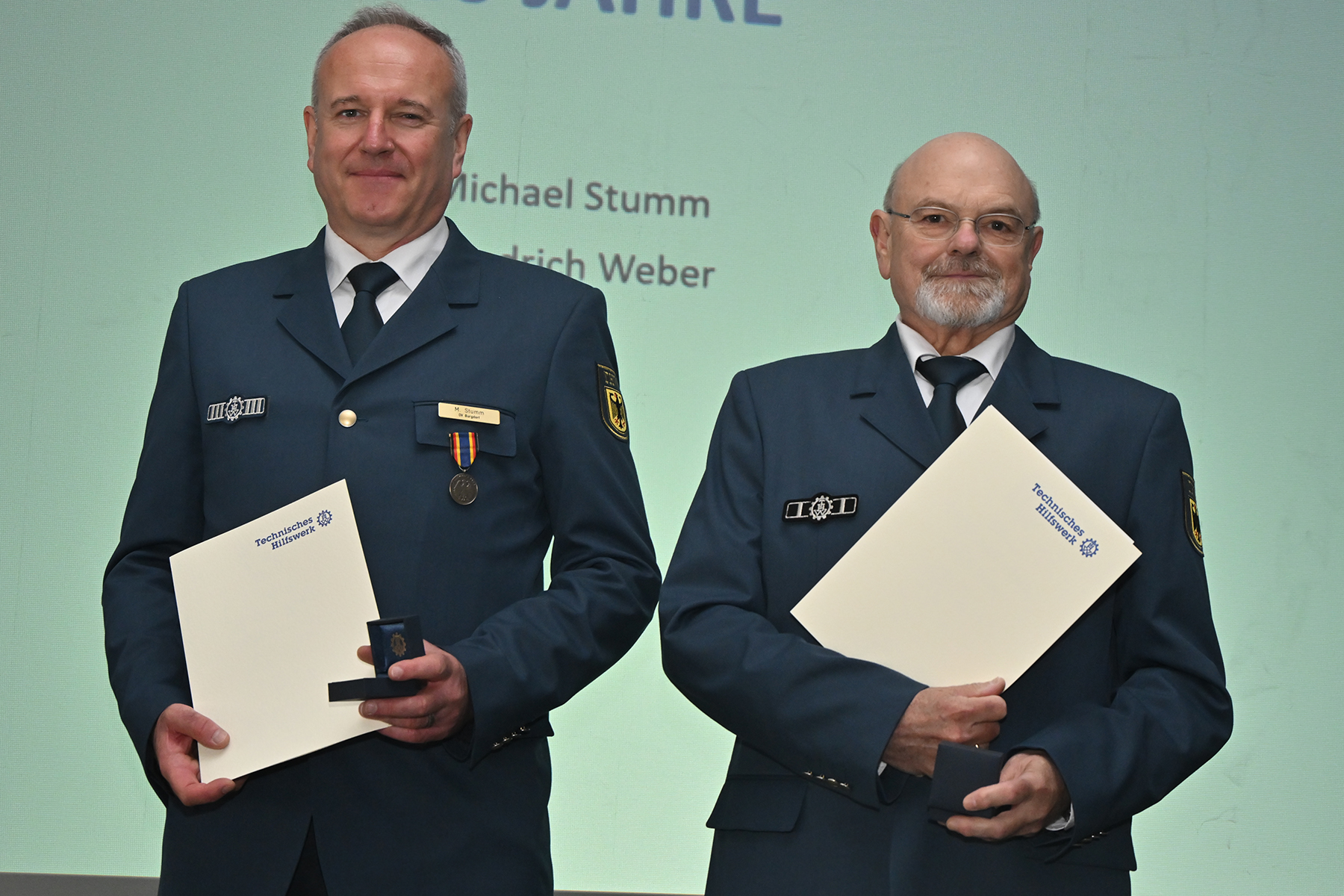 Einige von denen wurden für langjährige Zugehörigkeit am heutigen Sonnabend geehrt: Für zehnjährige THW-Angehörigkeit wurden Michael Sturm und Friedrich Weber ausgezeichnet. Für 25-jährige Zugehörigkeit wurde Christopher Voigt geehrt.