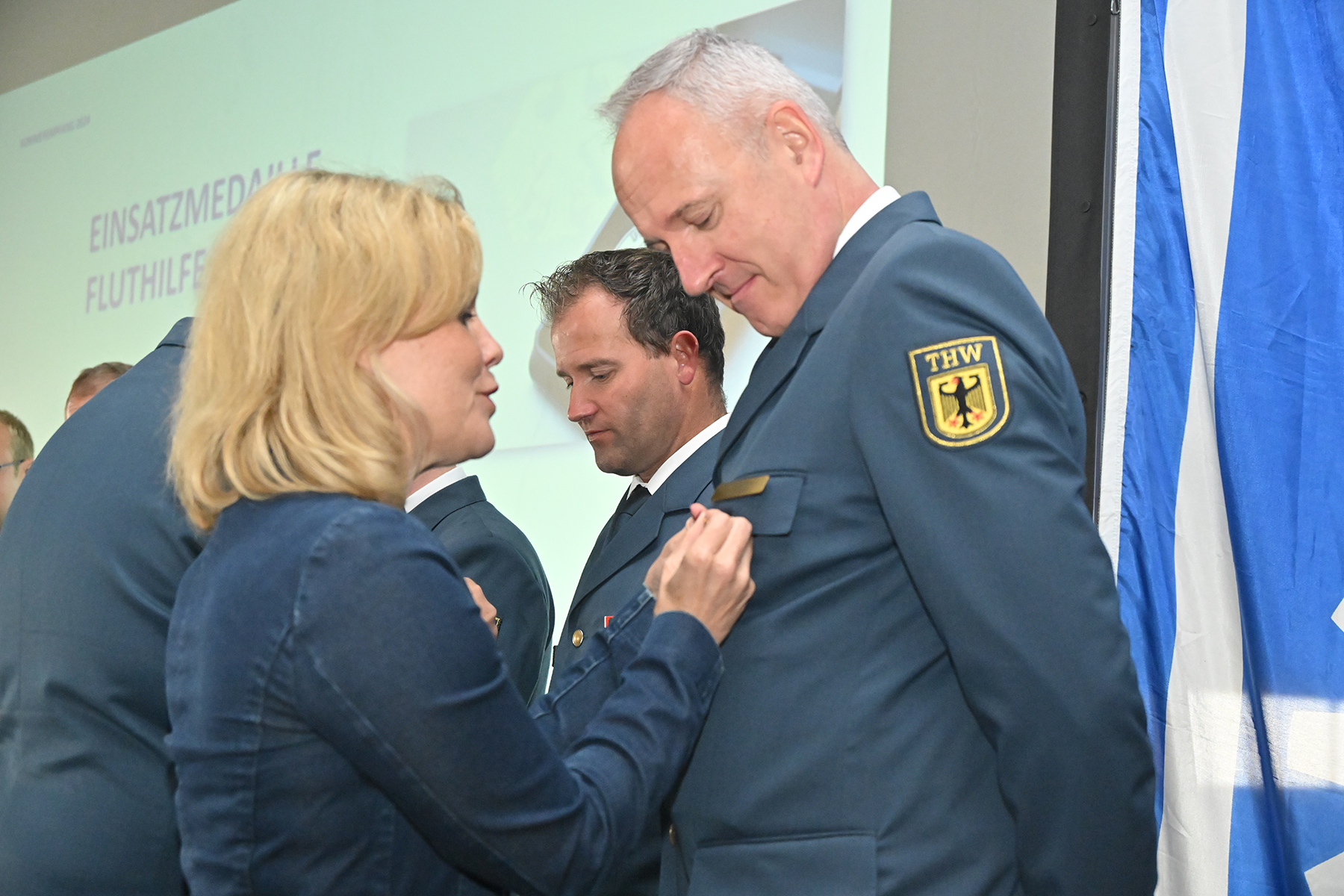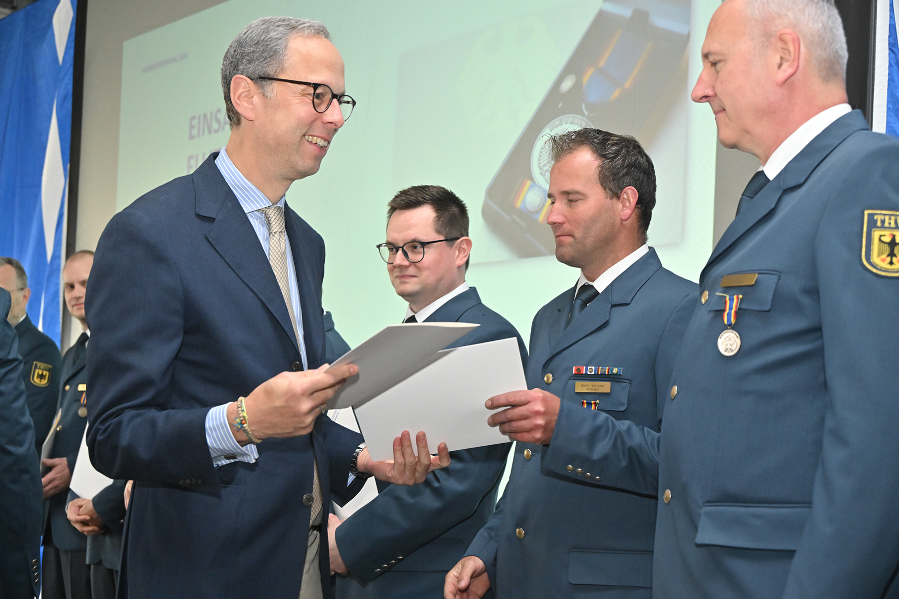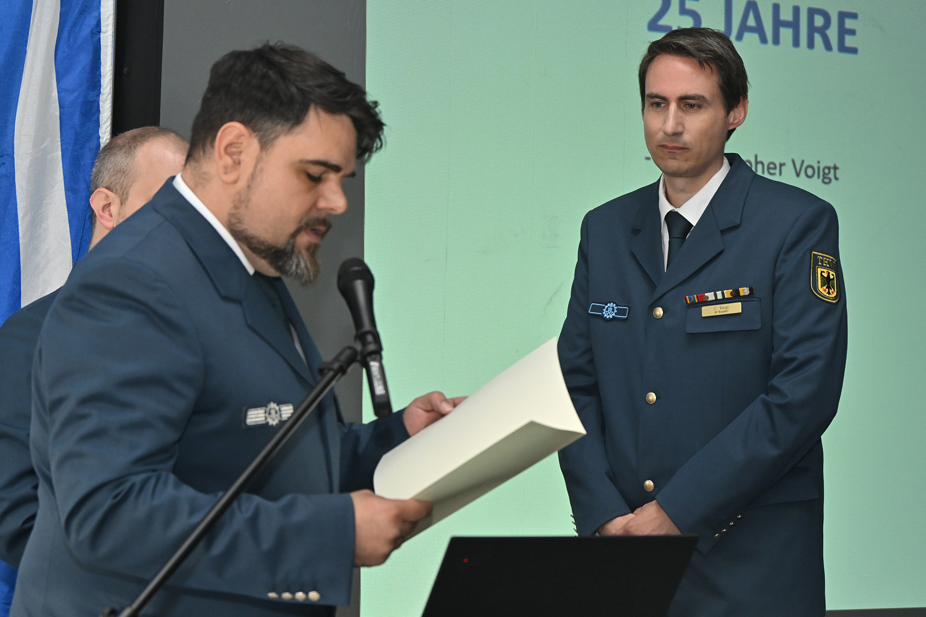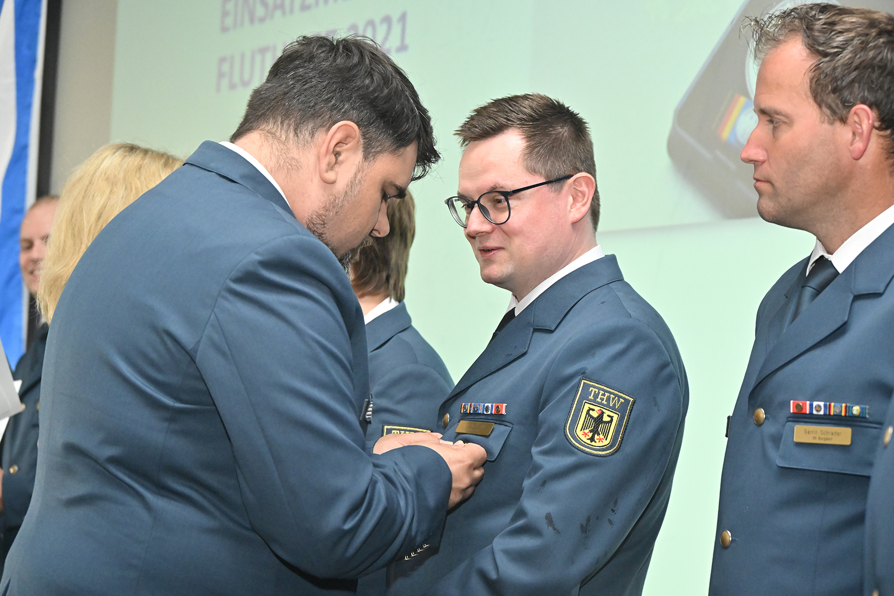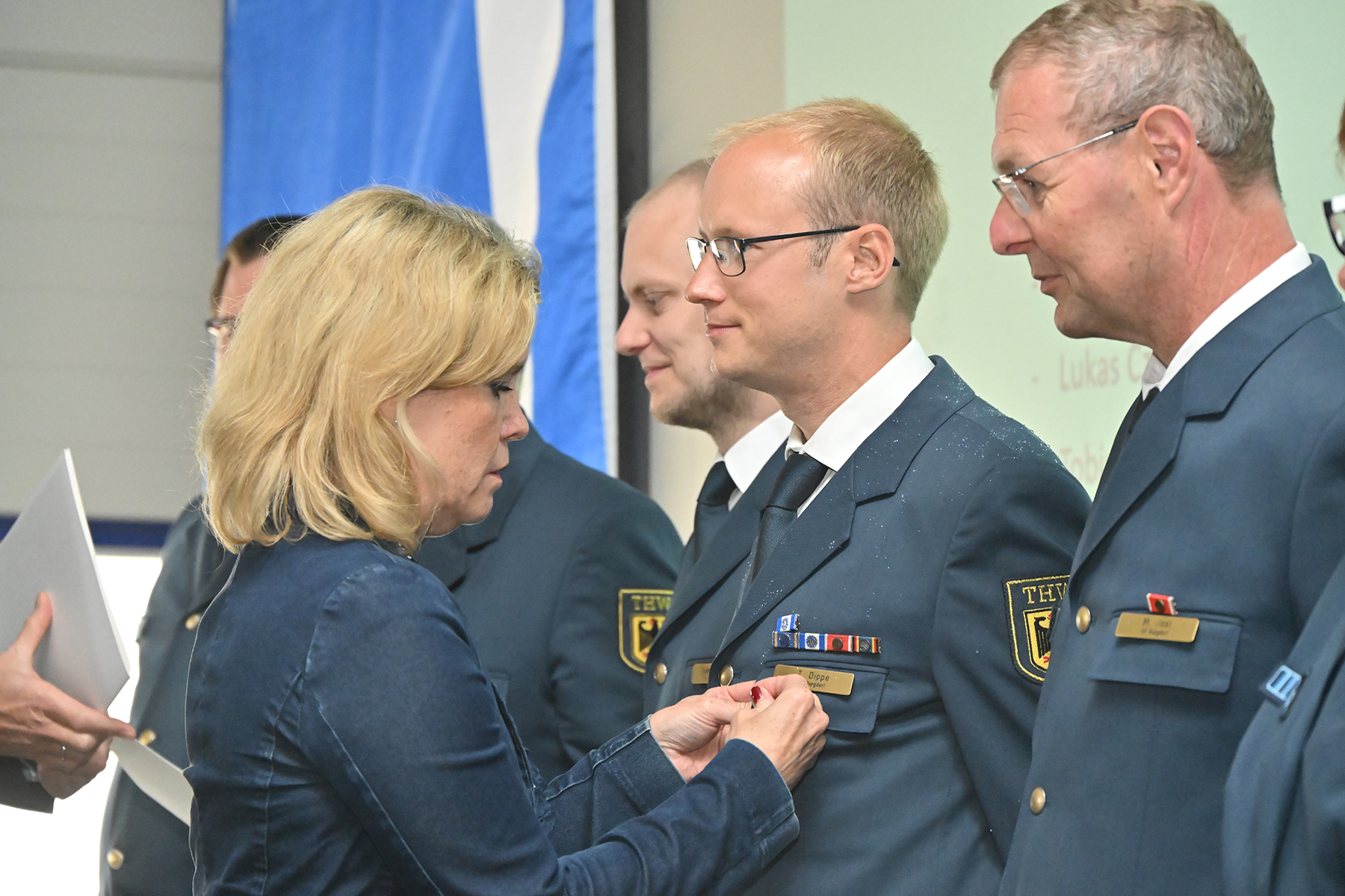 Einige von denen wurden für langjährige Zugehörigkeit am heutigen Sonnabend geehrt: Für zehnjährige THW-Angehörigkeit wurden Michael Sturm und Friedrich Weber ausgezeichnet. Für 25-jährige Zugehörigkeit wurde Christopher Voigt geehrt.