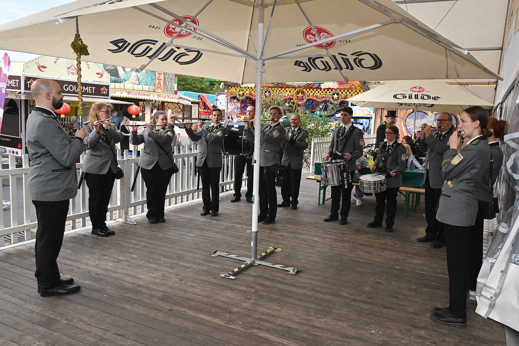 Begleitet wurde die offizielle Eröffnung des Volks- und Schützenfestes in Burgdorf vom Spielmannszug der Burgdorfer Schützengesellschaft.