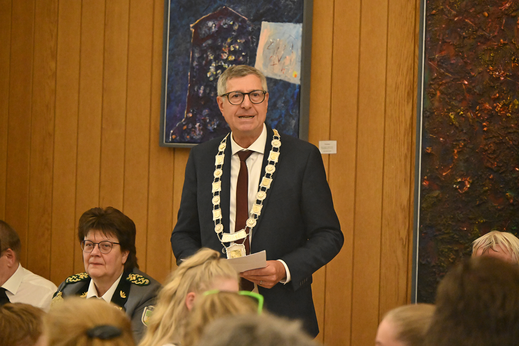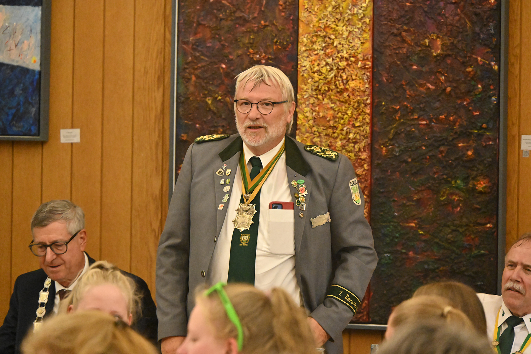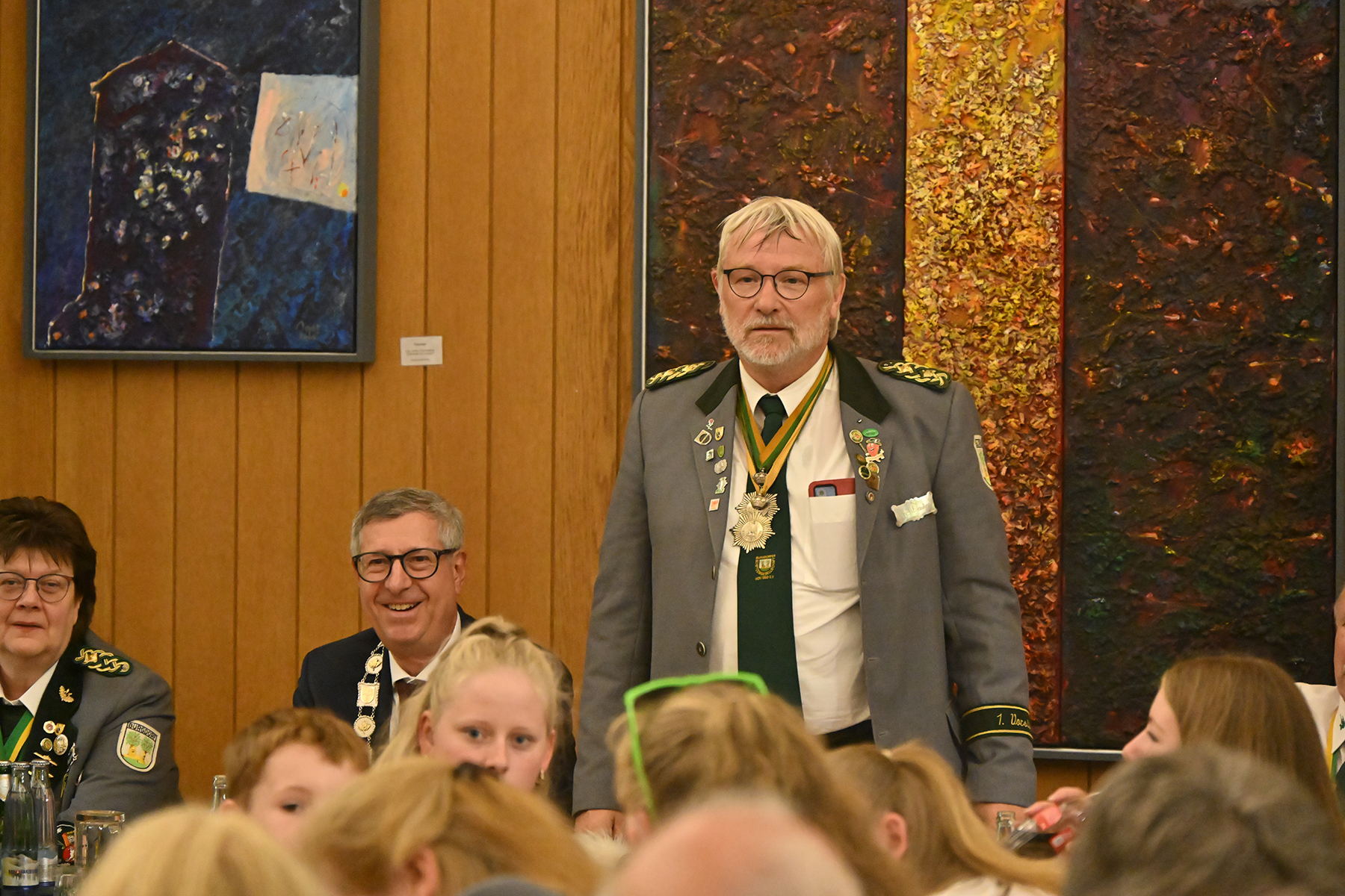 Er betonte, dass das Schützenwesen was mit Leistung zu tun hat, aber auch mit Gesellschaft. Das Schützenwesen sei eine Säule der Gemeinschaft", hob er hervor. Die Burgdorfer Schützen seien "ein Symbol für Gemeinschaft und Zusammenhalt", so der Bürgermeister, wofür er großen Applaus erhielt. Er nutze auch die Gelegenheit, Dank zu sagen an diejenigen, die das Fest veranstalten, insbesondere den Festvorstand. Es sei nicht einfach ein Schützenfest auf die Beine zu stellen, so Armin Pollehn. Zudem bedankte er sich bei seiner Mann- und Frauschaft, den Mitarbeiterinnen und Mitarbeitern des Rathauses, die sich an diesem Abend um das Wohl der Schützen kümmerten.