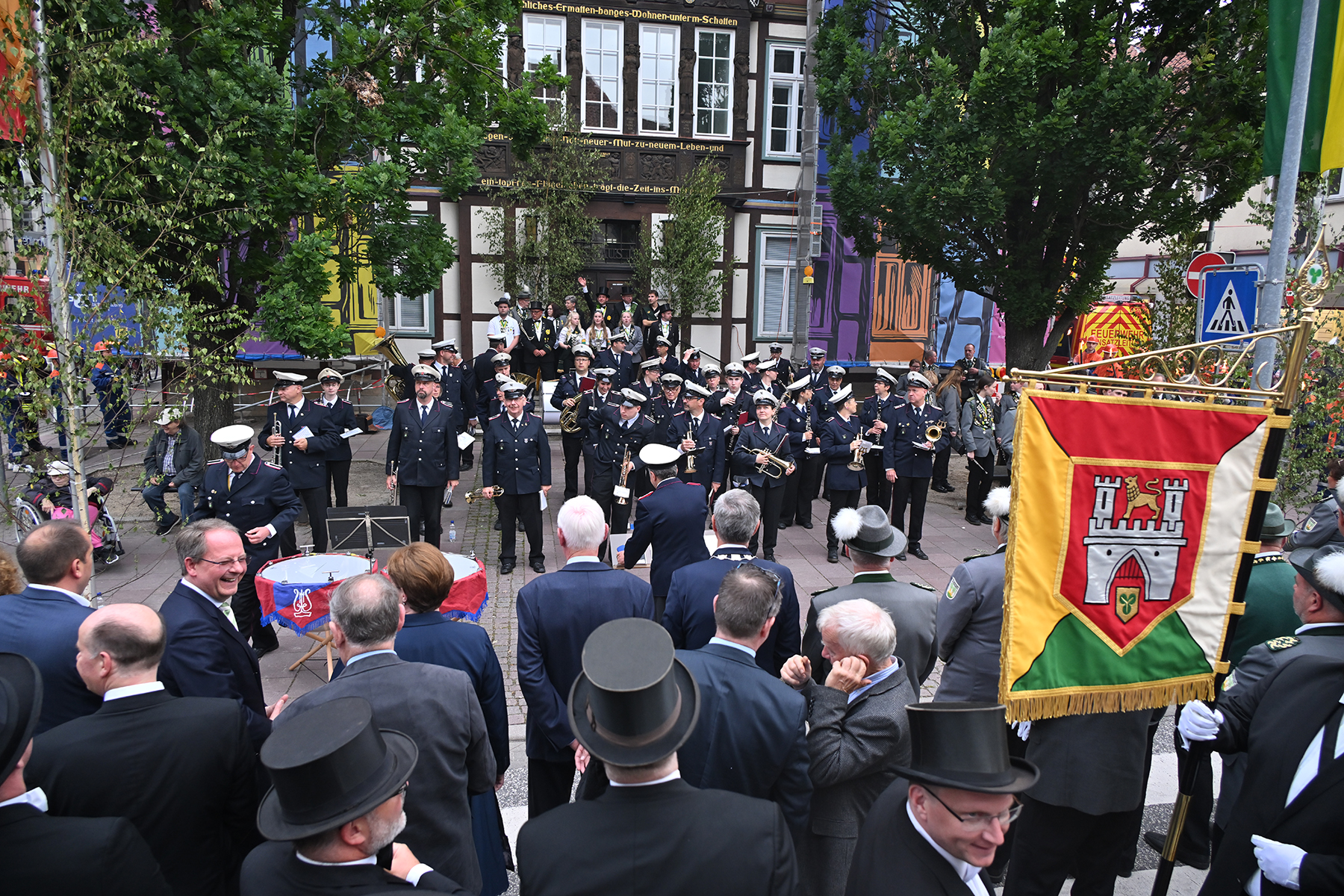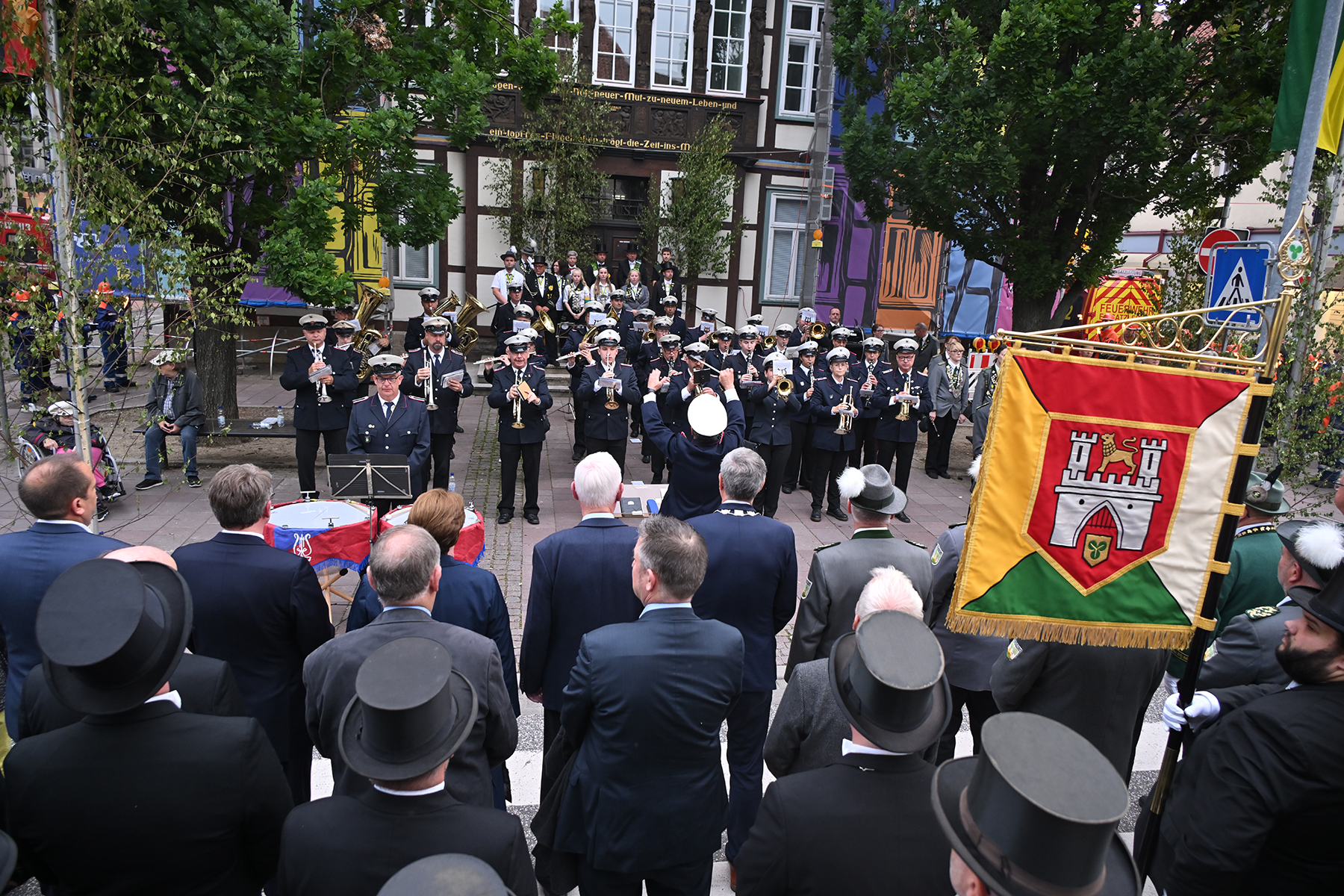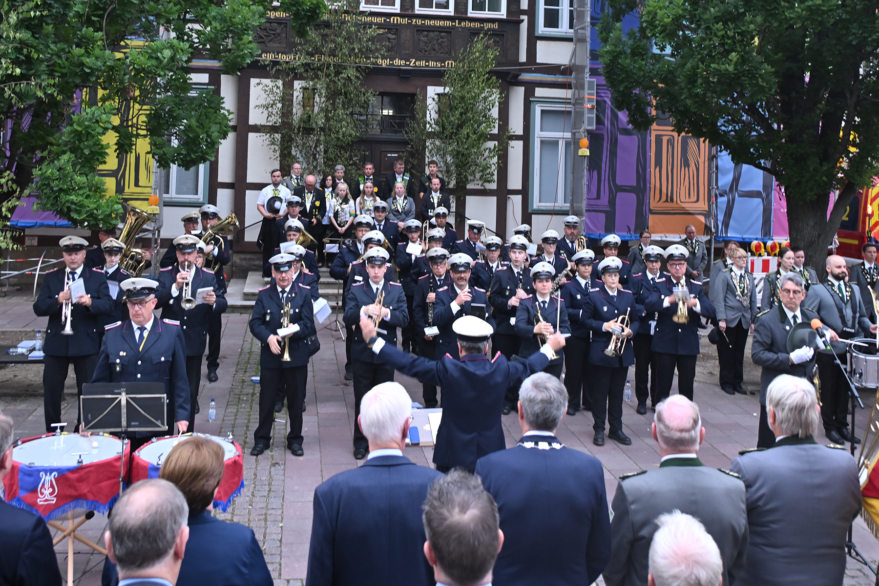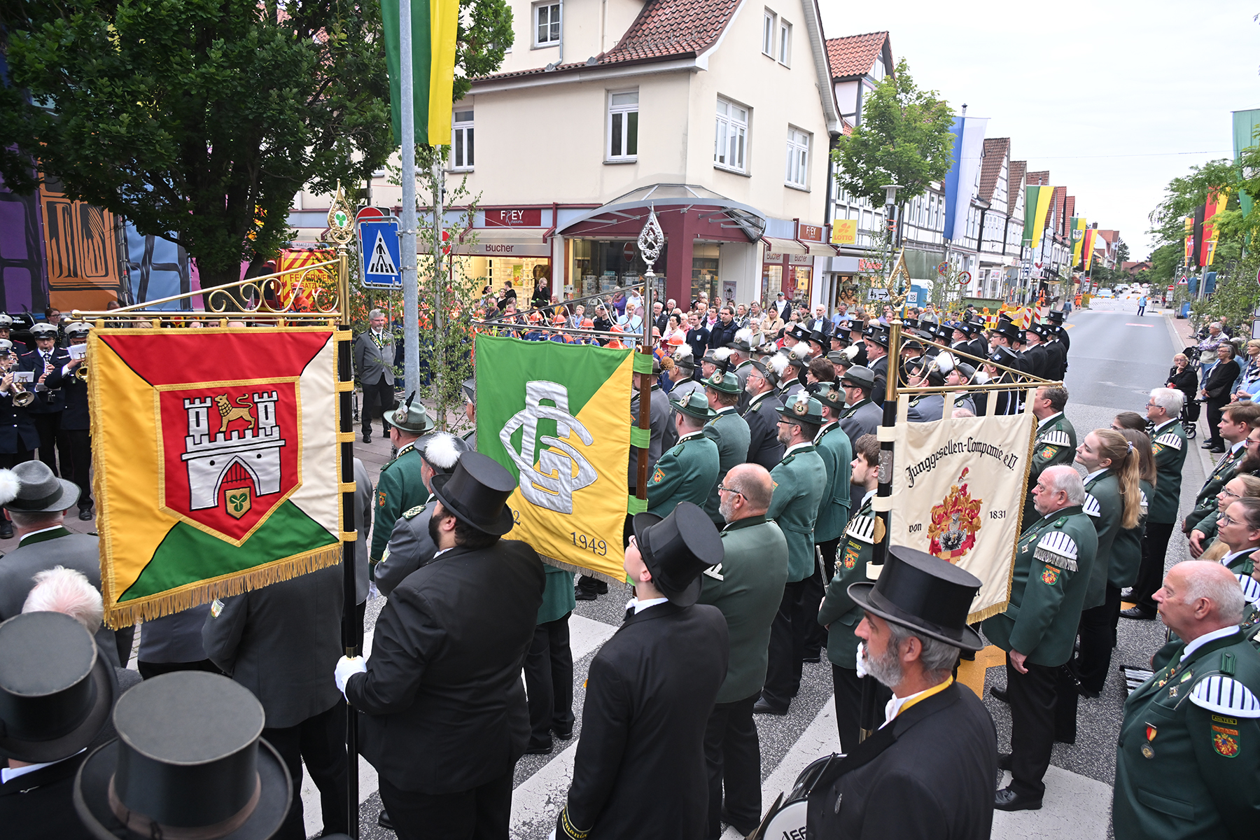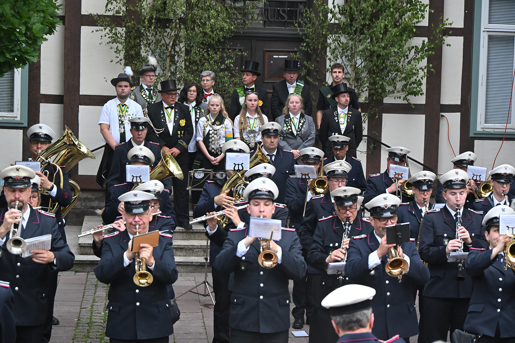 Es war wieder ein bewegender Moment. Am ersten Tag des Burgdorfer Volks- und Schützenfestes. Zu Ehren der Könige des Jahres 2023 traten die Schützen und ihre Corporationen vor dem Rathaus I zum großen Zapfenstreich an.