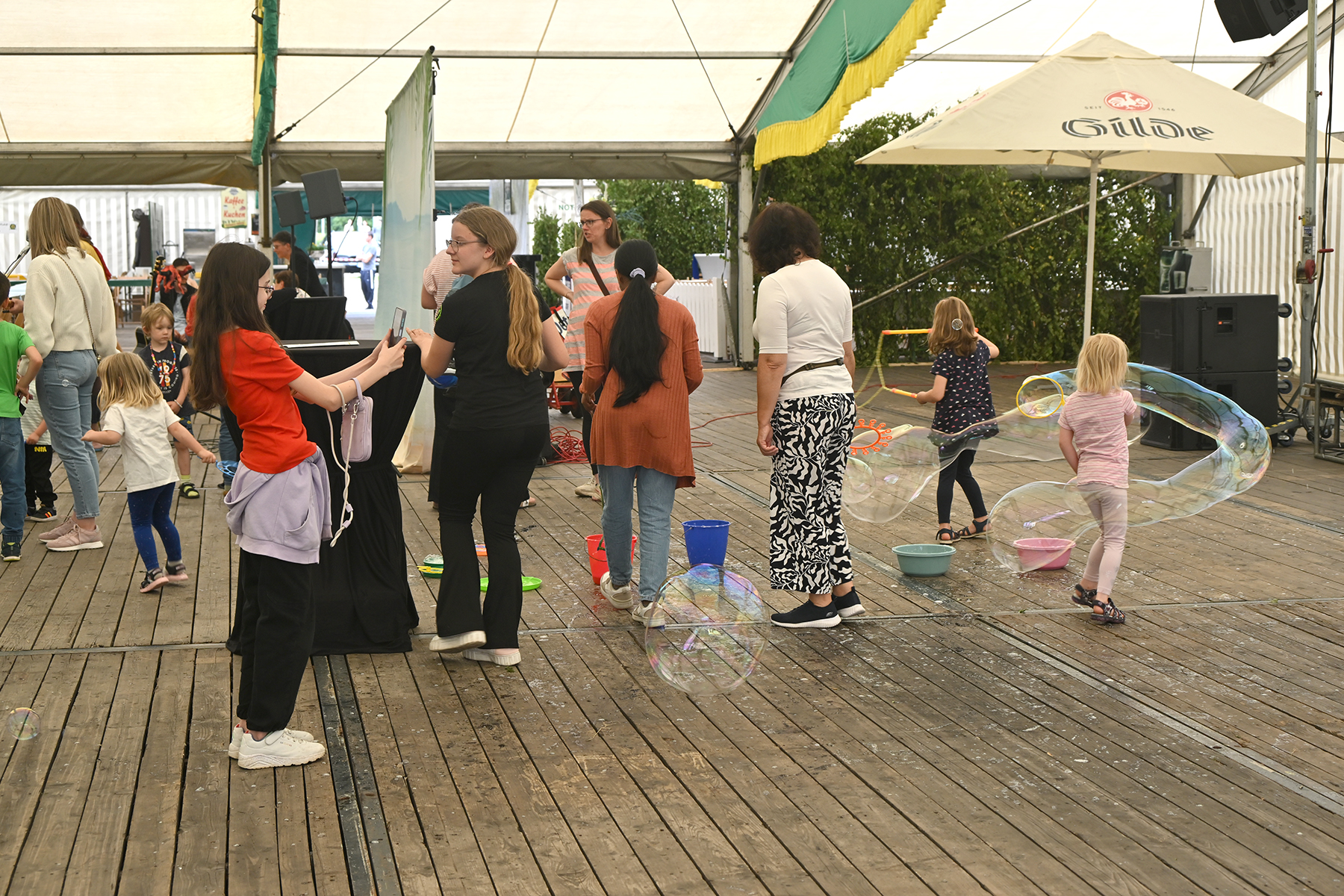 Am heutigen Donnerstagnachmittag stand zudem das Kinderschützenfest auf dem Programm. Im Festzelt wurden die Schützen dabei vom Jugend- und Kulturzentrum JohnnyB. unterstützt, das beispielsweise Kinderschminken sowie auch Riesenseifenblasen angeboten hatte. Der Kinderliedermacher Mathias Lück sorgte zudem mit seinen Liedern für Stimmung unter den Kindern.